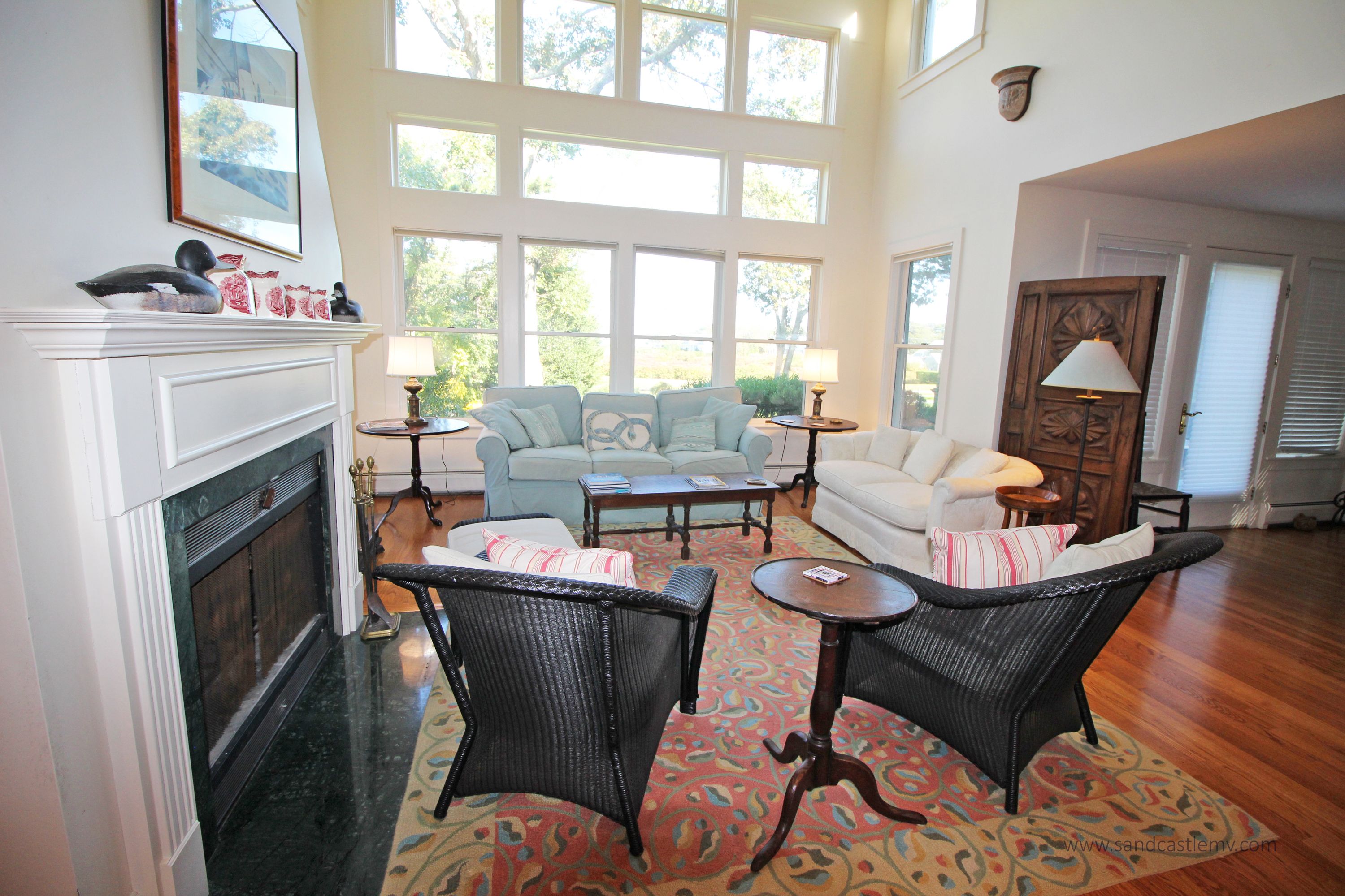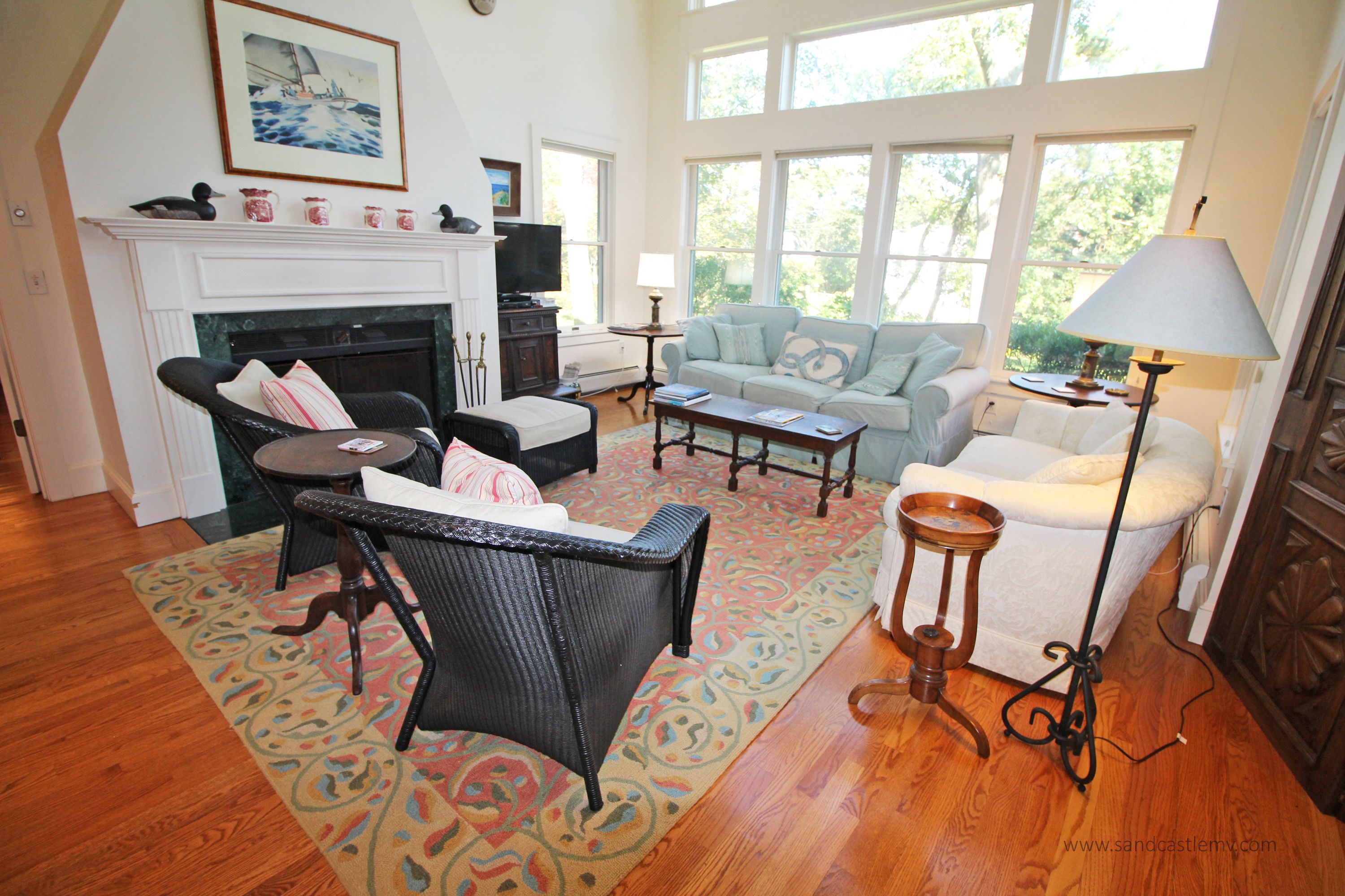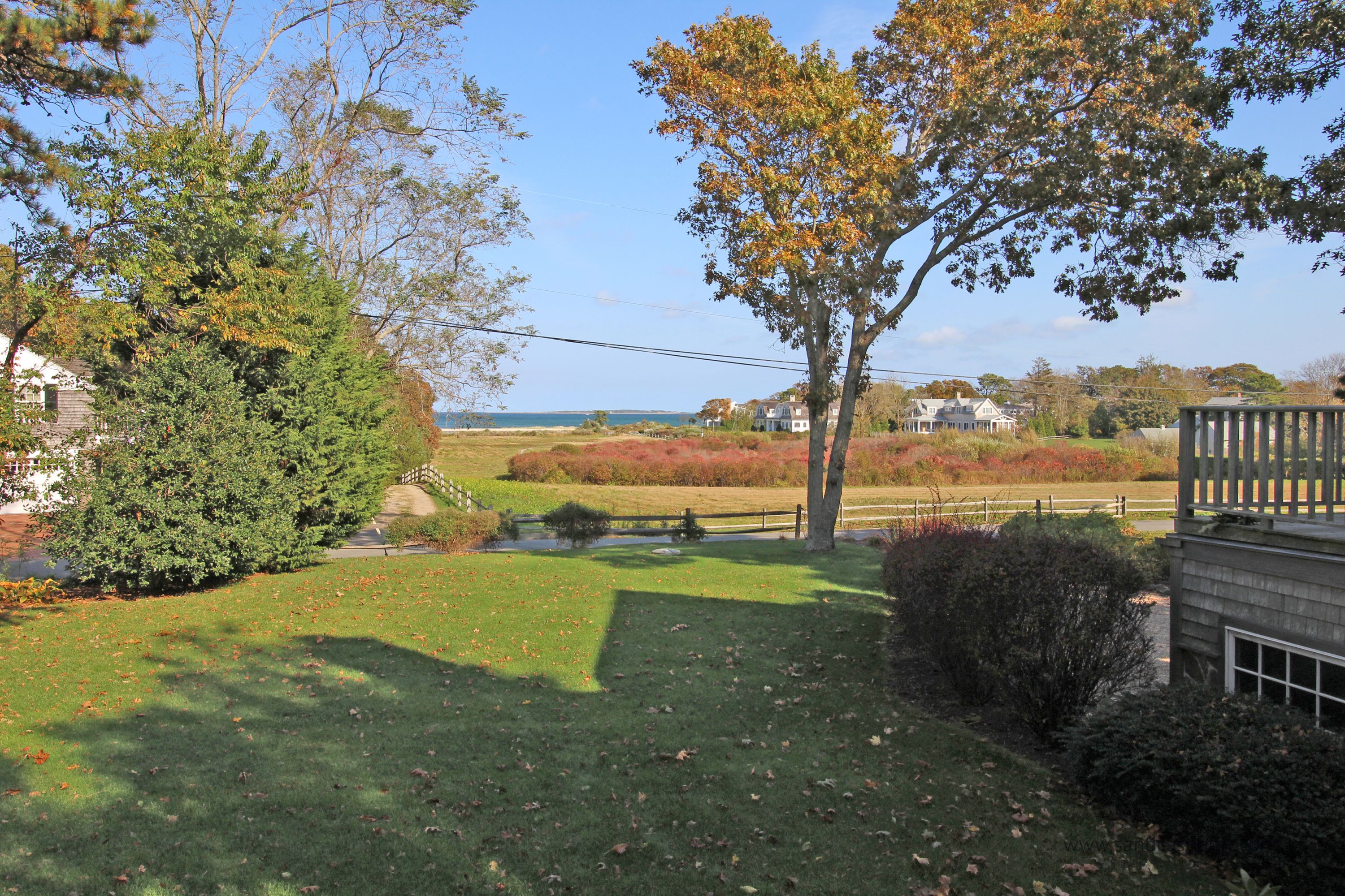 This beautiful Colonial-style home is set on a landscaped property with a long private driveway and an easy walk to downtown Edgartown or Fuller Street Beach. The house enjoys sweeping views of Vineyard Sound and borders six acres of oceanfront conservation land, offering a peaceful and private setting. All bedrooms have water views, and the great room—combining the living and dining areas—features a dramatic two-story ceiling and expansive views of Vineyard Sound.