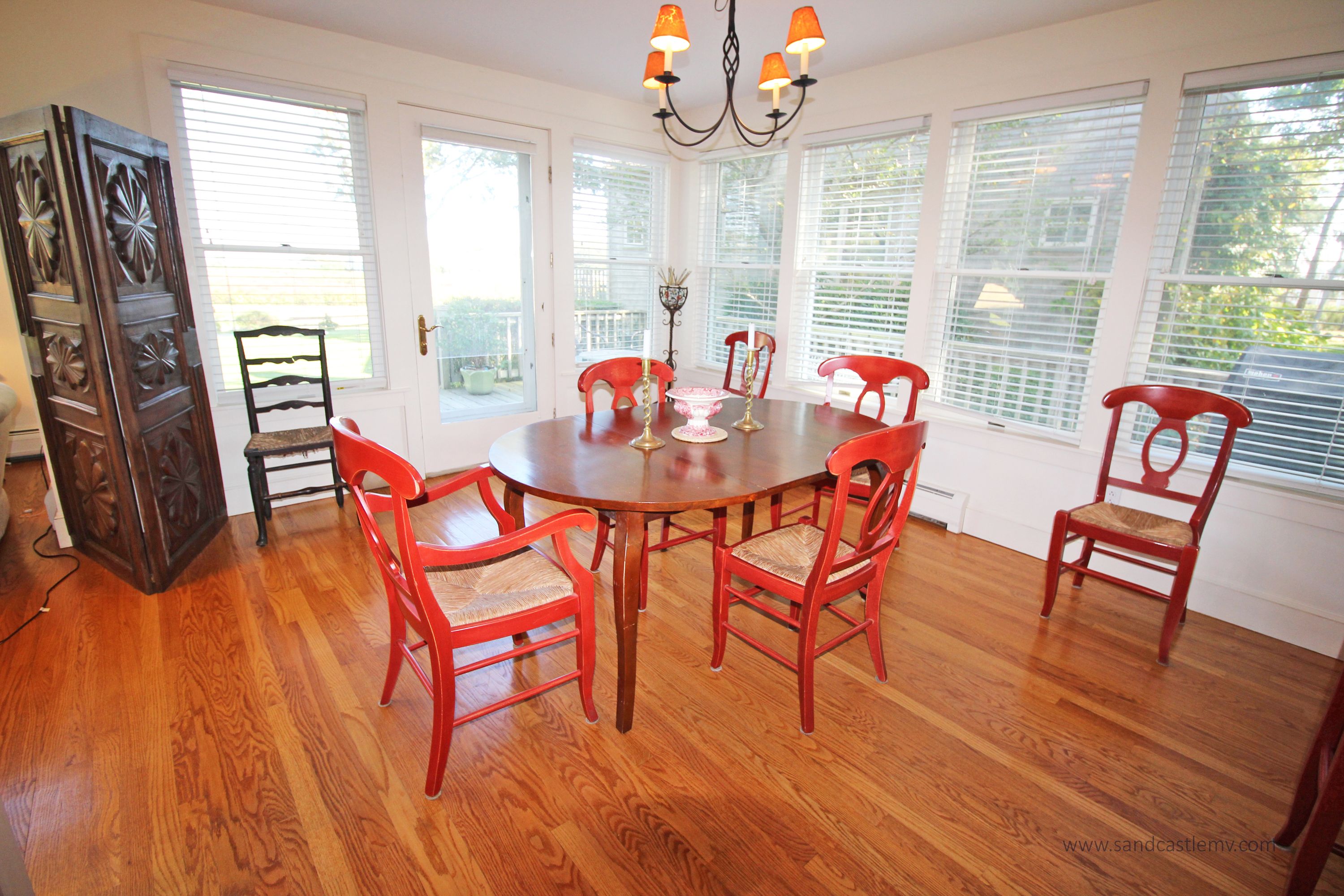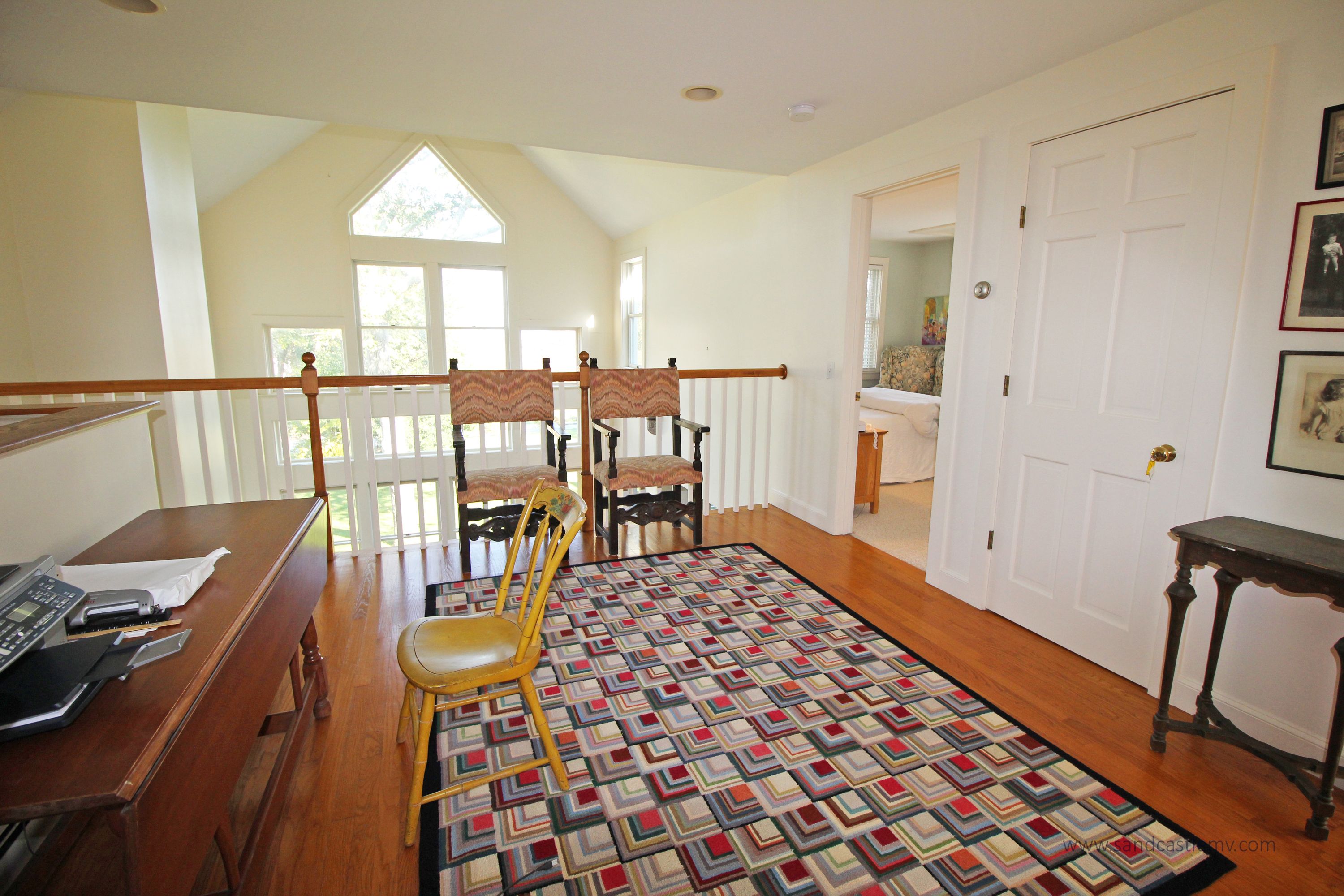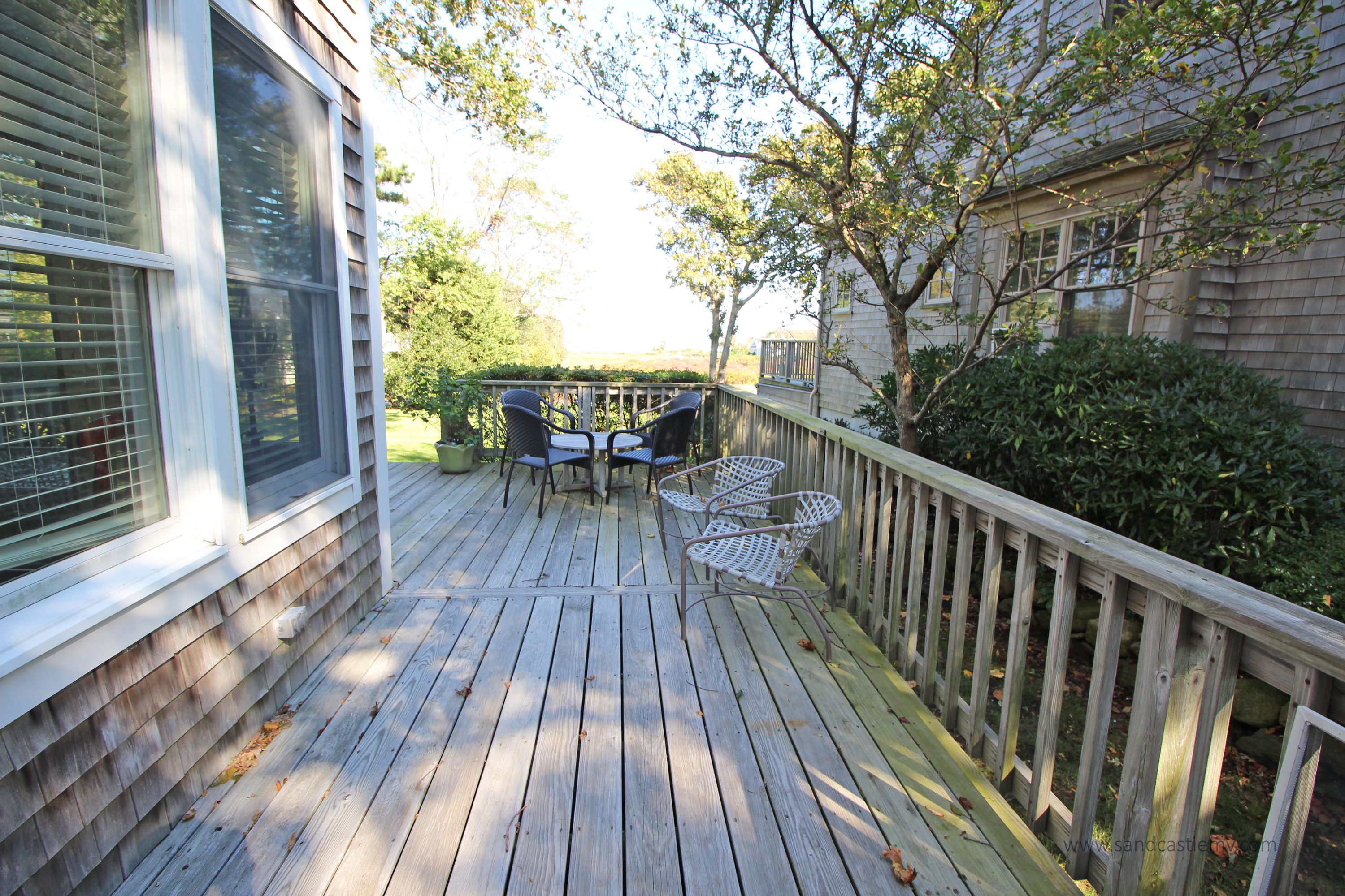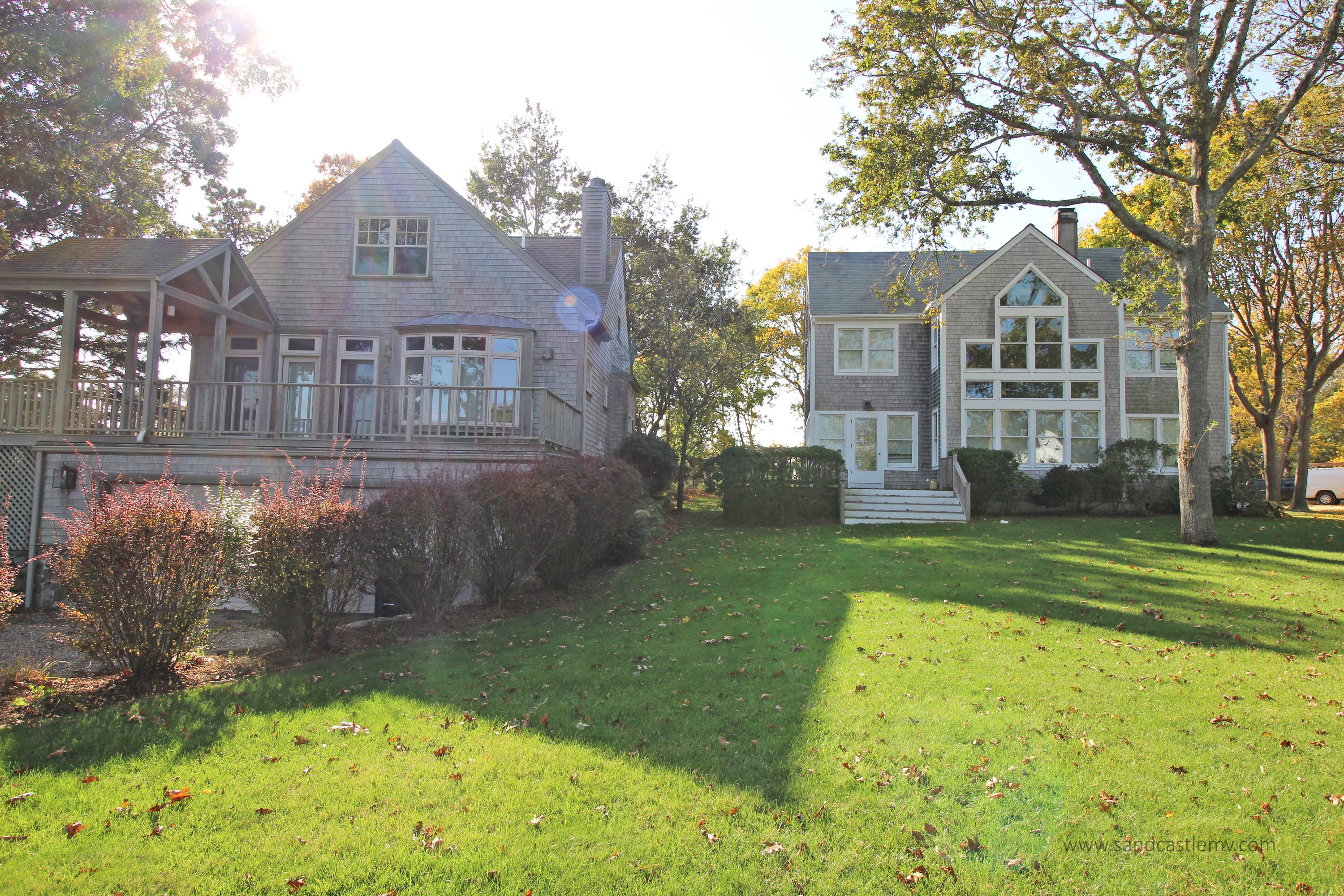 This beautiful Colonial-style home is set on a landscaped property with a long private driveway and an easy walk to downtown Edgartown or Fuller Street Beach. The house enjoys sweeping views of Vineyard Sound and borders six acres of oceanfront conservation land, offering a peaceful and private setting. All bedrooms have water views, and the great room—combining the living and dining areas—features a dramatic two-story ceiling and expansive views of Vineyard Sound.