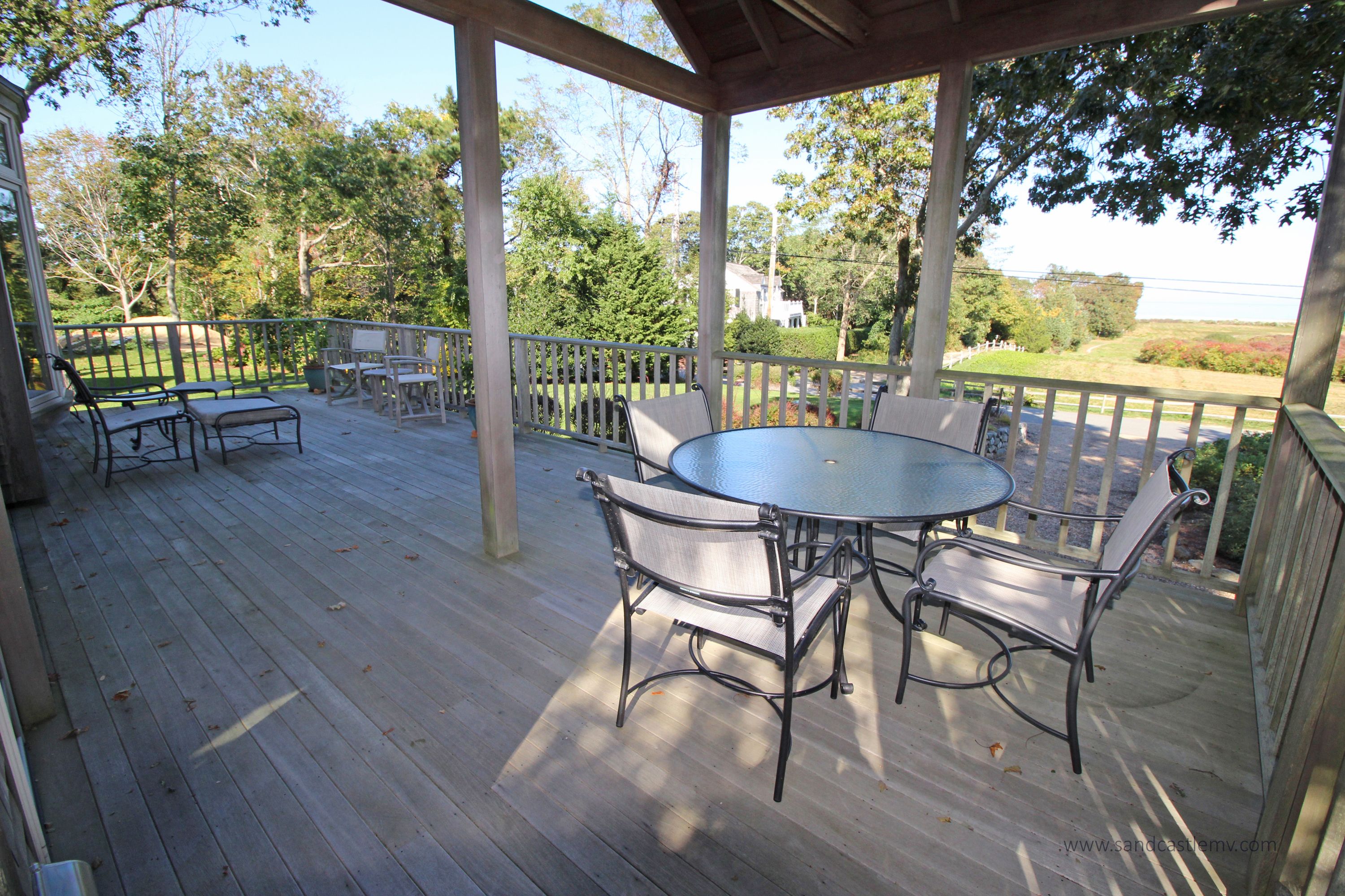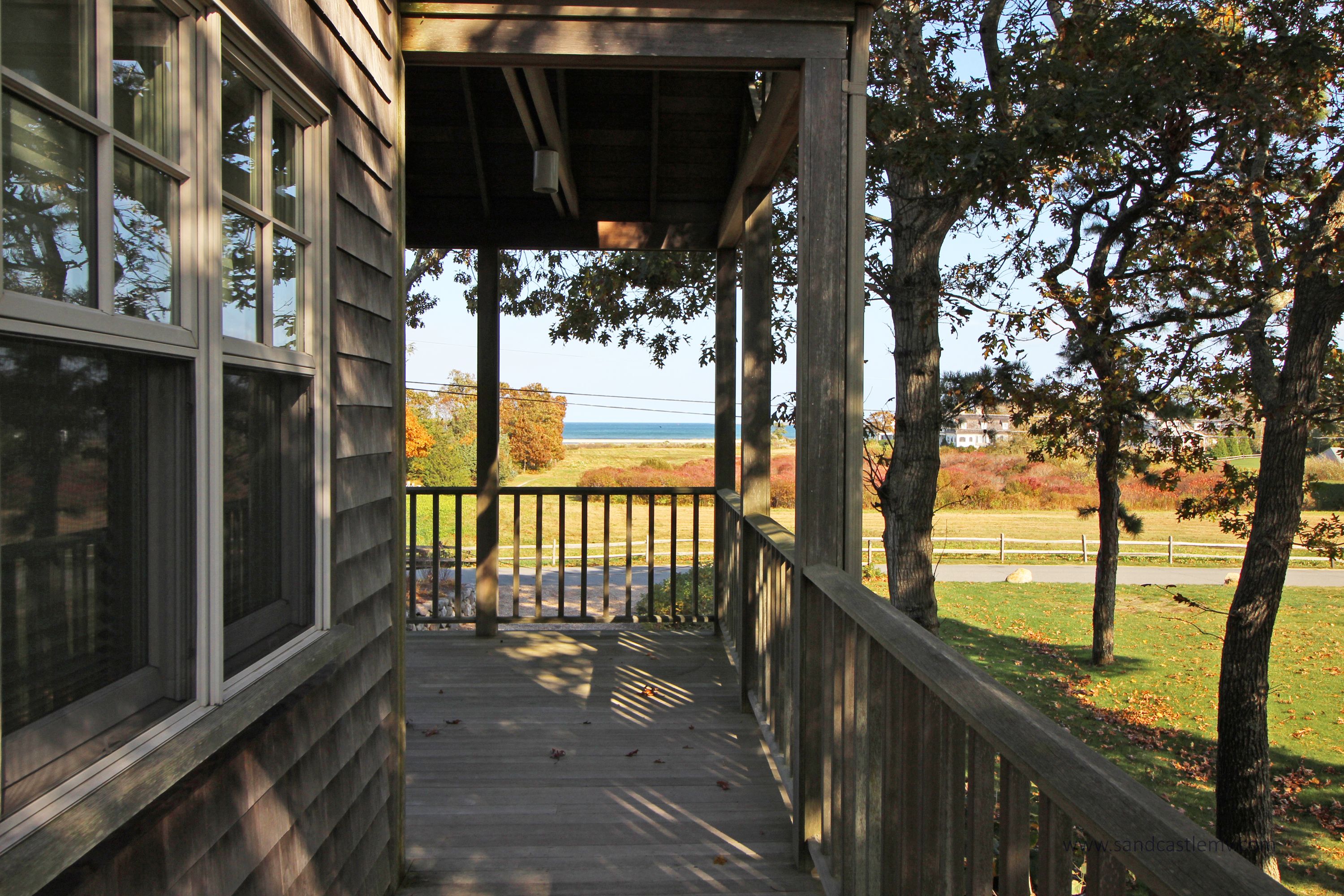 Enjoy the beautiful waterviews of Vineyard Sound from this wonderful two bedroom, English cottage style home, with wrap around deck. This home offers an open living area and air conditioning in both bedrooms. Located on a private lane abutting 6 acres of conservation land. Ideal location close to town and in-town beaches.
