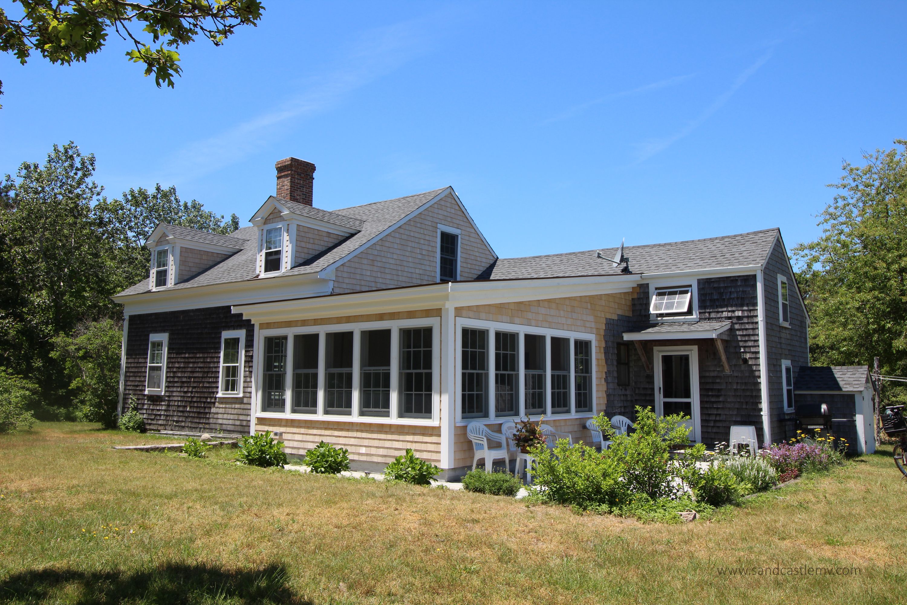 Vacation on a Beautiful Farm, with acres of field and access to over 100 acres of conservation land and trails. Privacy and open space all in one, with fields and woods, wildflowers and only 1 mile to the ocean beach; includes full access to a members only beach on Edgartown’s outer harbor, only 2.5 miles away. This is an old farm house, with updated kitchen and bathrooms, outdoor shower, and all the charm and a few of the quirks of a restored 200-year old home. Large outdoor yard and deck, well-equipped kitchen with eat-in space; large farm dining room, living room with fireplace. Six bedrooms with lots of charm and antique furnishings. An added plus is the Association beach on the outer harbor (5 minute drive)that you will have use of!