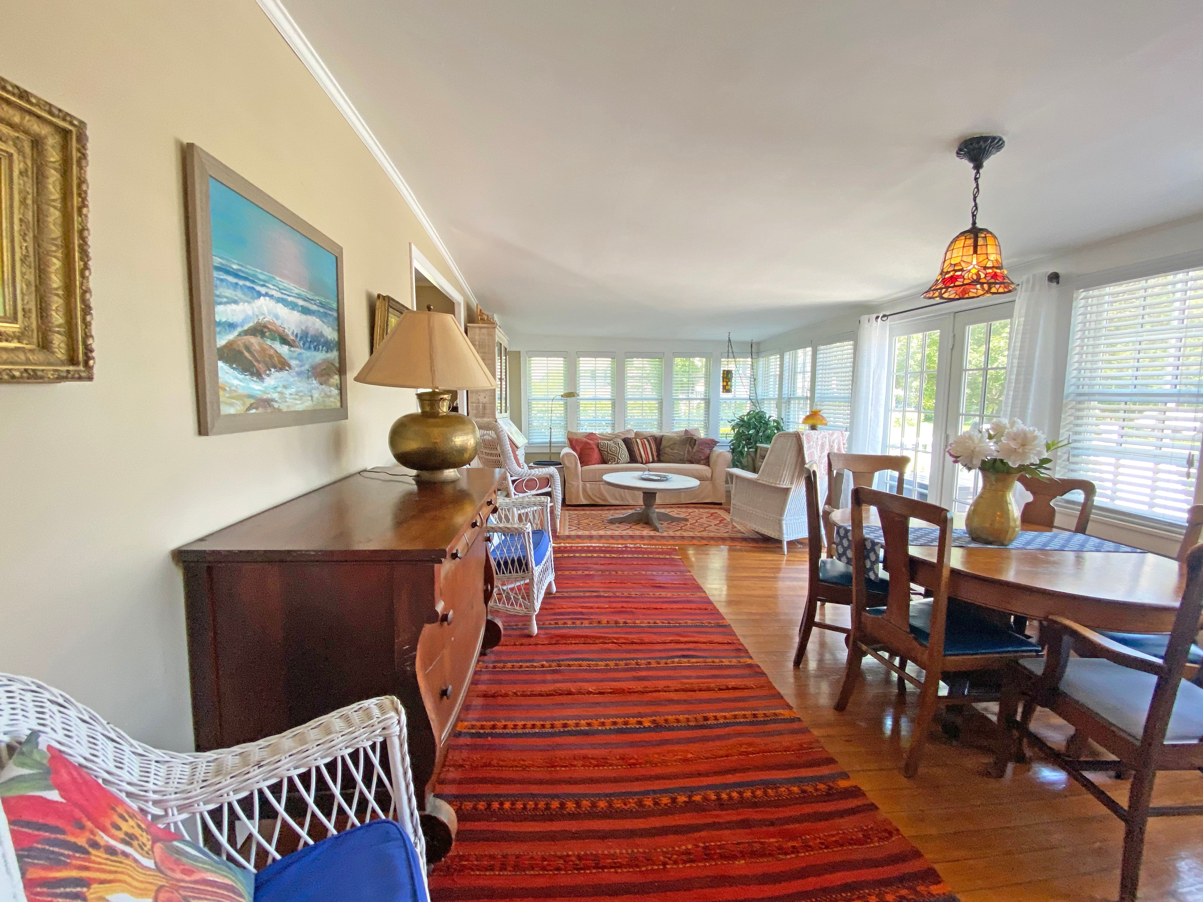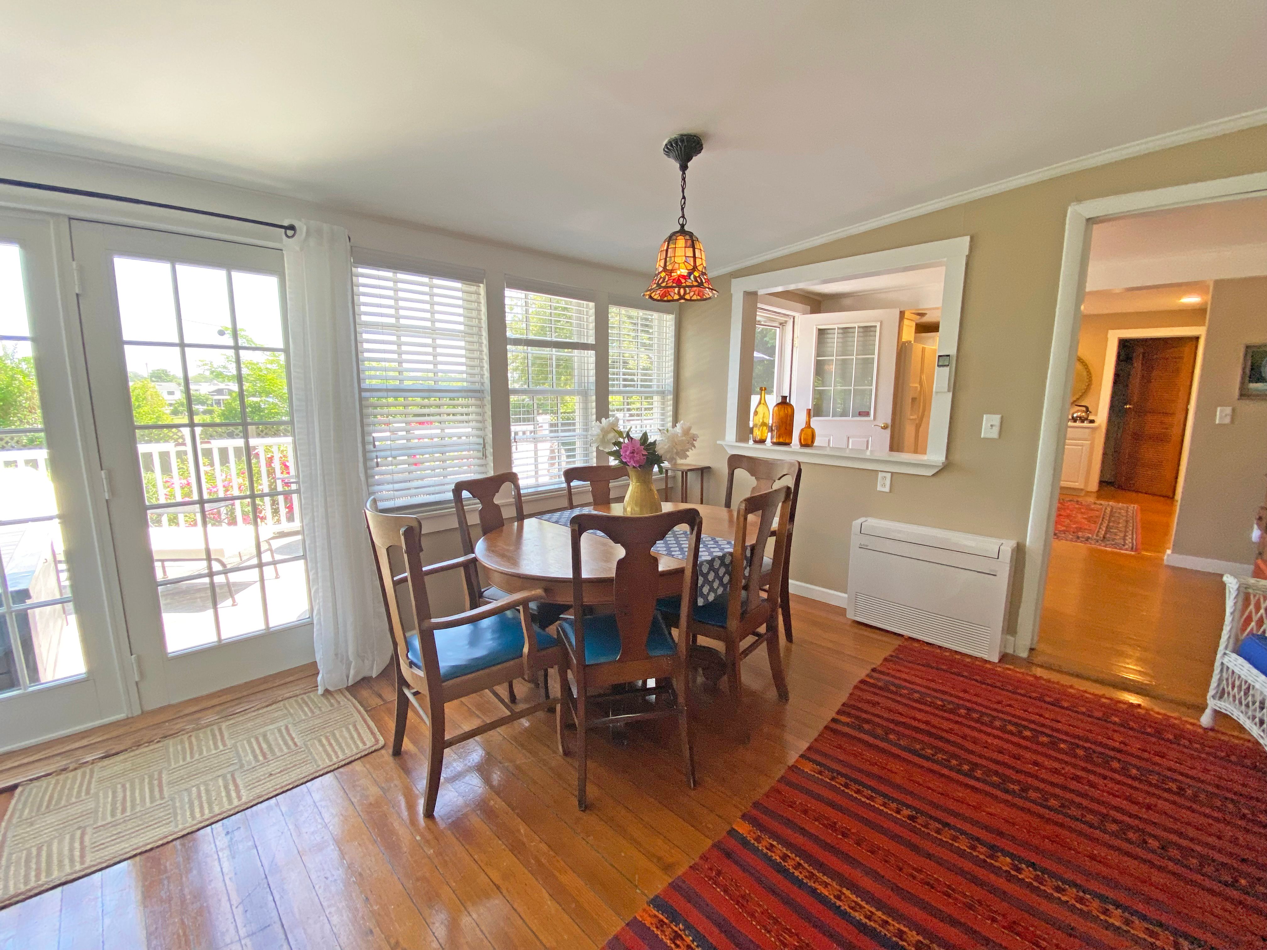 Mini split air conditioners in sun room, living room and Primary second floor bedroom. Window units in downstairs bedroom and small upstairs bedroom.
