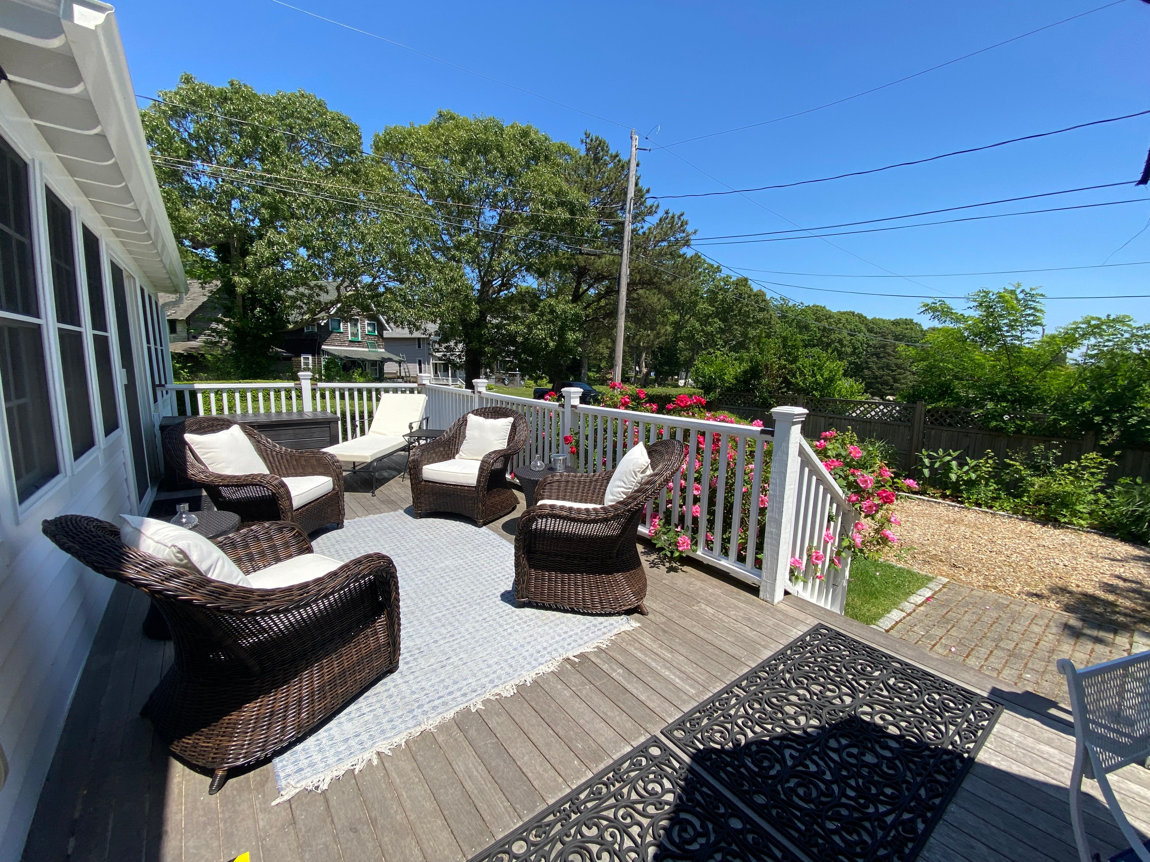 Newly renovated and painted campground Victorian home with gingerbread accents. This charming Victorian is ideally located close to town, shops, restaurants and beaches. Enjoy peeks of the harbor while watching the sunset from the new roof top deck.