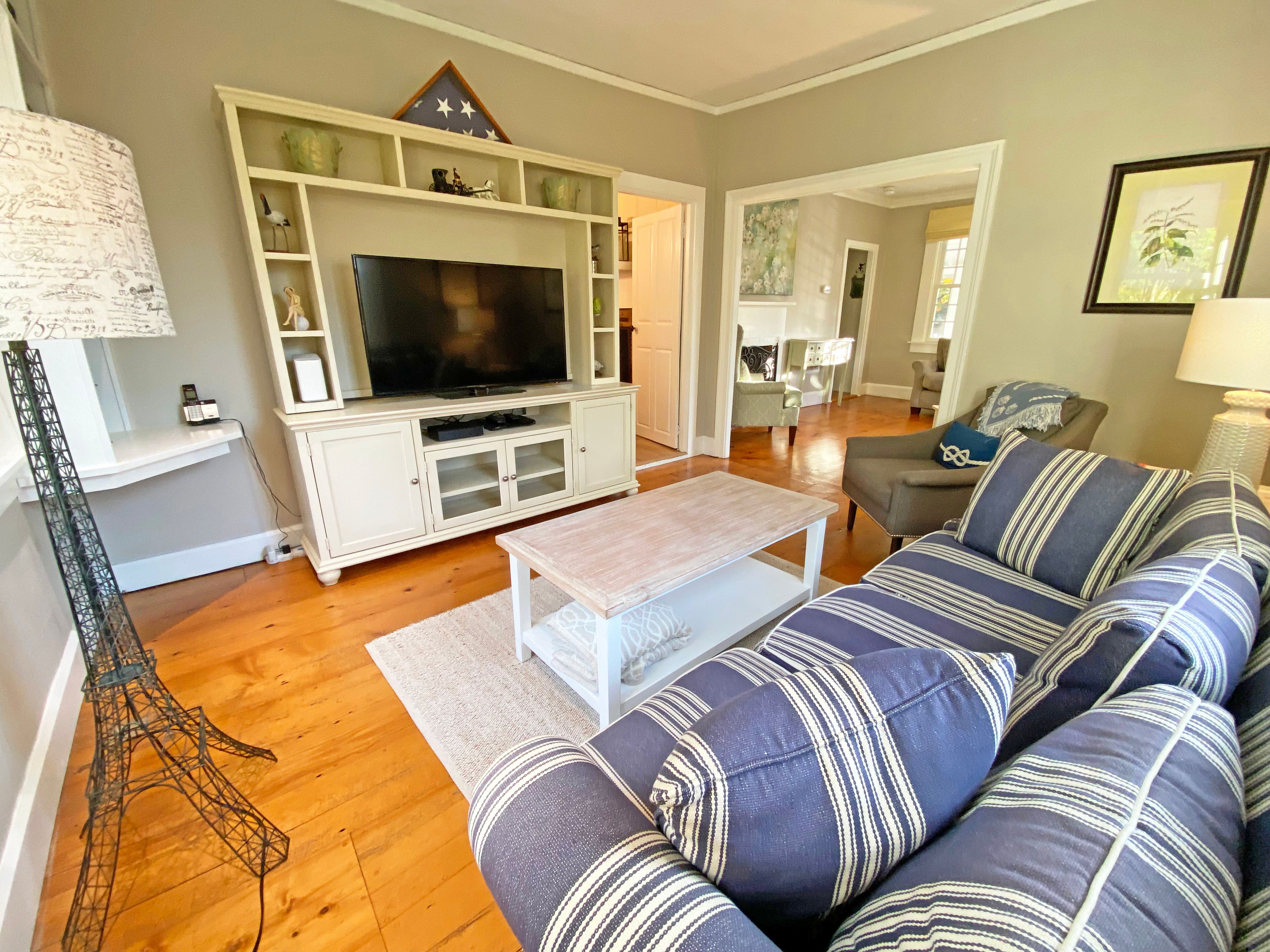 Enjoy a relaxing stay in this beautiful restored 200 year old home located in the heart of Vineyard Haven. Just a few blocks from the ferry, this home has spaces for vacationers of all ages - a TV game room for children, and adjoining reading/gathering room for adults, and bright and airy bedrooms. All will enjoy rocking in the chairs on the front porch while sipping a glass of lemonade or eating dinner in the quiet secluded backyard. Because you are in-town, you are steps from shops, restaurants, coffee and ice cream shops, grocery shopping, the spa, movie theater and Owen Park/Beach.