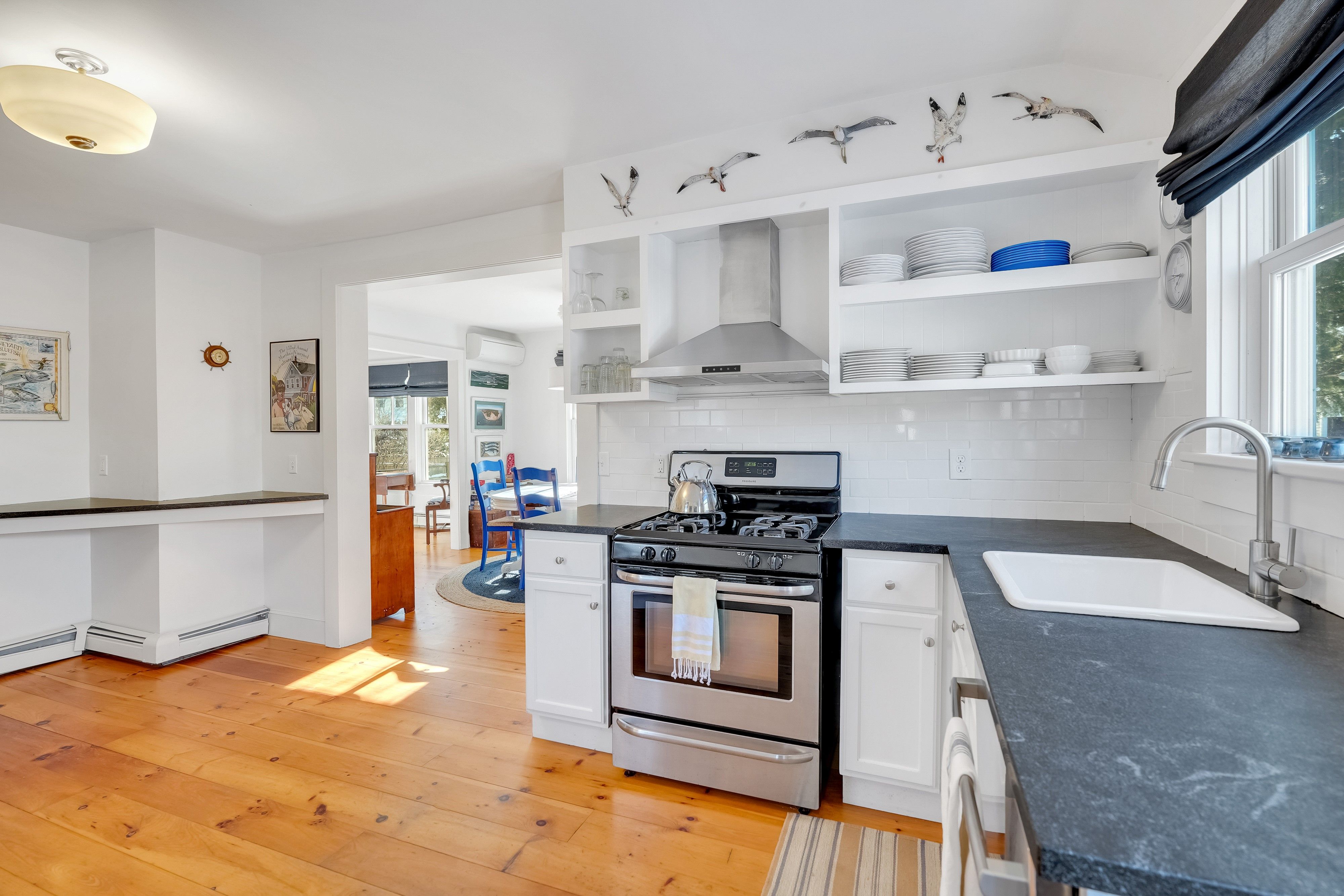 Fabulous updated home base for waves, sunshine, and Island fun! Great location close to shops, dining and Ferry Terminal! Three inviting bedrooms, refreshing AC, one and half bath and outdoor shower. Unwind after the beach in the extended outdoor living area: A private fenced in yard, bluestone patio to gather for al fresco dining, equipped with gas firepit, couch, outdoor table and BBQ grill. This home offers the perfect blend of comfort and beachside bliss.