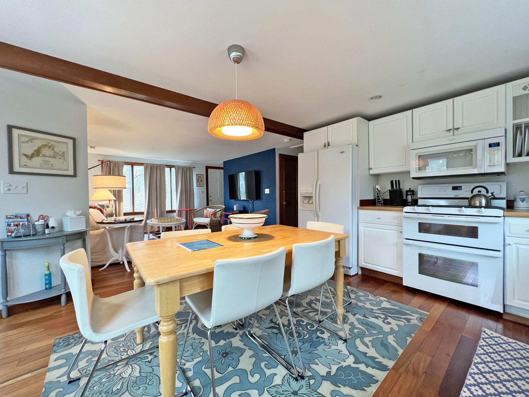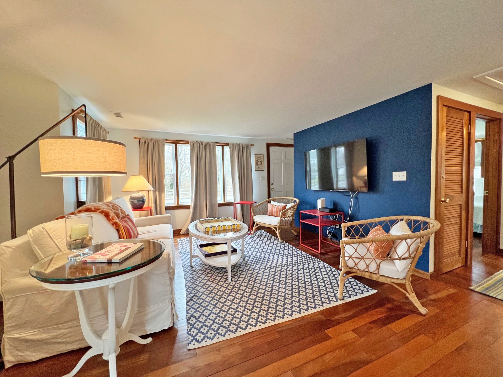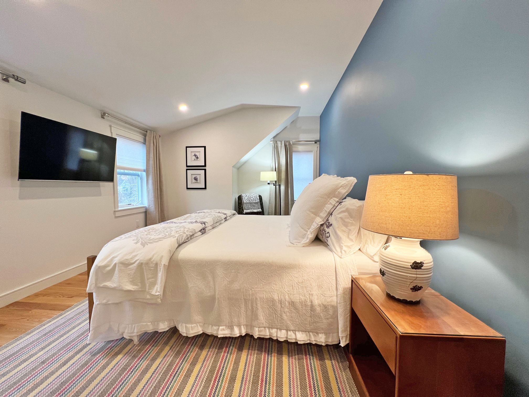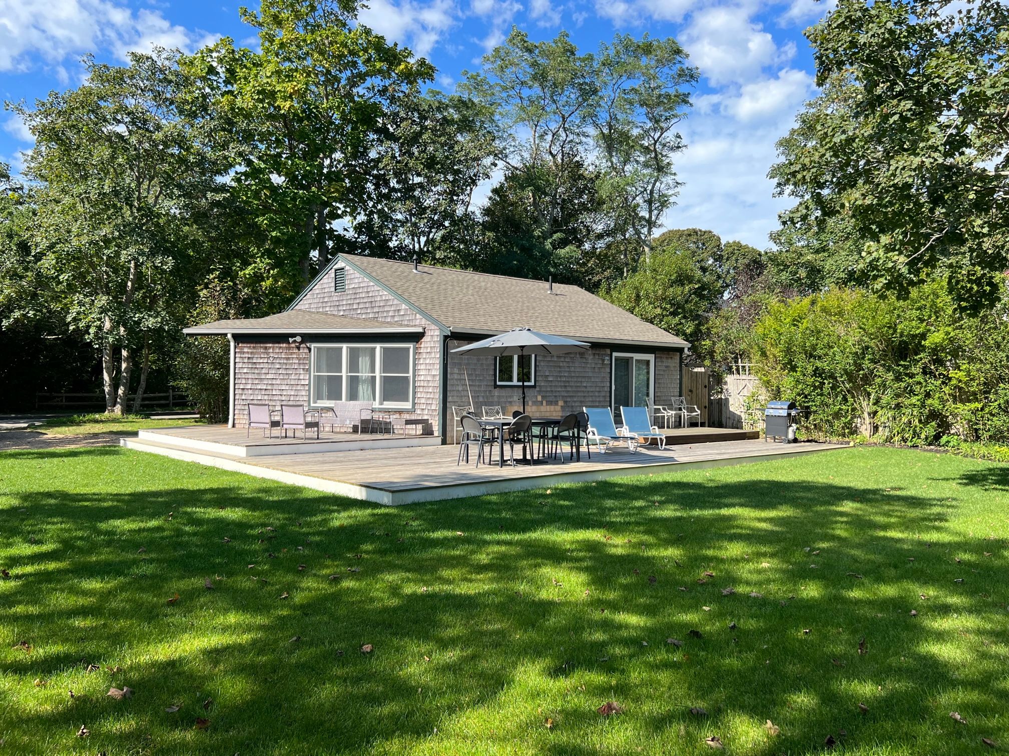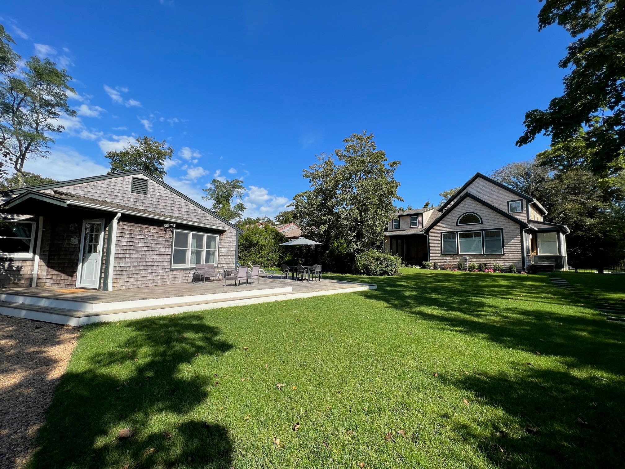 Walk to town from this Edgartown Compound which also has a heated pool (10x16). The main house has an open concept floor plan that opens out the back deck and pool. The home has 3 bedrooms all on the second floor. The primary bedroom has a private bathroom and a king size bed. The other two bedrooms share a hall bathroom. There is also a great screened porch.