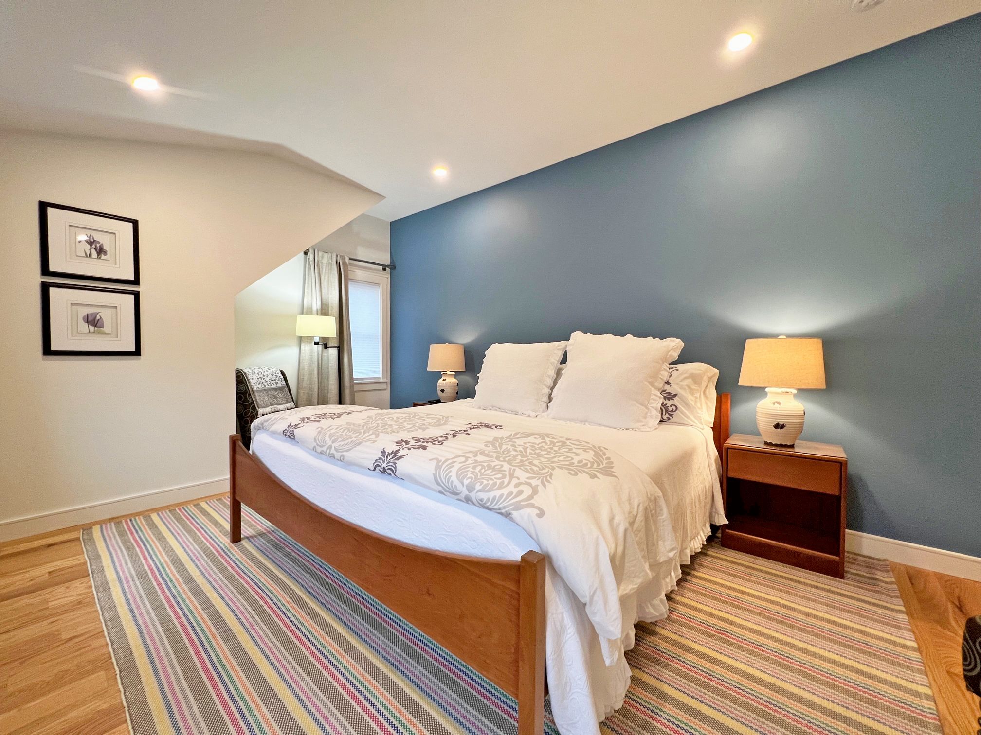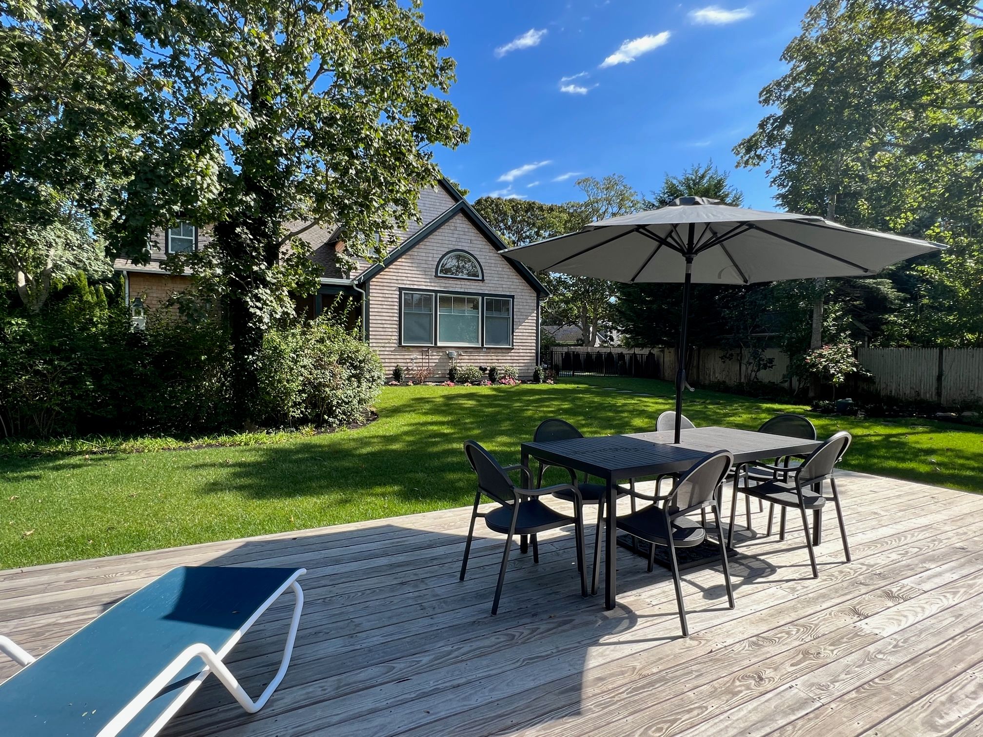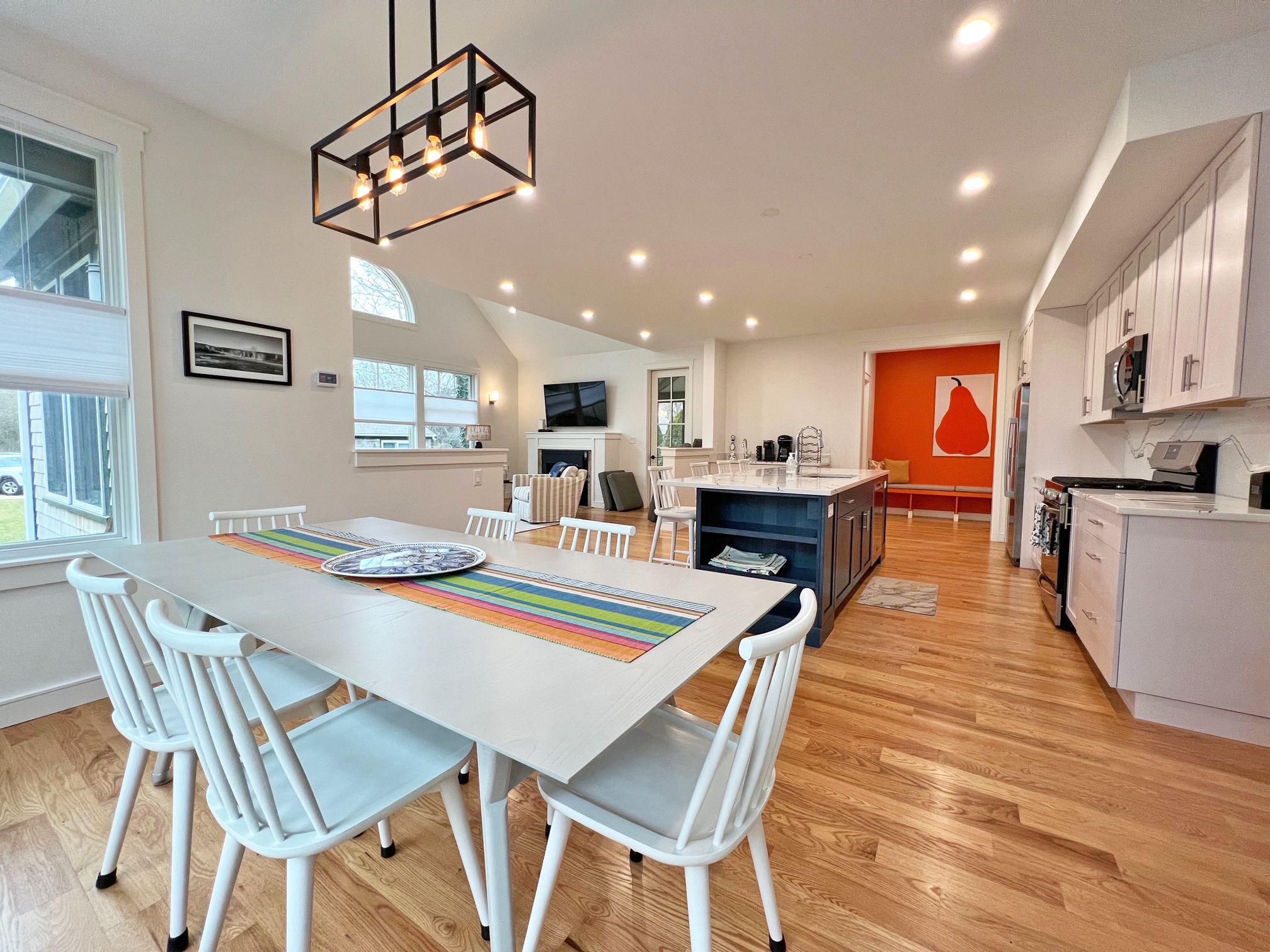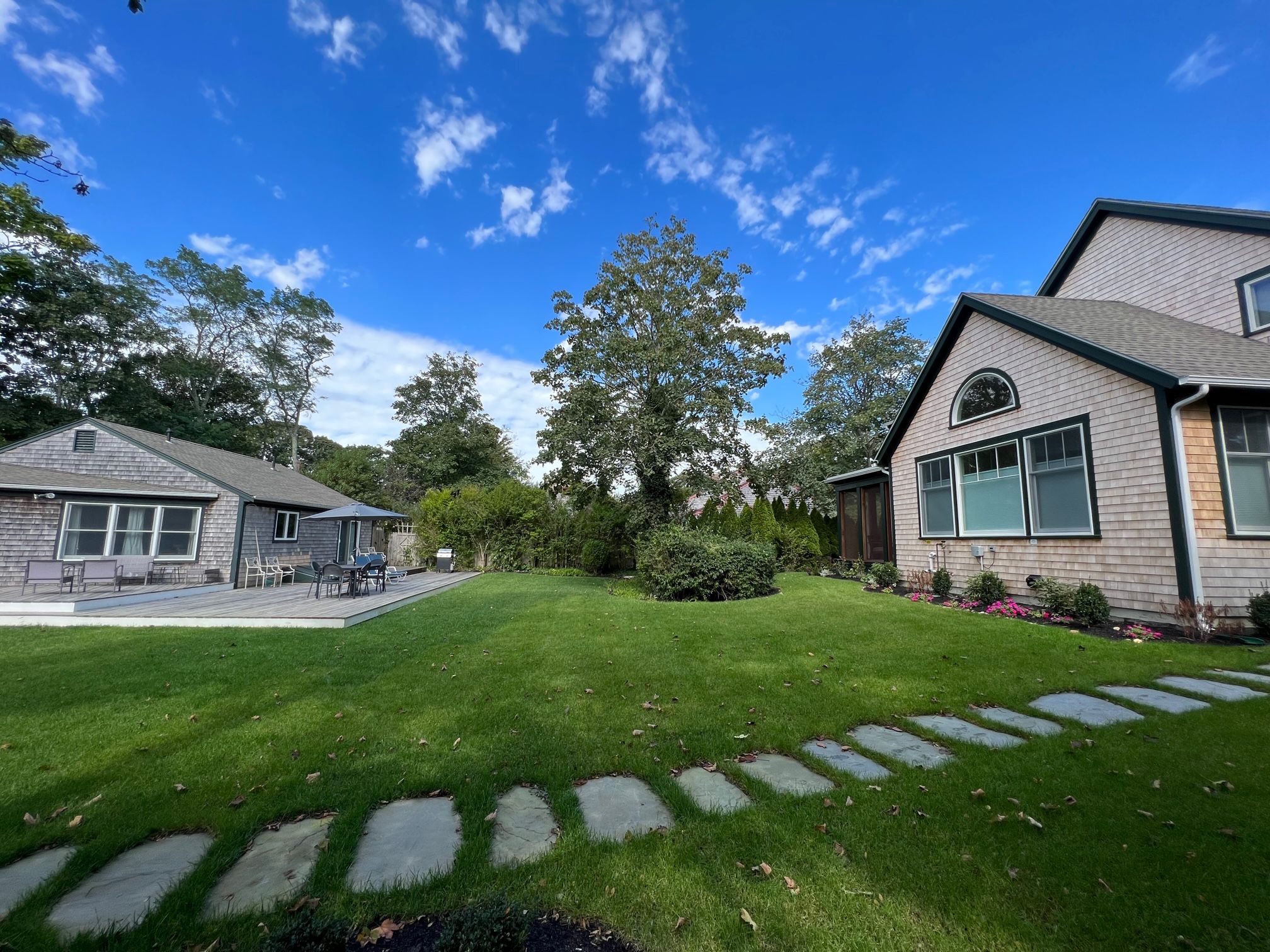 Walk to town from this Edgartown Compound which also has a heated pool (10x16). The main house has an open concept floor plan that opens out the back deck and pool. The home has 3 bedrooms all on the second floor. The primary bedroom has a private bathroom and a king size bed. The other two bedrooms share a hall bathroom. There is also a great screened porch.