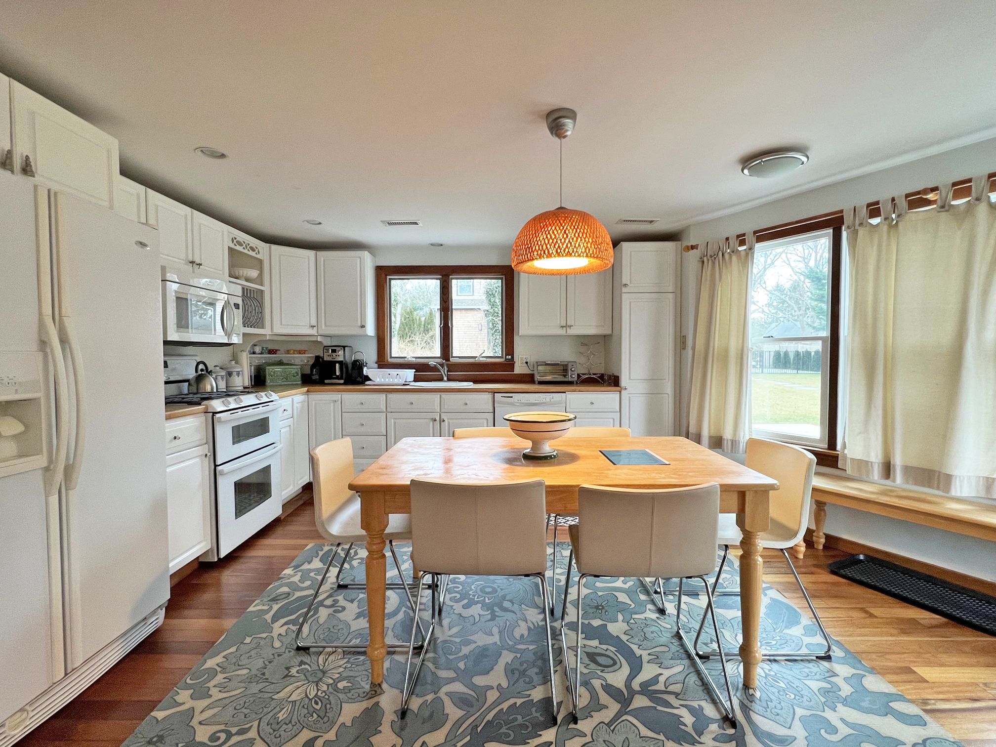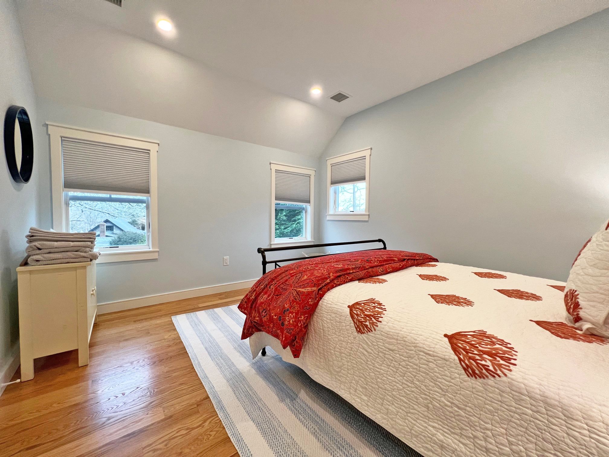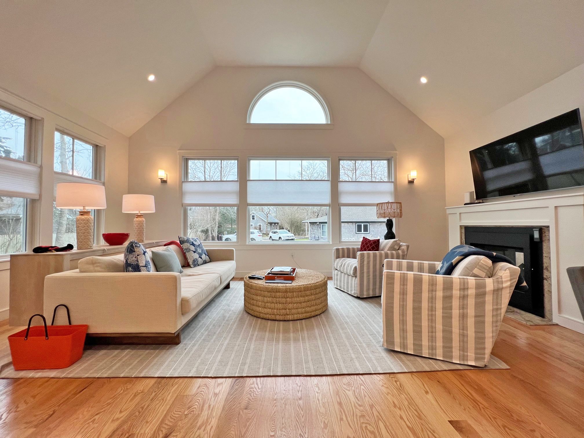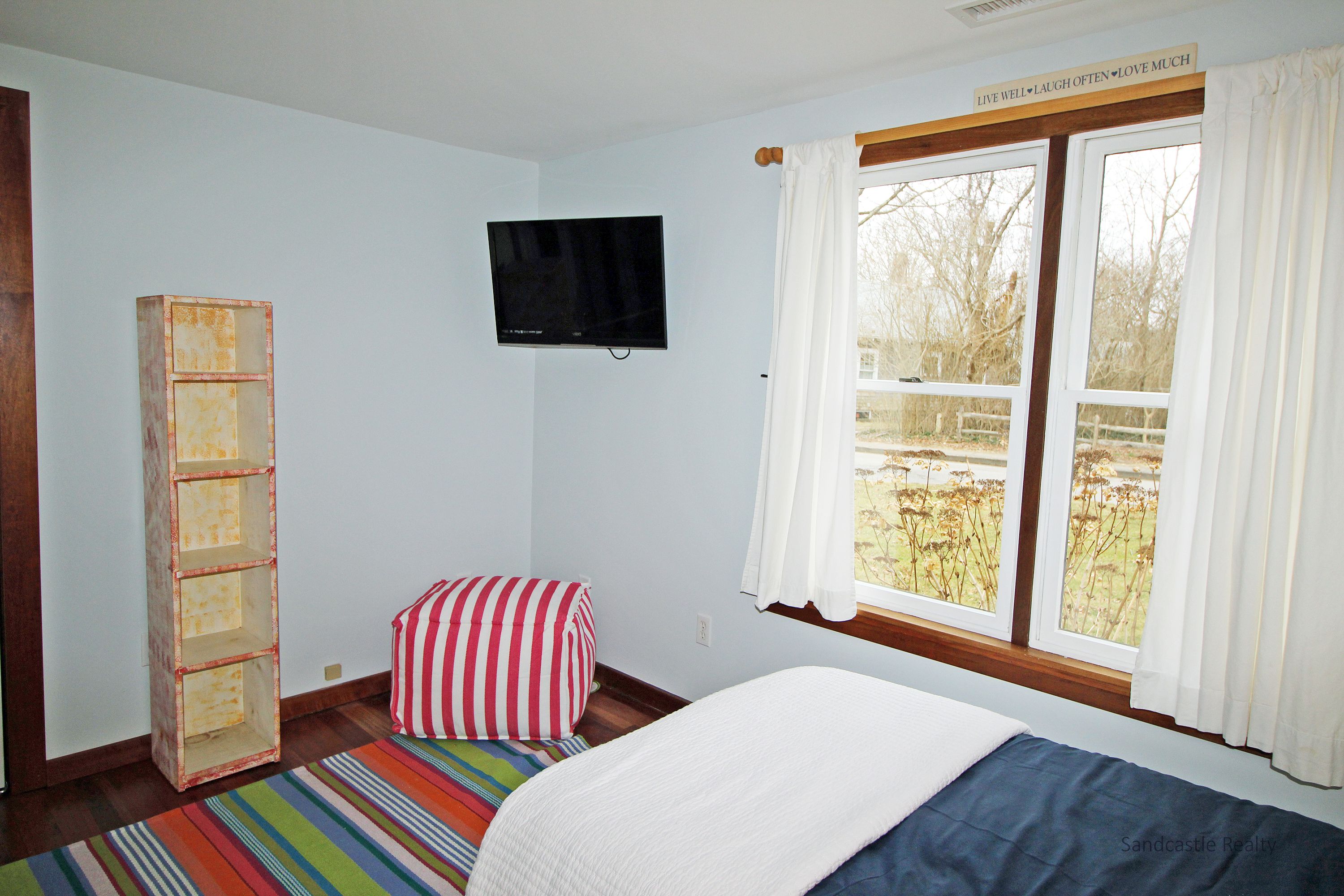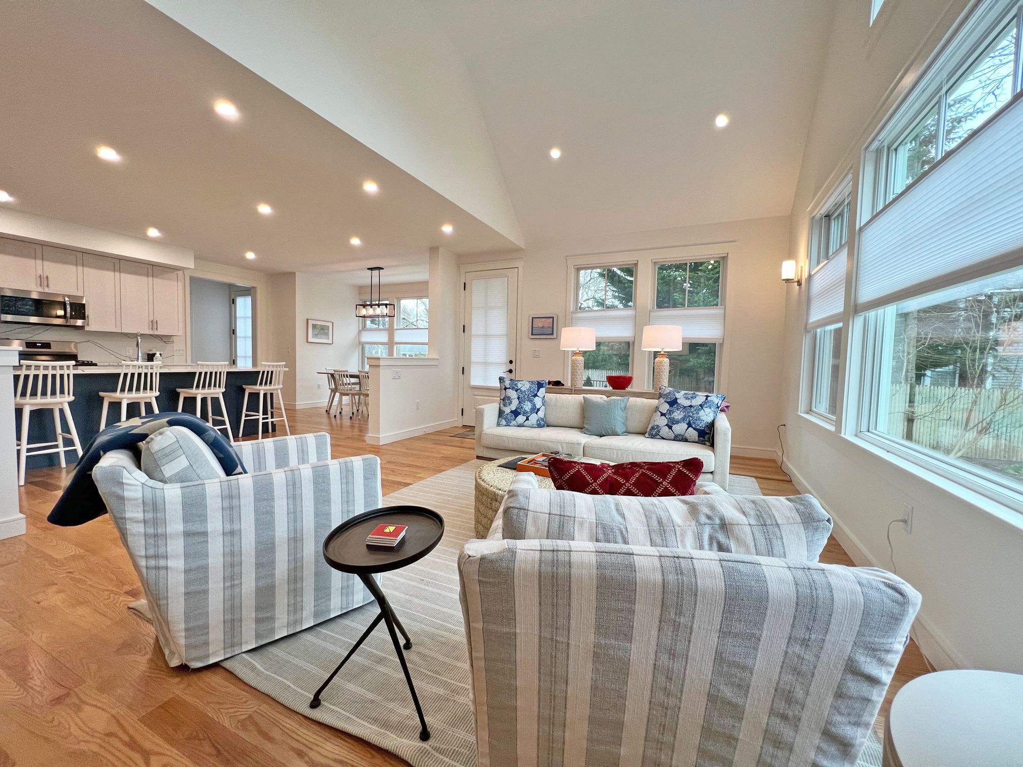 Walk to town from this Edgartown Compound which also has a heated pool (10x16). The main house has an open concept floor plan that opens out the back deck and pool. The home has 3 bedrooms all on the second floor. The primary bedroom has a private bathroom and a king size bed. The other two bedrooms share a hall bathroom. There is also a great screened porch.