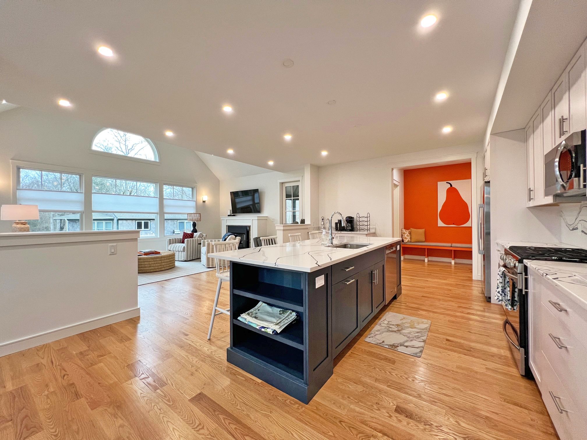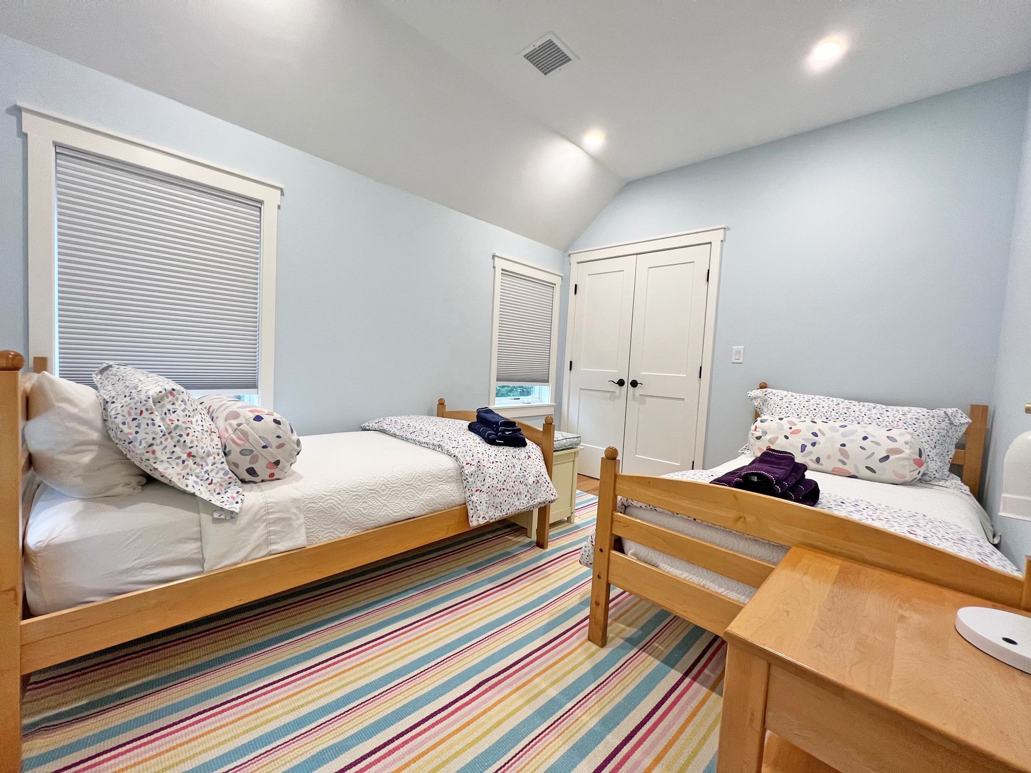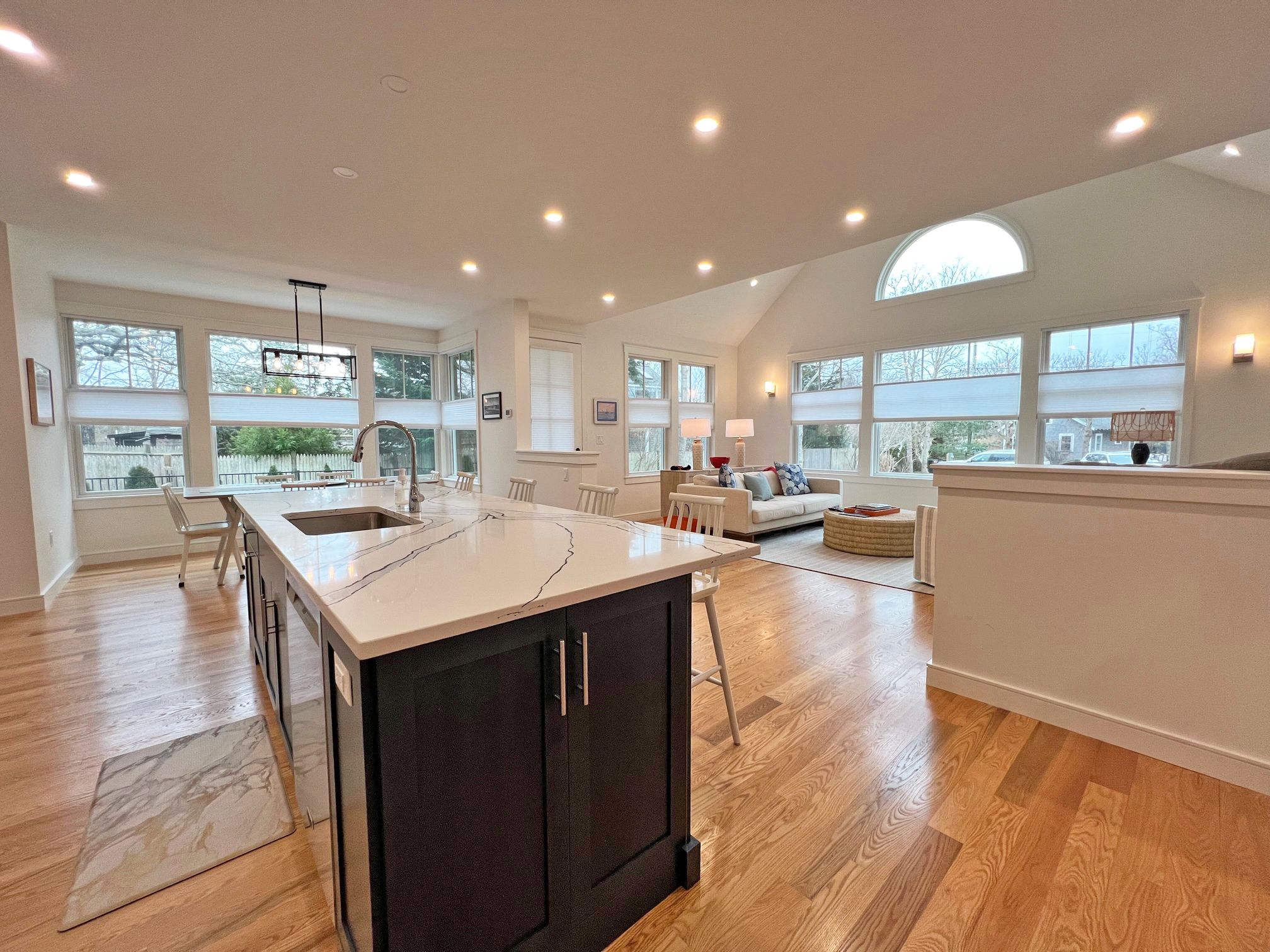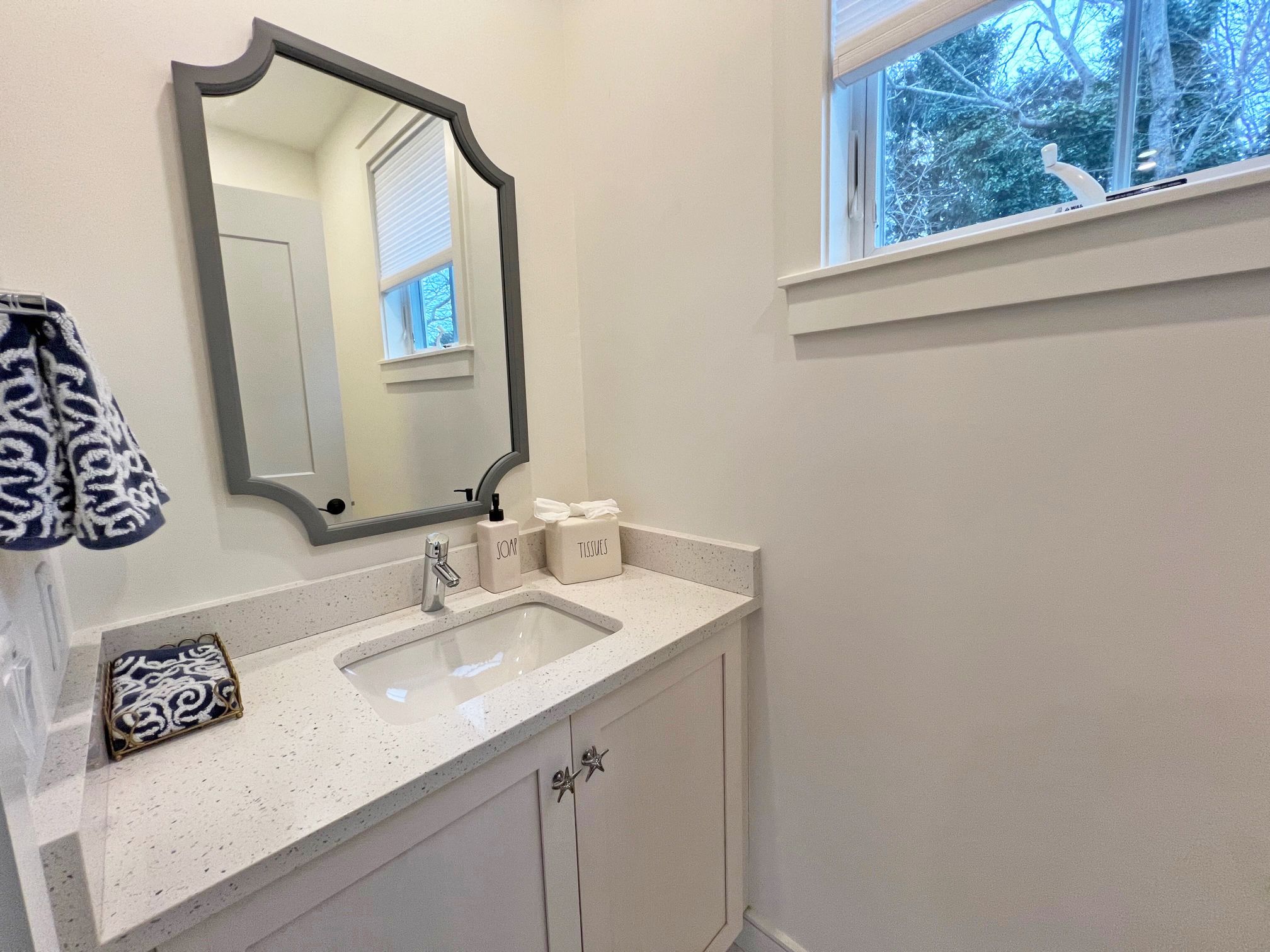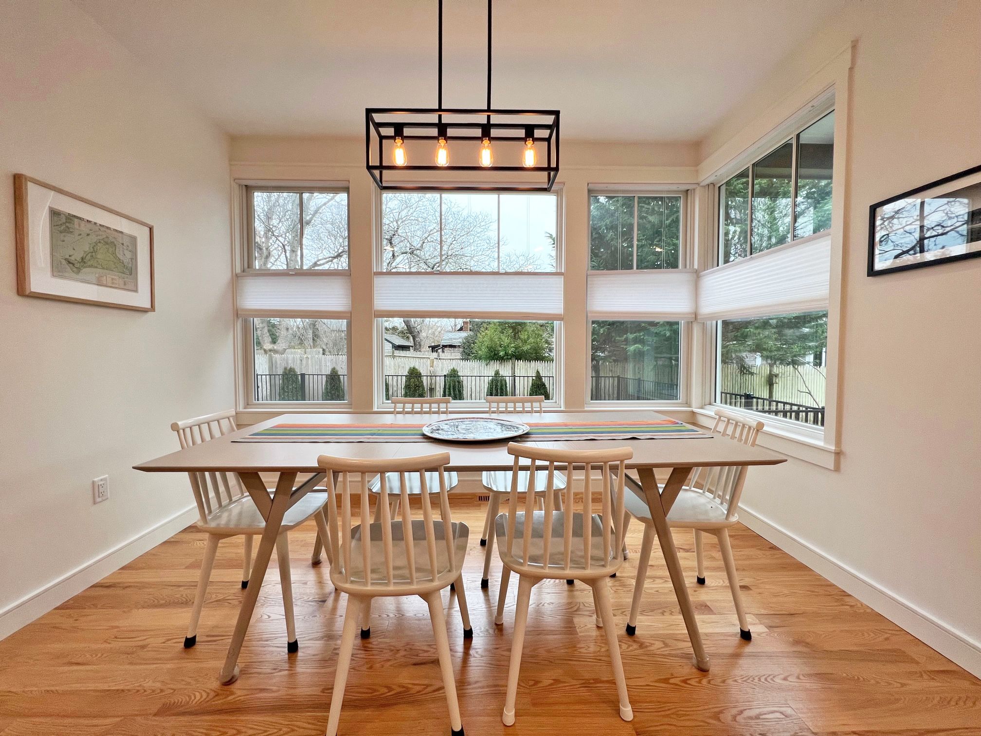 Walk to town from this Edgartown Compound which also has a heated pool (10x16). The main house has an open concept floor plan that opens out the back deck and pool. The home has 3 bedrooms all on the second floor. The primary bedroom has a private bathroom and a king size bed. The other two bedrooms share a hall bathroom. There is also a great screened porch.