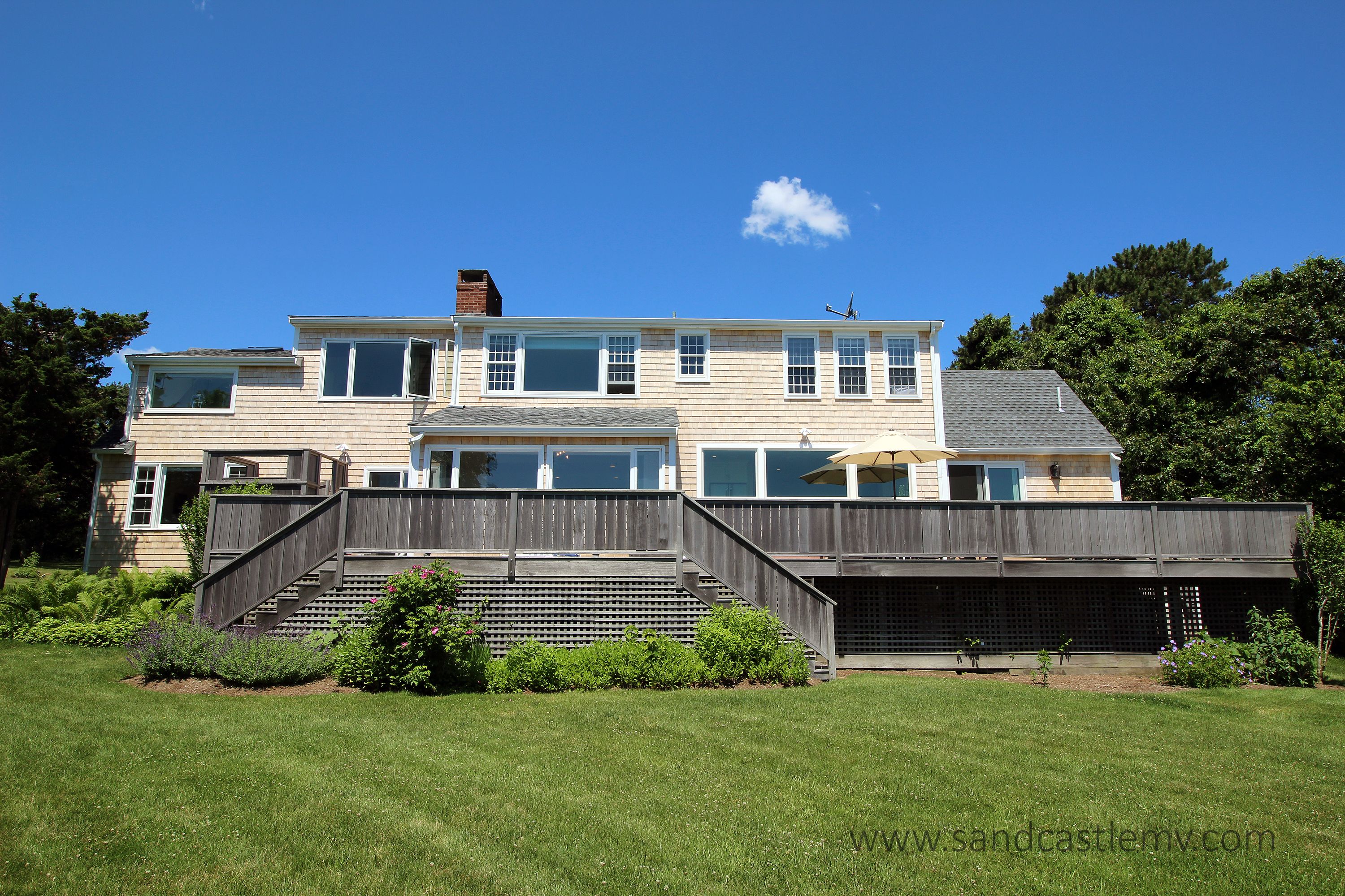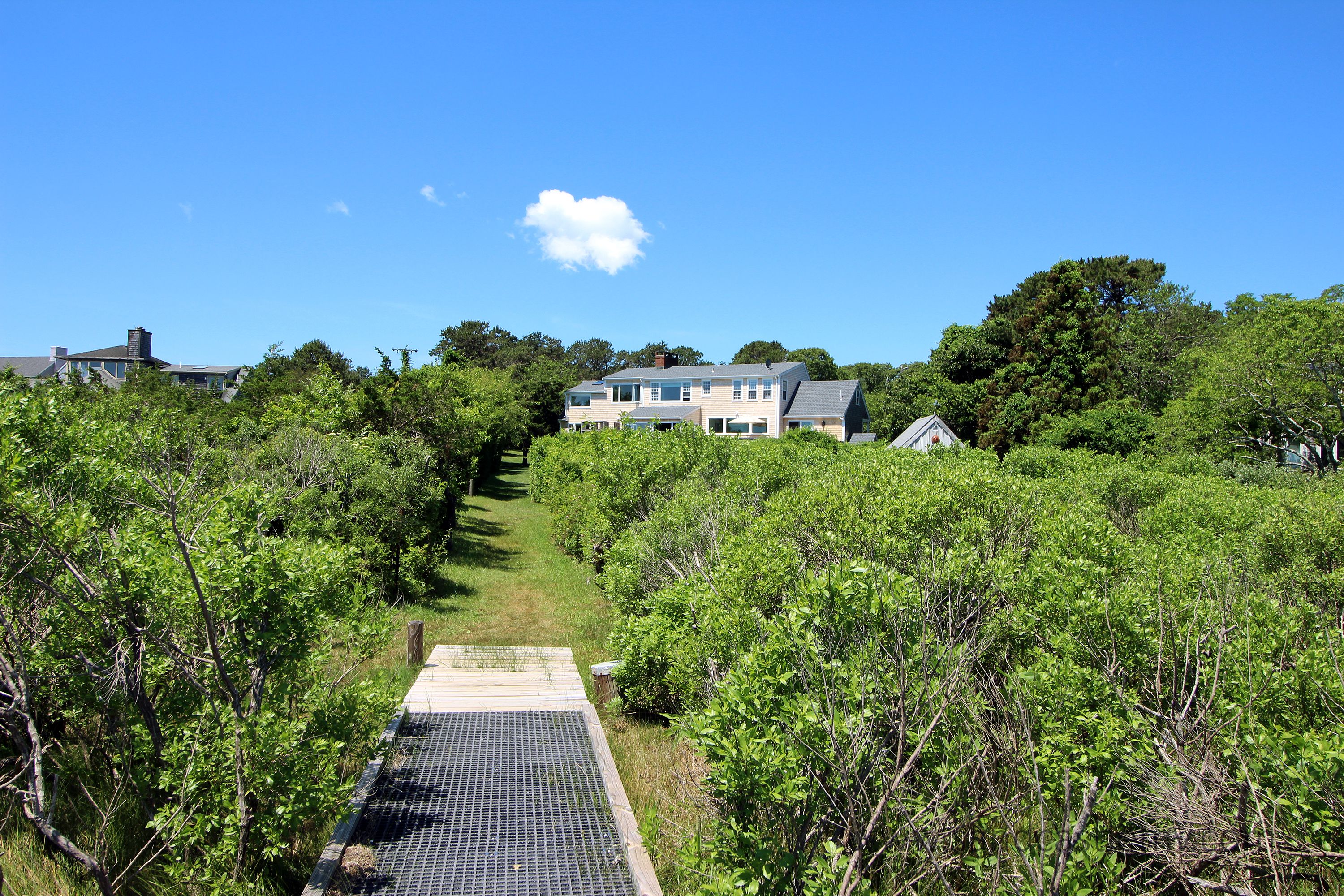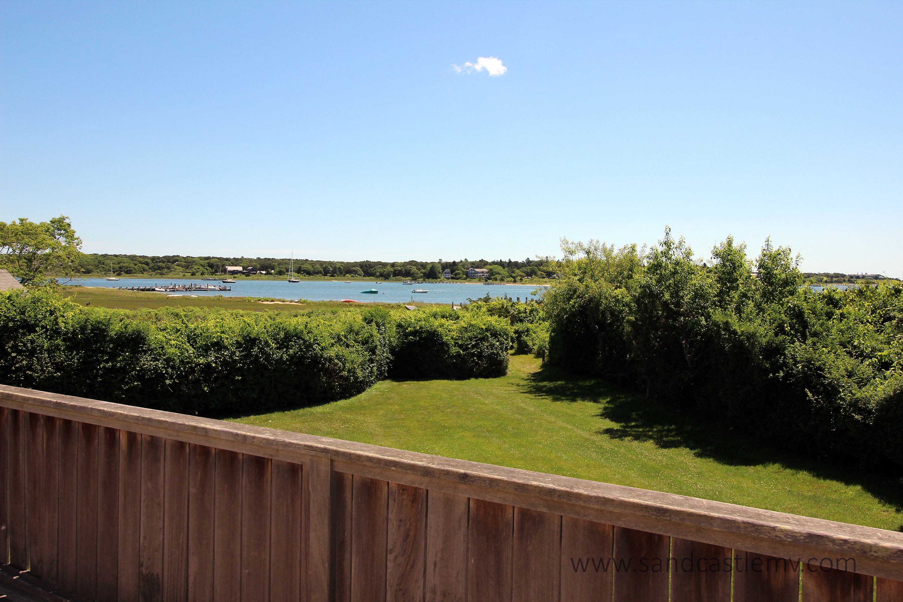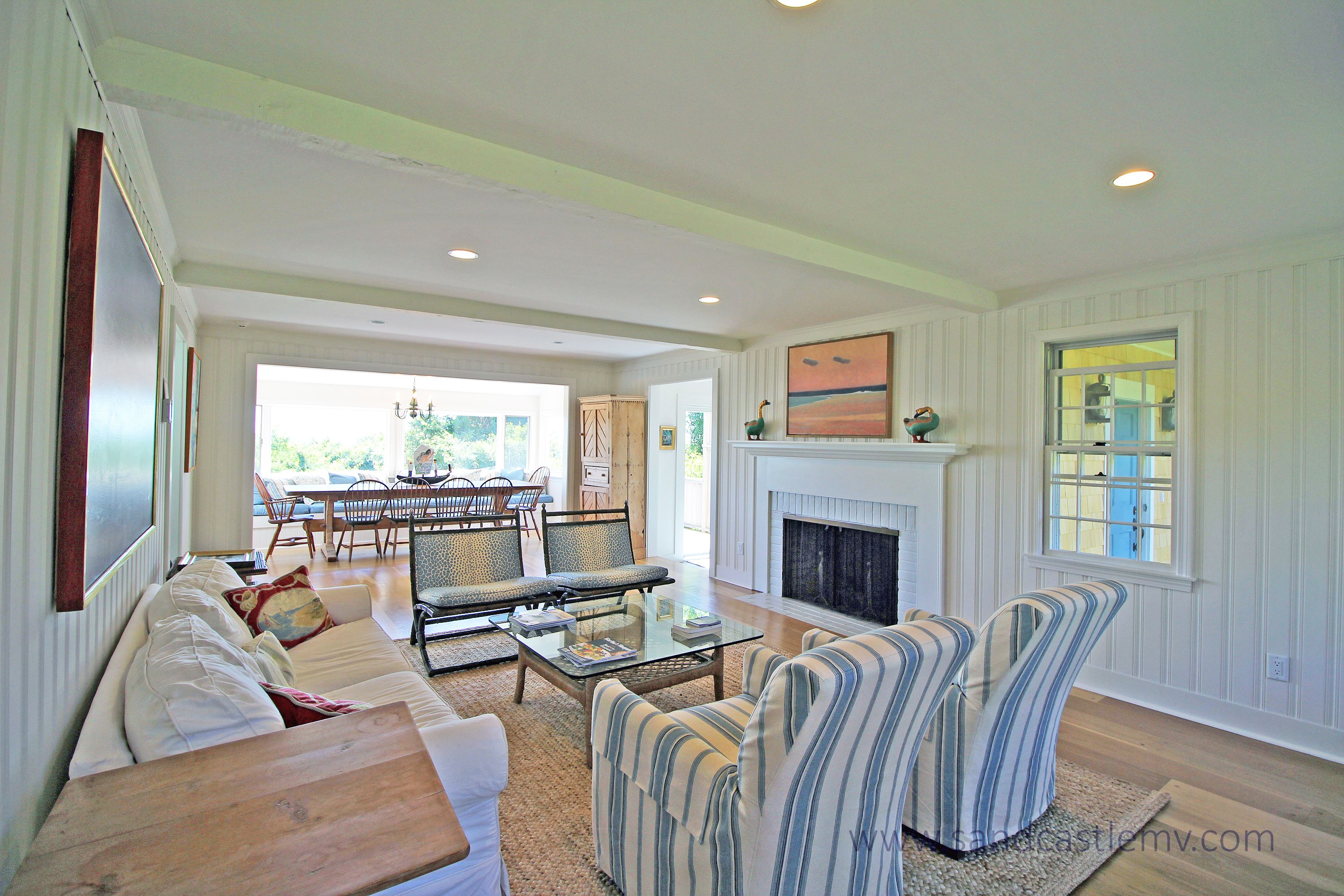 This is an amazing spot for your Vineyard Vacation! It is located on Katama Bay with beautiful views of the bay from most rooms of the house. The house has an open concept kitchen/living space with another living room and separate dining area overlooking the bay. The main floor also has as an en-suite bedroom. The 2nd Floor has two additional bedrooms both with waterviews and renovated bathrooms. The lower level has an addition bedroom and bathroom. The separate Carriage House has a 2nd floor bedroom with 4 twins and a full bathroom. The house an association dock that can be used for pick up and drop off only. The path to the association beach runs along the side of the house for beach access for the association.