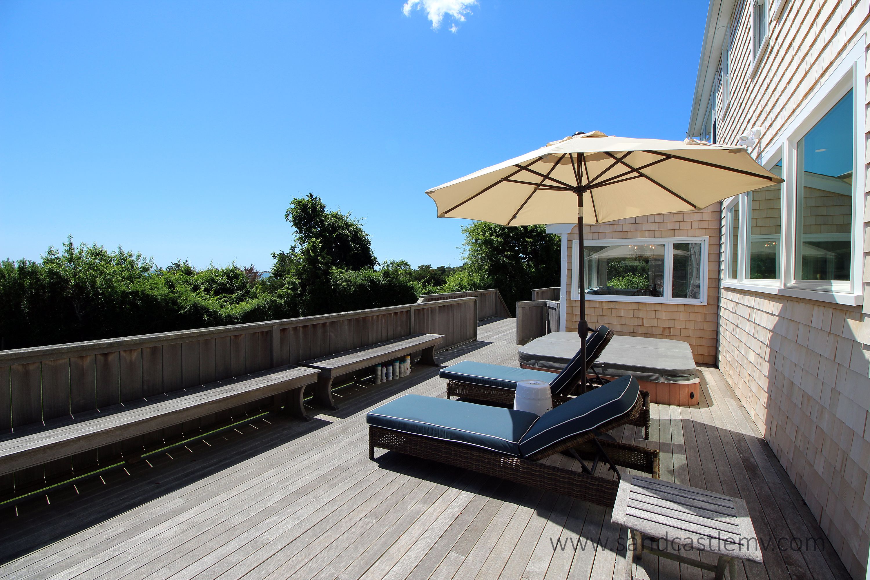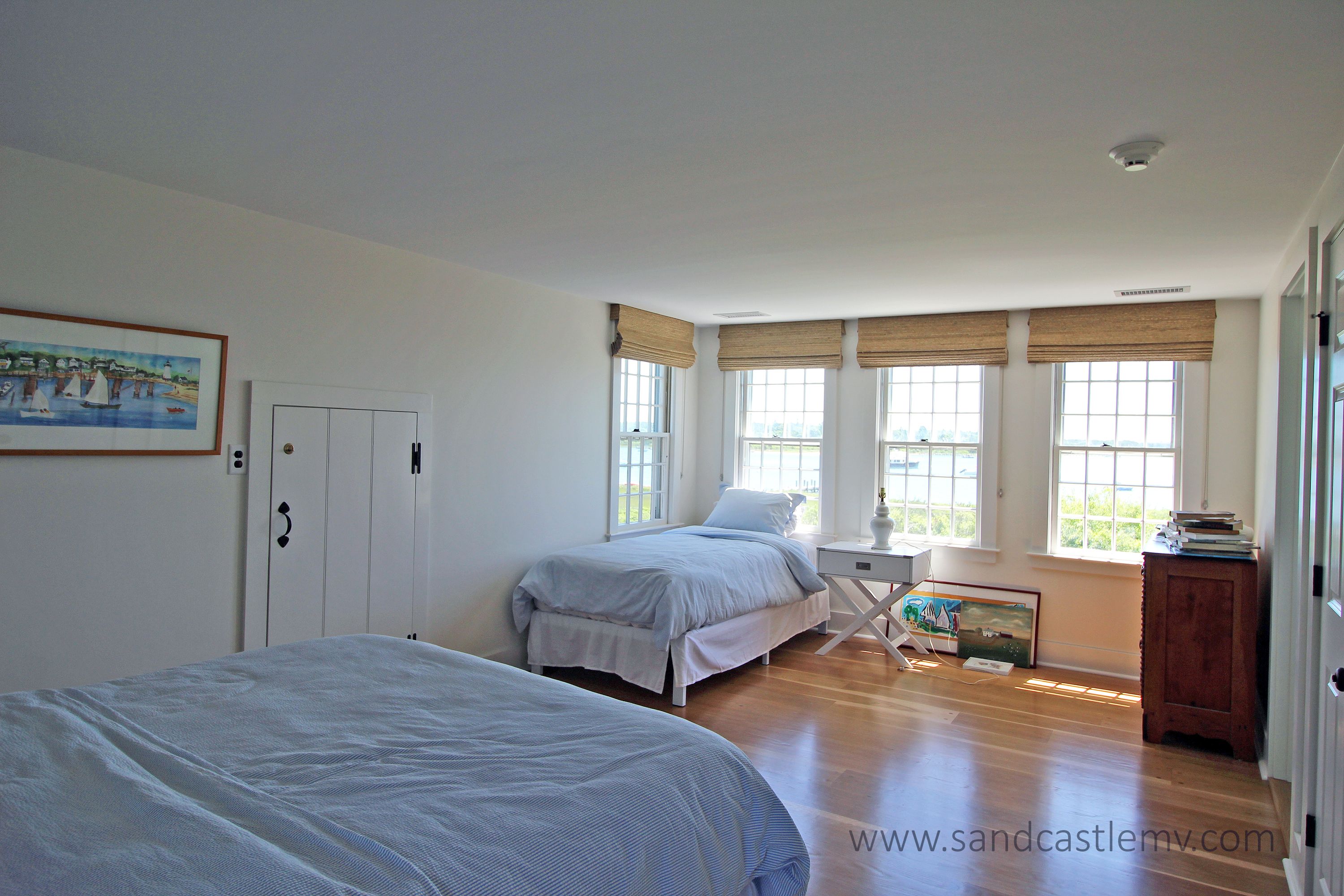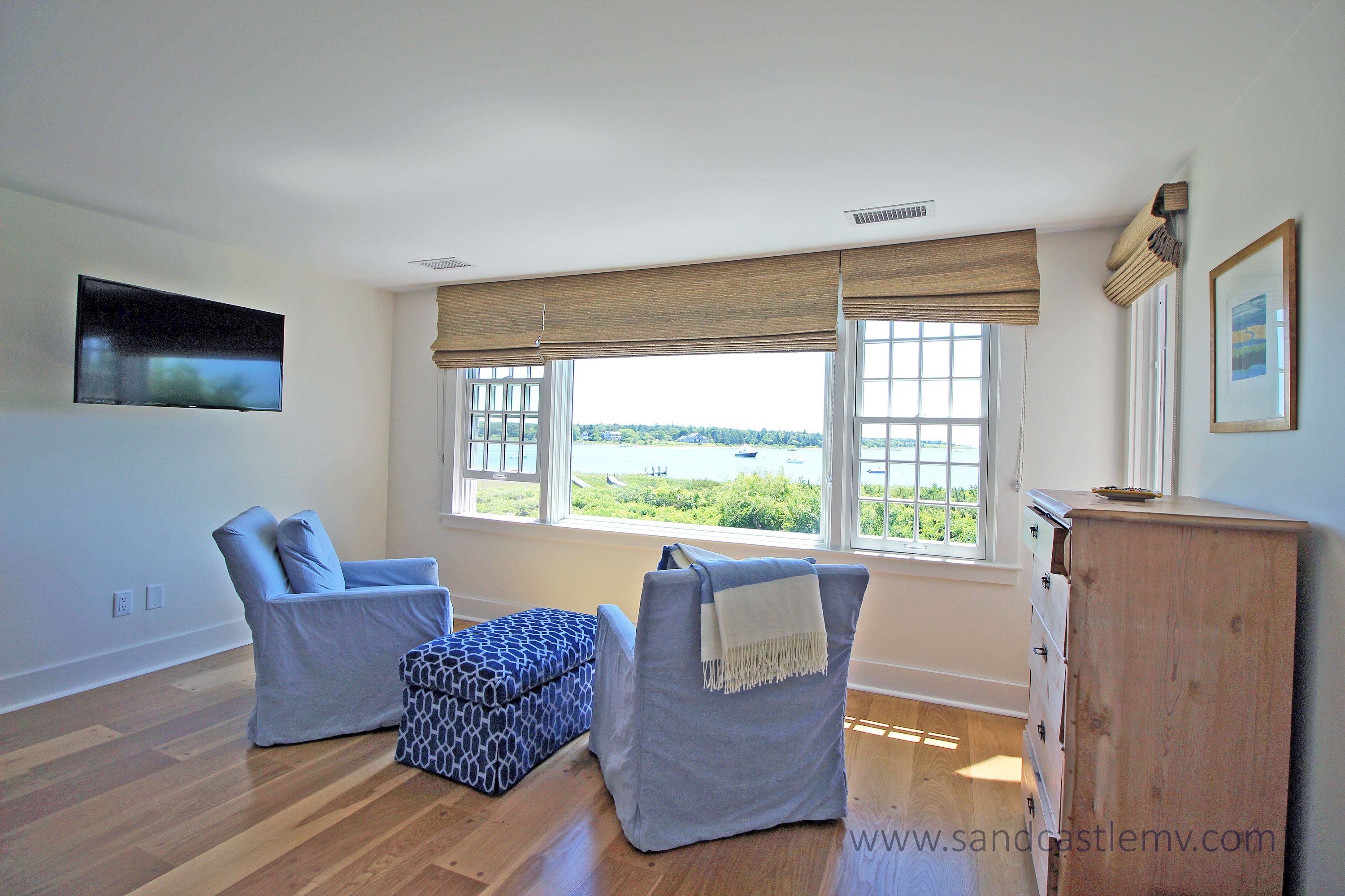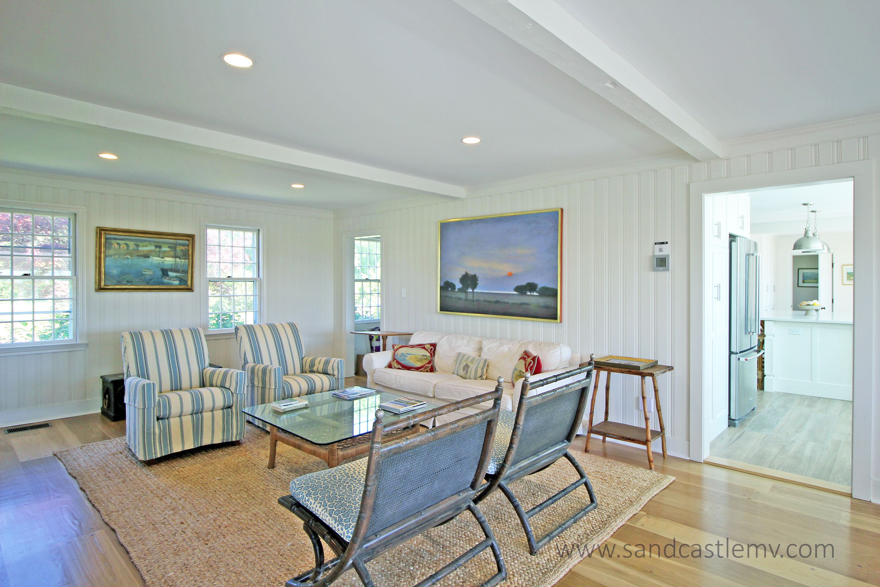 This is an amazing spot for your Vineyard Vacation! It is located on Katama Bay with beautiful views of the bay from most rooms of the house. The house has an open concept kitchen/living space with another living room and separate dining area overlooking the bay. The main floor also has as an en-suite bedroom. The 2nd Floor has two additional bedrooms both with waterviews and renovated bathrooms. The lower level has an addition bedroom and bathroom. The separate Carriage House has a 2nd floor bedroom with 4 twins and a full bathroom. The house an association dock that can be used for pick up and drop off only. The path to the association beach runs along the side of the house for beach access for the association.