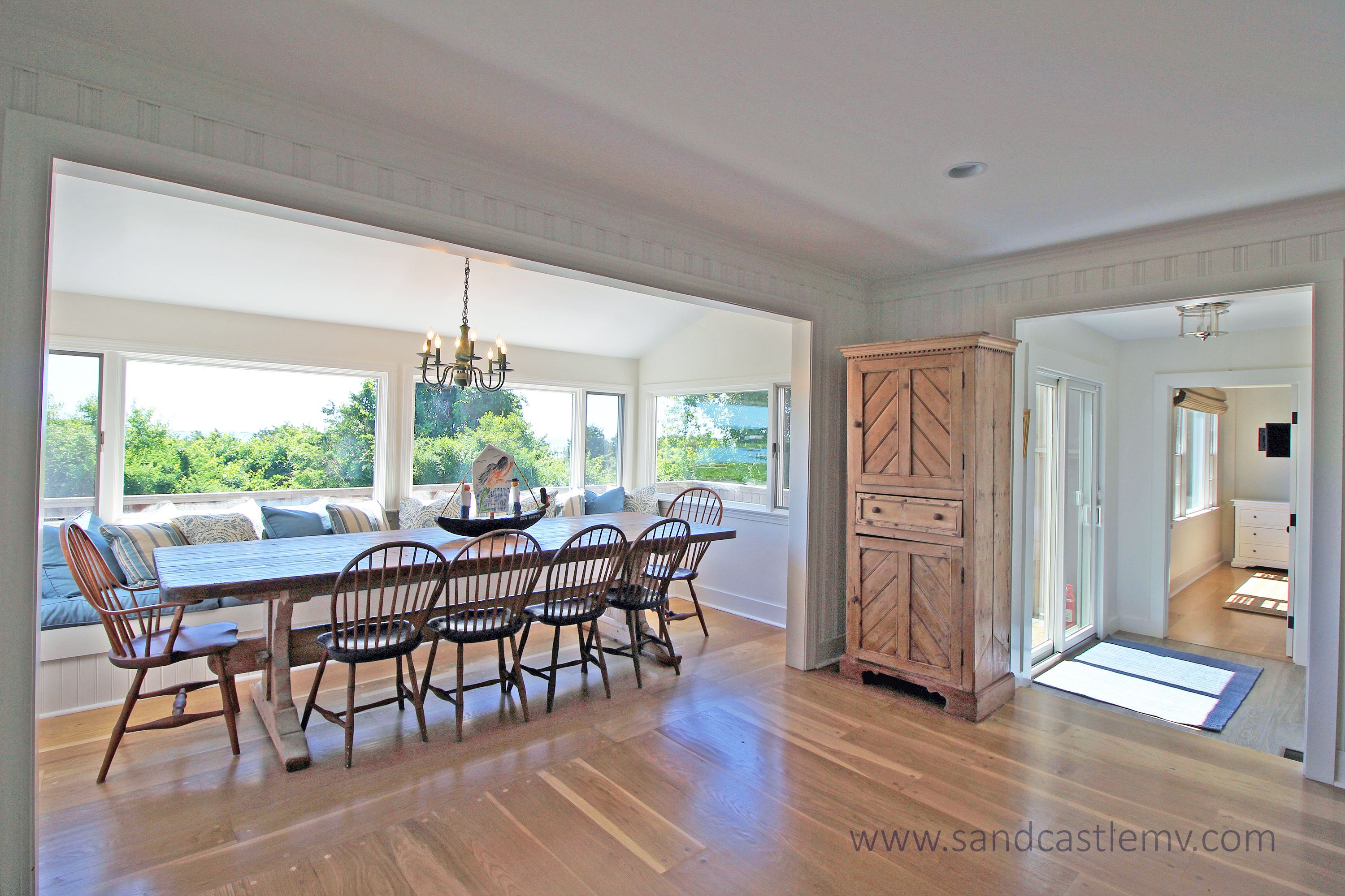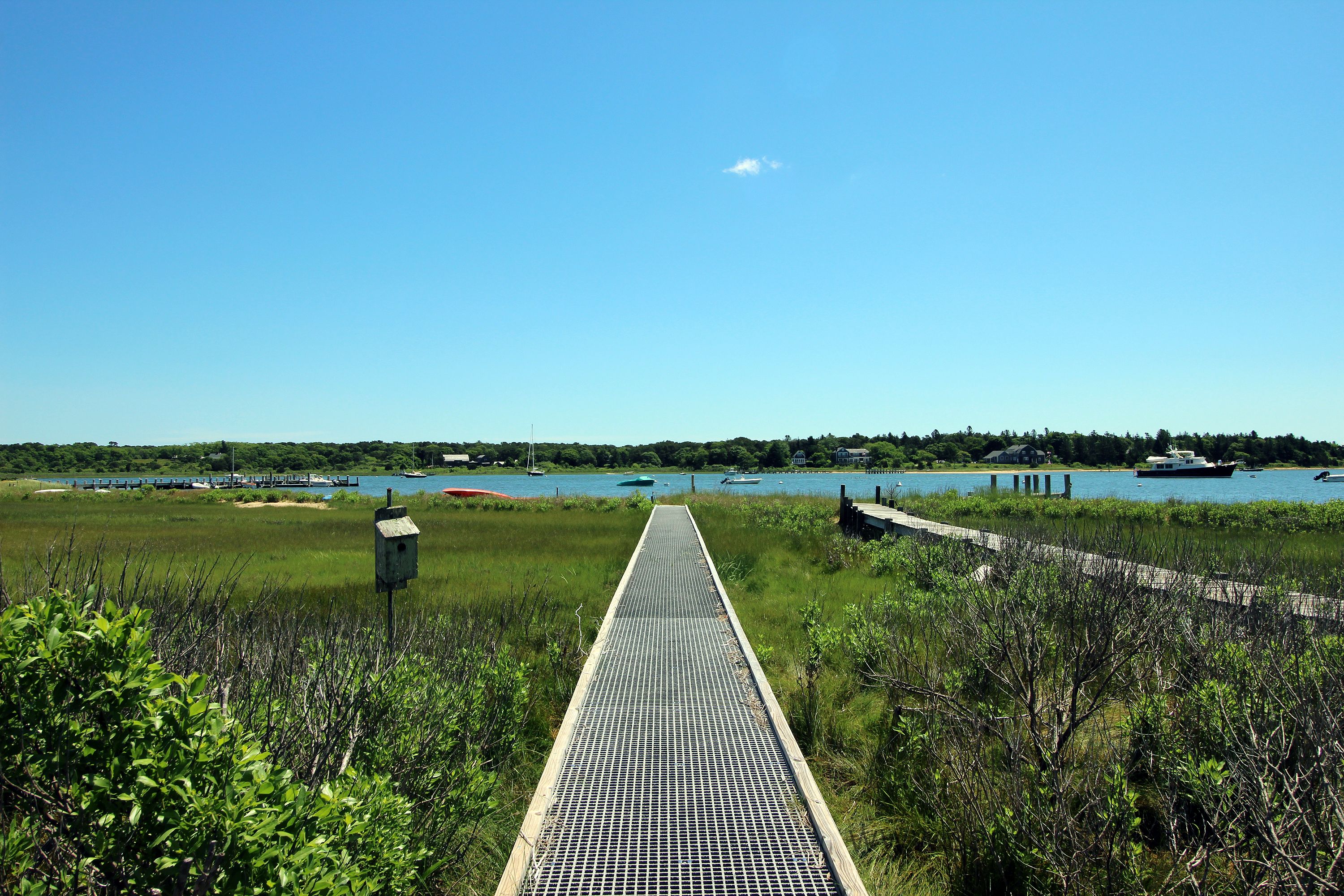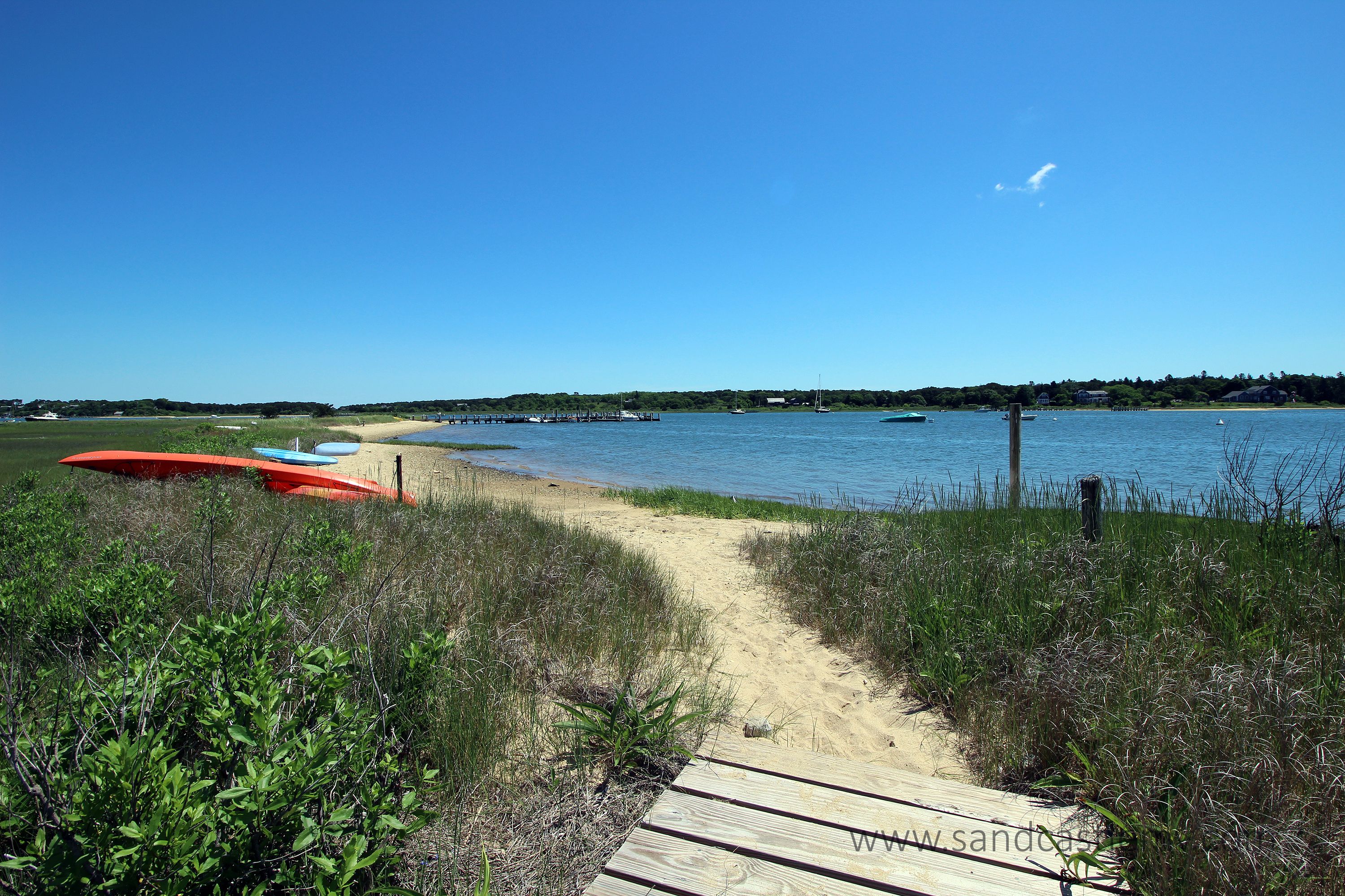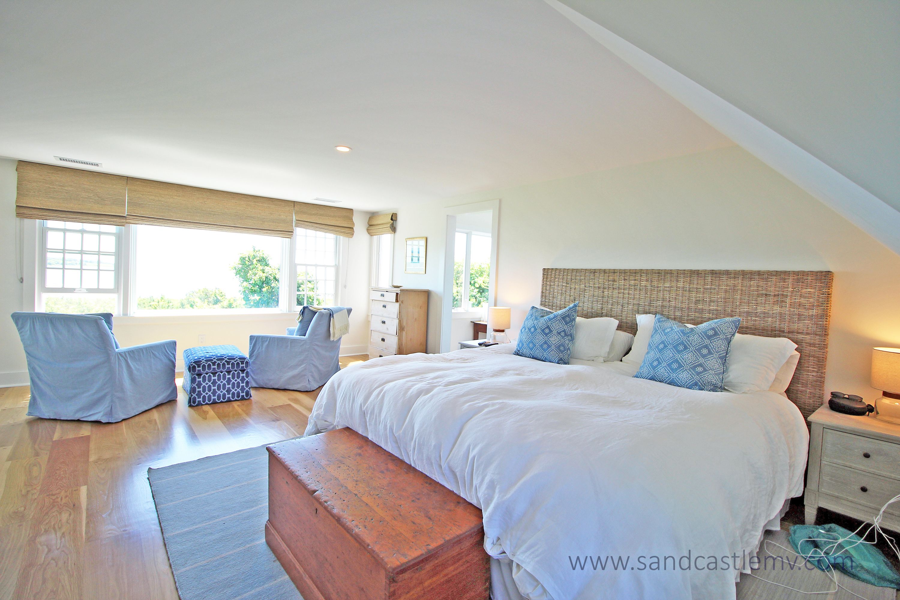 This is an amazing spot for your Vineyard Vacation! It is located on Katama Bay with beautiful views of the bay from most rooms of the house. The house has an open concept kitchen/living space with another living room and separate dining area overlooking the bay. The main floor also has as an en-suite bedroom. The 2nd Floor has two additional bedrooms both with waterviews and renovated bathrooms. The lower level has an addition bedroom and bathroom. The separate Carriage House has a 2nd floor bedroom with 4 twins and a full bathroom. The house an association dock that can be used for pick up and drop off only. The path to the association beach runs along the side of the house for beach access for the association.
