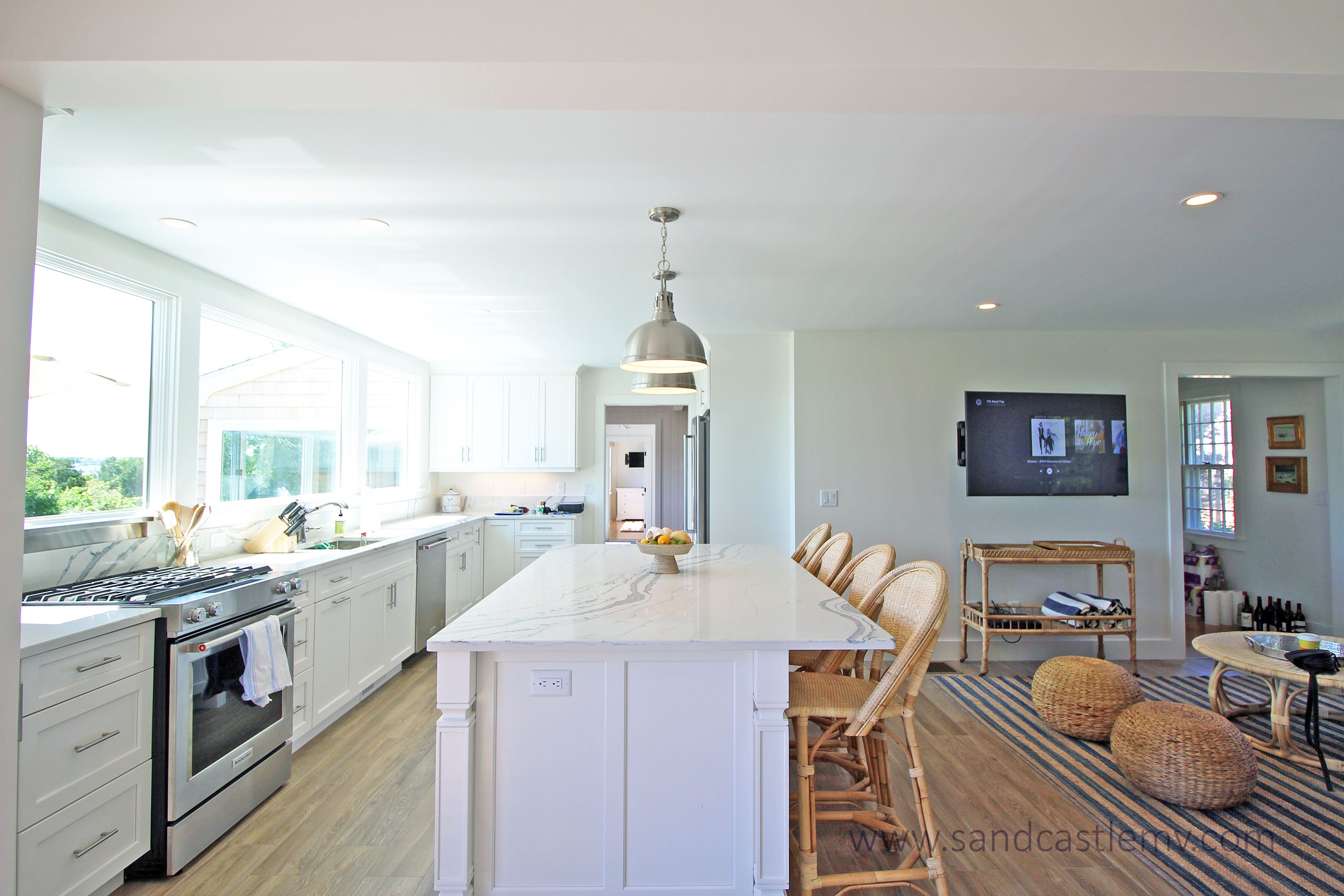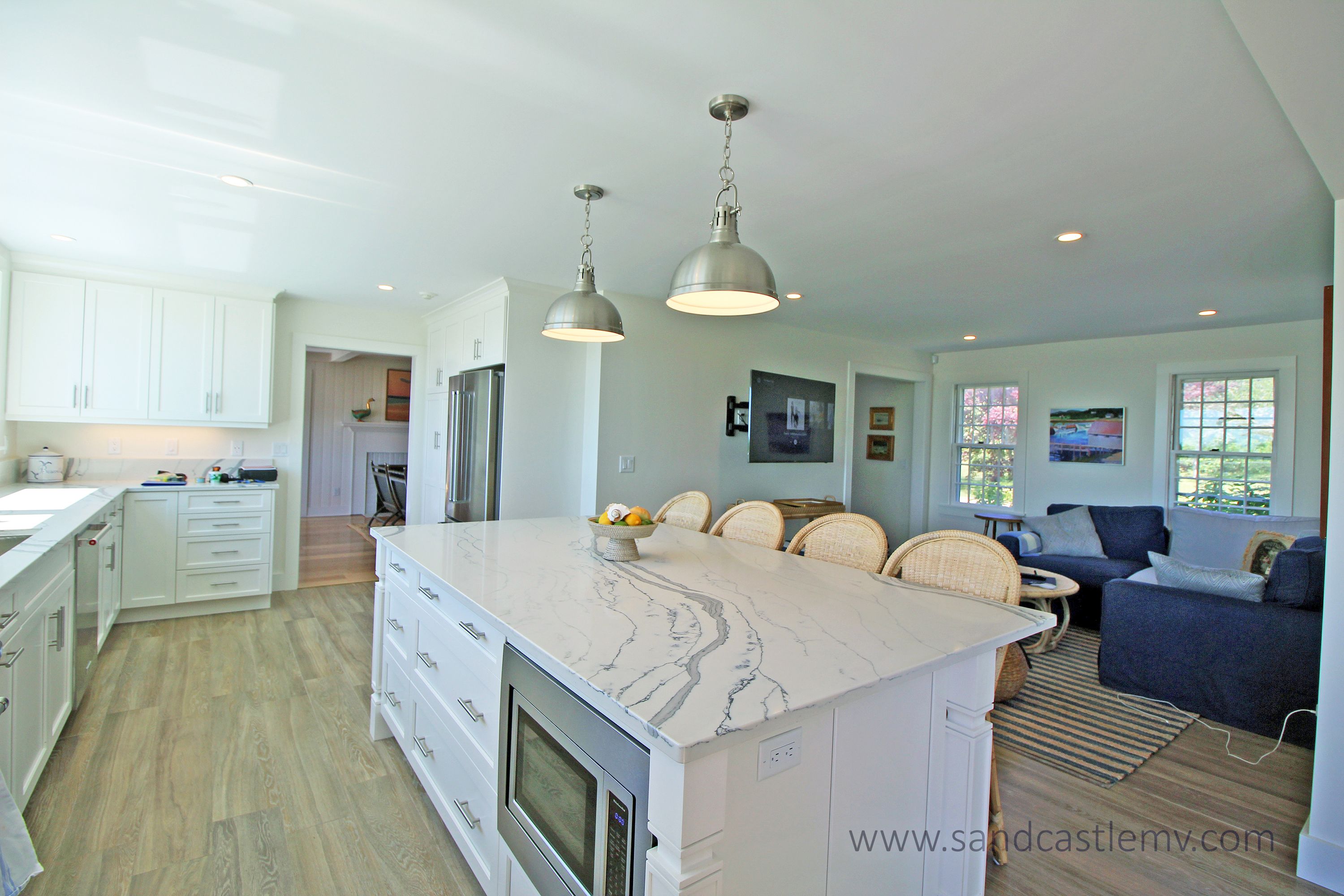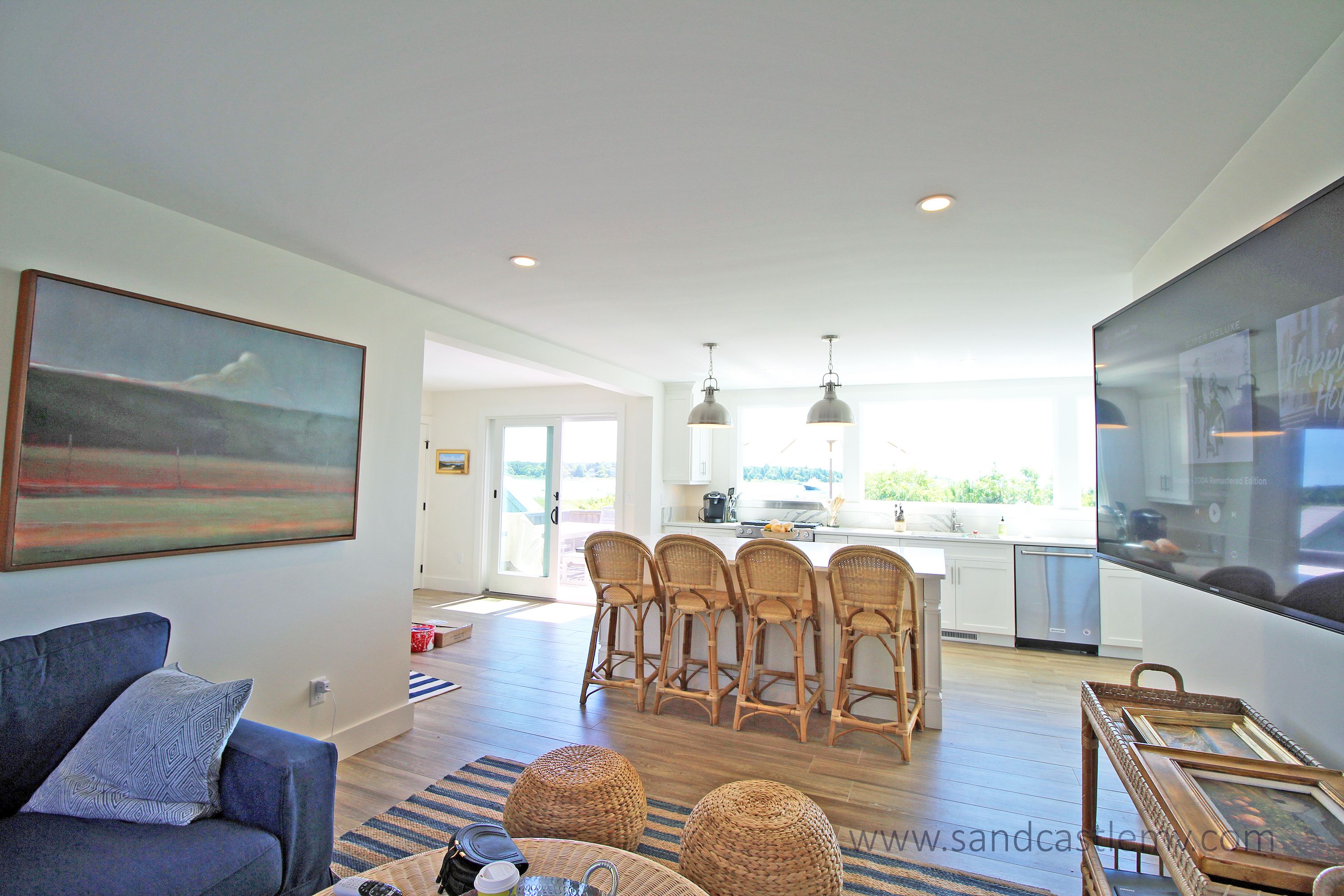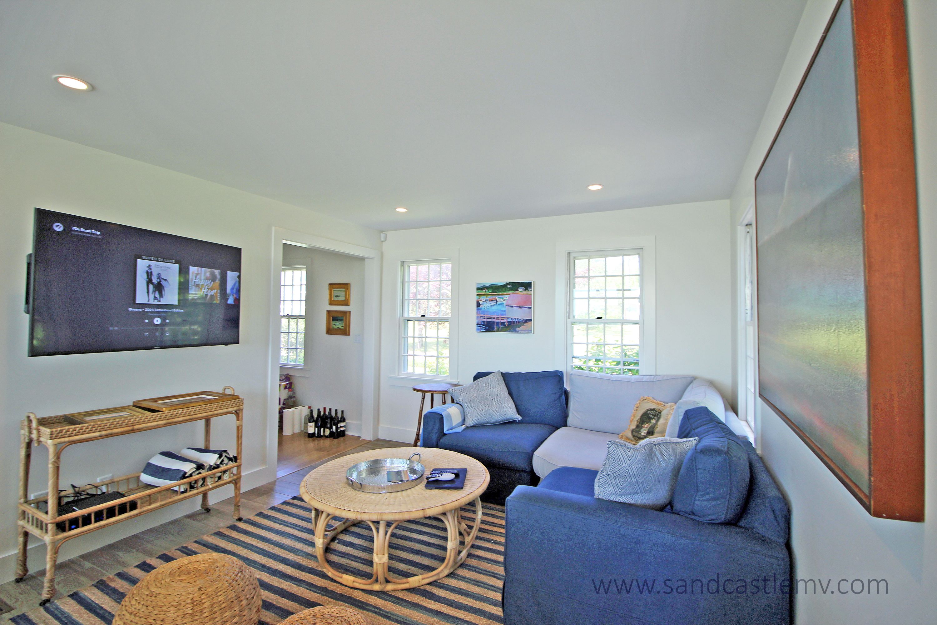This is an amazing spot for your Vineyard Vacation! It is located on Katama Bay with beautiful views of the bay from most rooms of the house. The house has an open concept kitchen/living space with another living room and separate dining area overlooking the bay. The main floor also has as an en-suite bedroom. The 2nd Floor has two additional bedrooms both with waterviews and renovated bathrooms. The lower level has an addition bedroom and bathroom. The separate Carriage House has a 2nd floor bedroom with 4 twins and a full bathroom. The house an association dock that can be used for pick up and drop off only. The path to the association beach runs along the side of the house for beach access for the association.