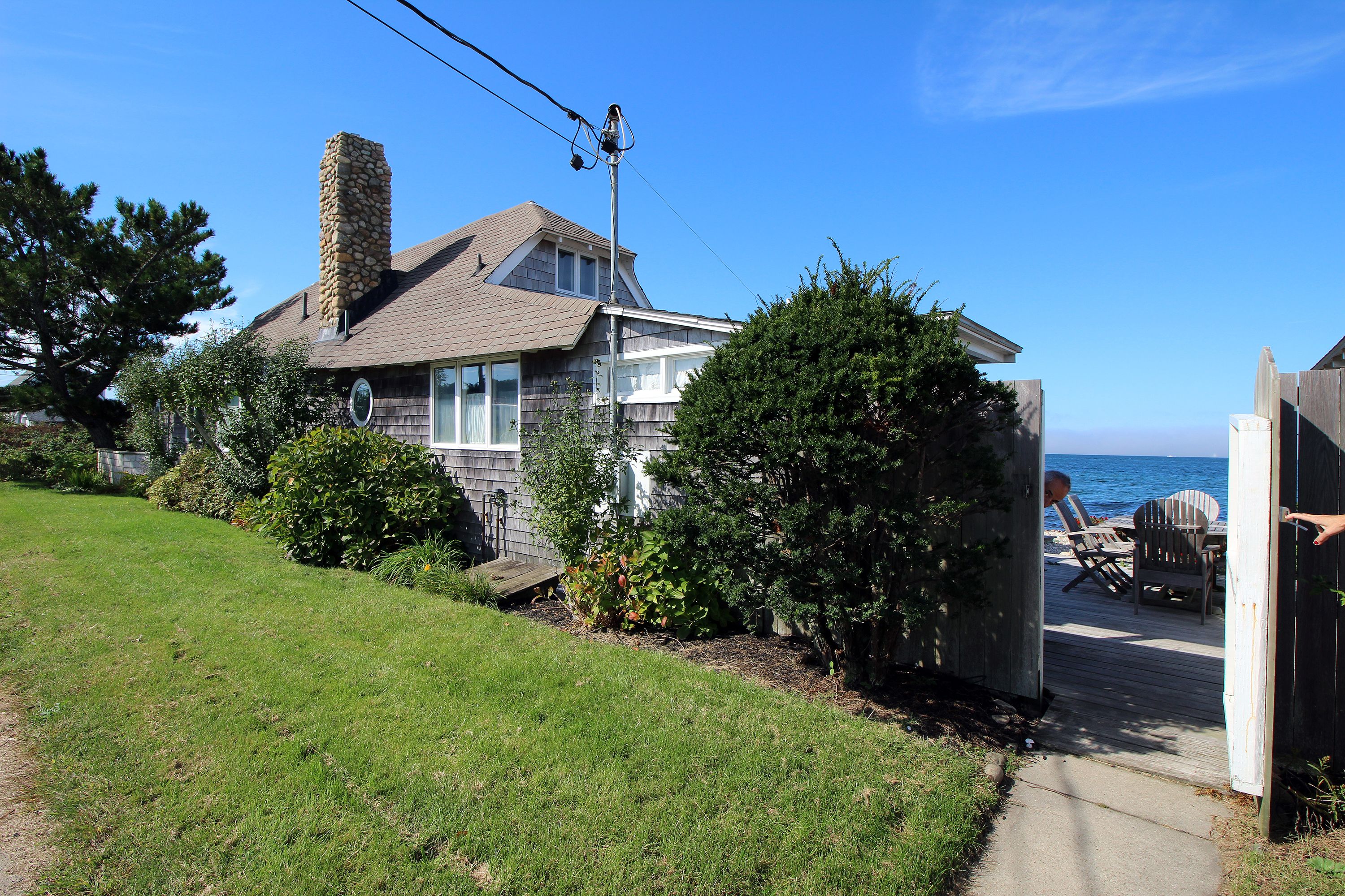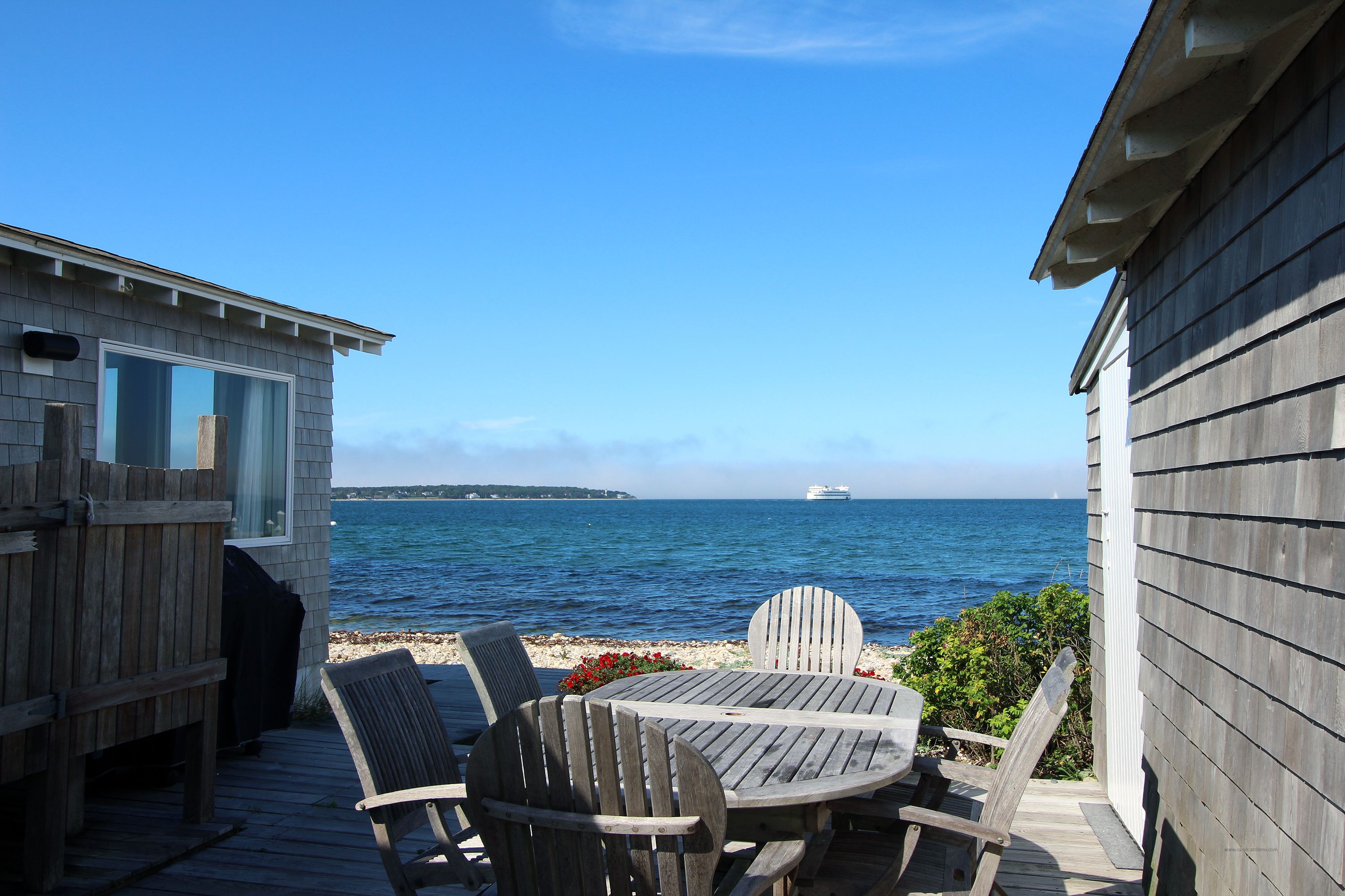 Charming waterfront cottage on the Vineyard Sound! Enjoy the ever changing views from almost every room. Out front of the home is a private rocky beach, we recommend wearing shoes to swim. Sit on the deck and watch the ferries and sailboats pass by. Toss in a line and catch dinner right from the home. Ideally located on East Chop a short distance to Oak Bluffs harbor and town.