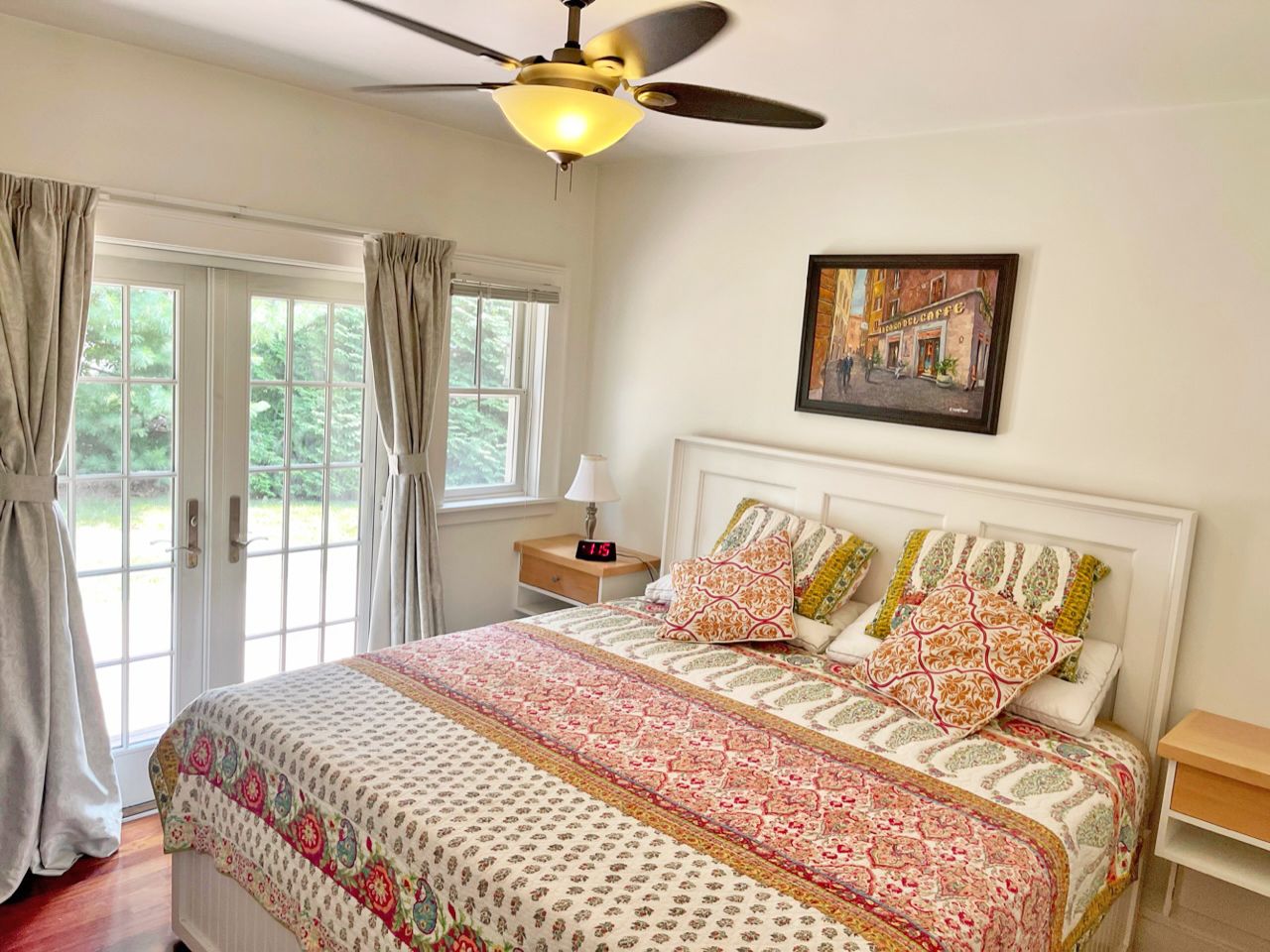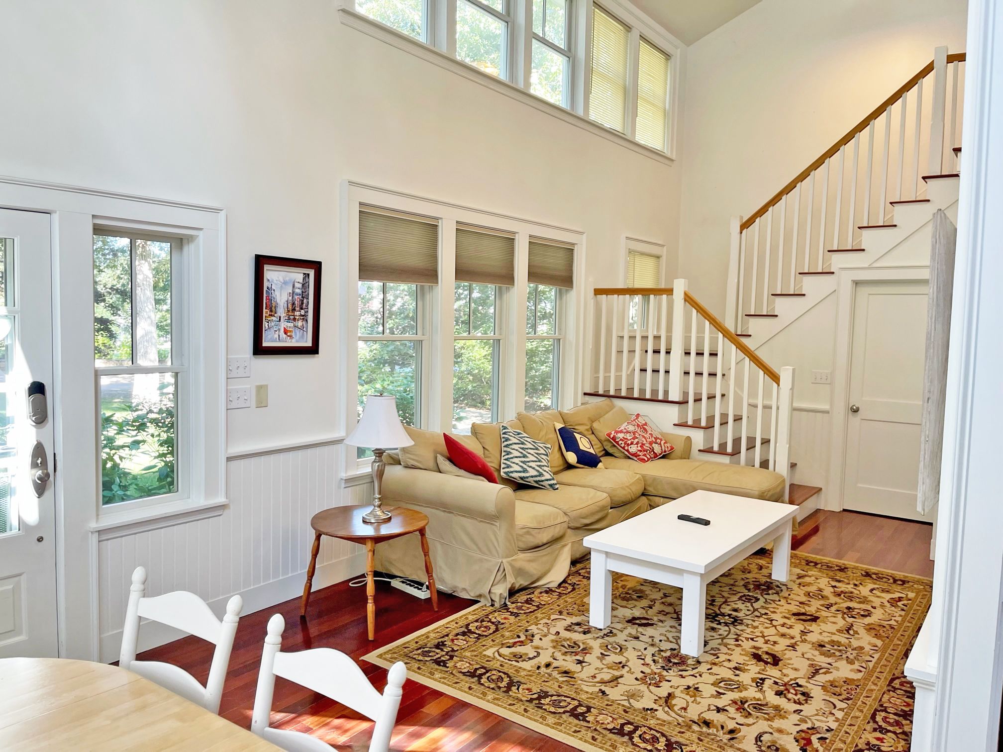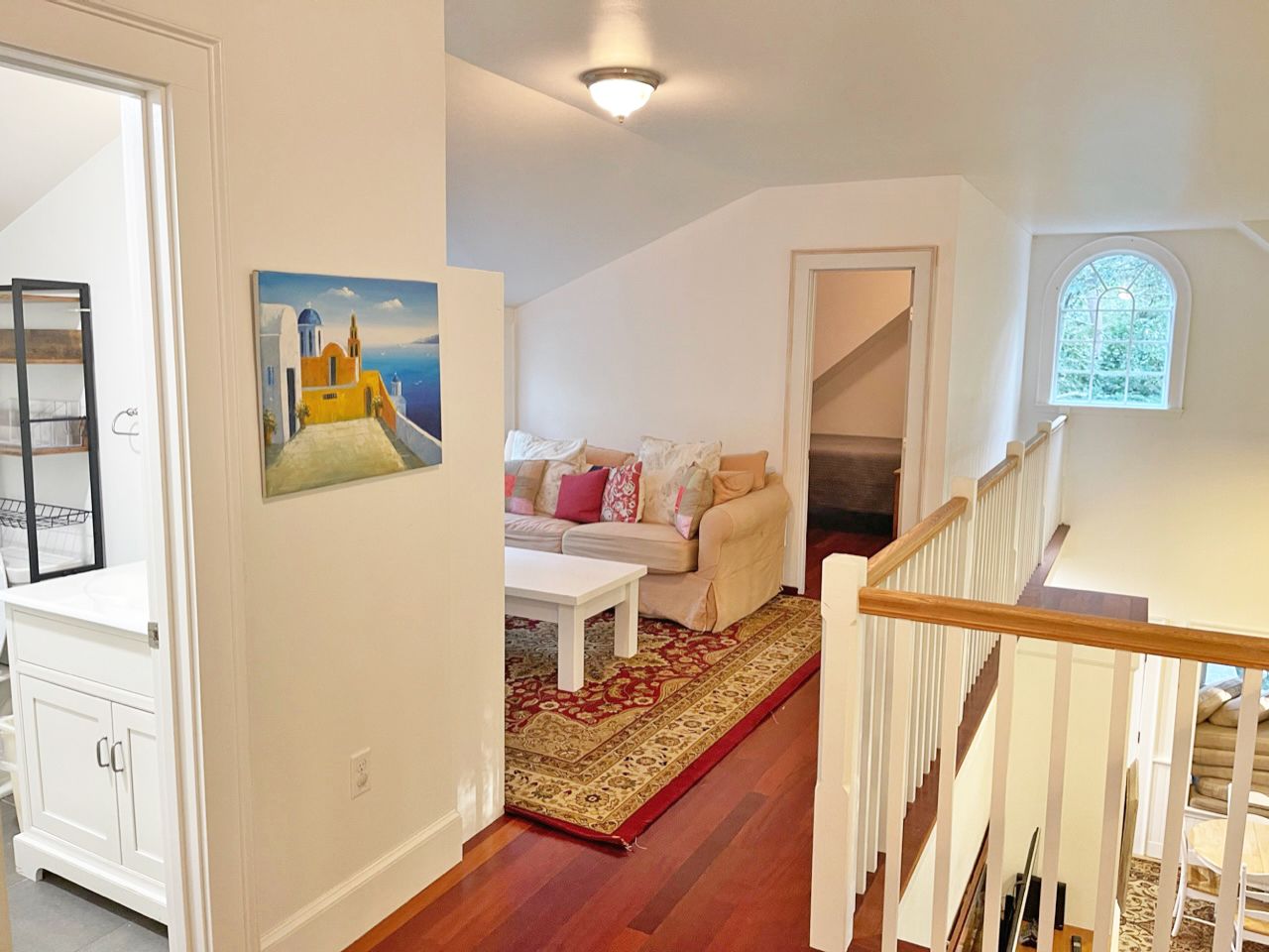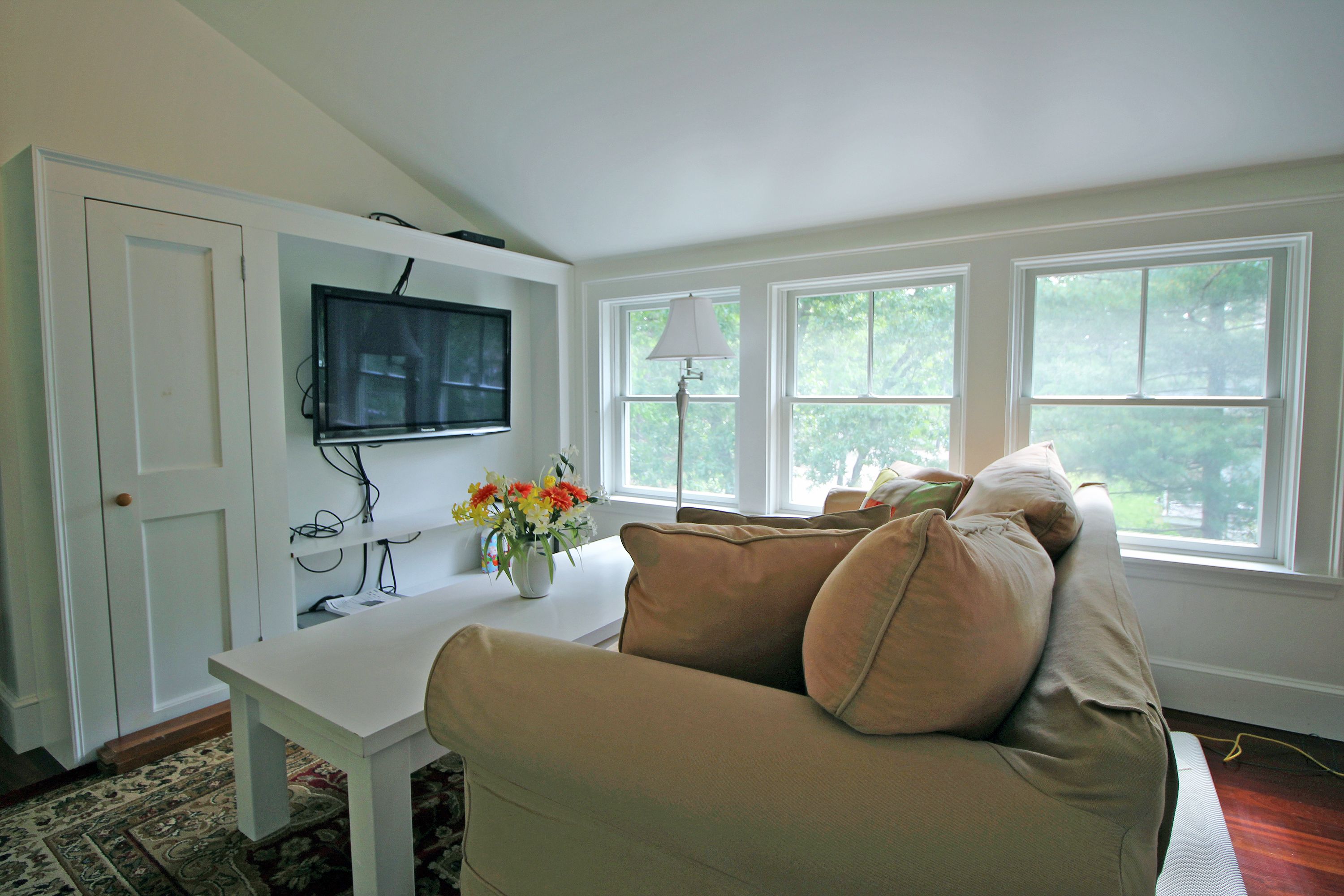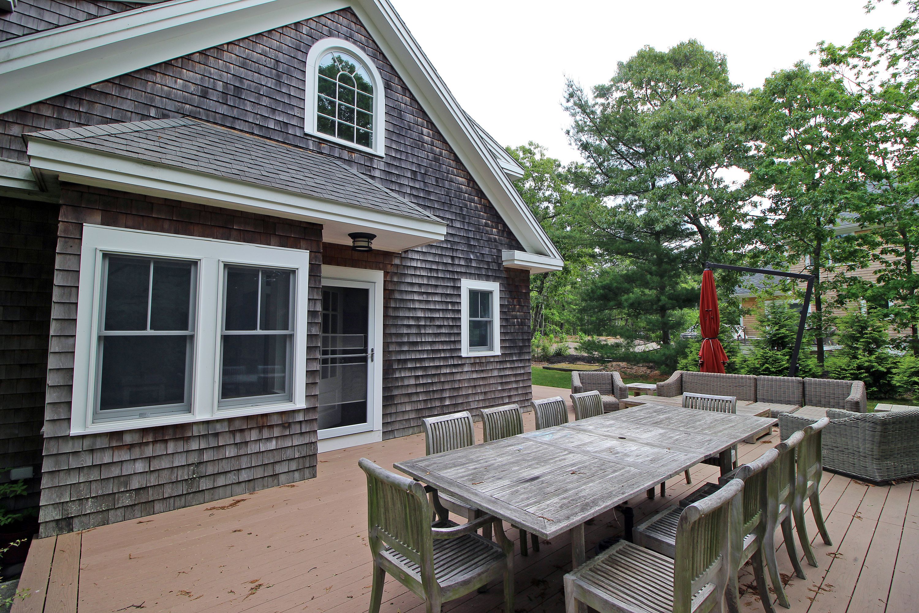 Beautiful three bedroom cottage on a quiet side street in East Chop. Located about one mile to Circuit Ave. is this updated four bedroom home with air conditioning. The home is 3/4 of a mile to Jetty Beach on East Chop. Upon entering you are welcomed into a bright living room and open kitchen with bar seating. There is one king bedroom on the first floor and bath and two additional bedrooms that share a bath on the second floor. The fourth bedroom is in the lower level and has two full size beds. Upstairs there is TV area. This home is great for a small family or group. Outside there is a large dining table and comfortable seating area.