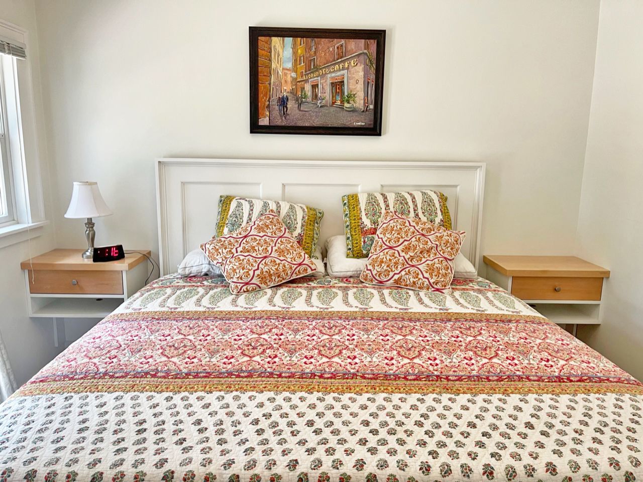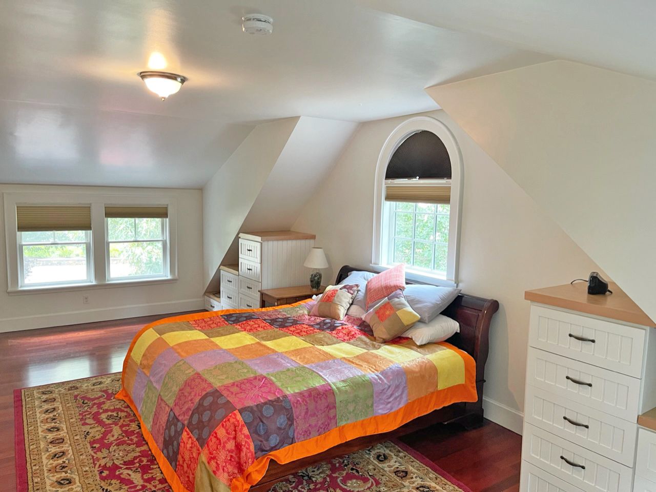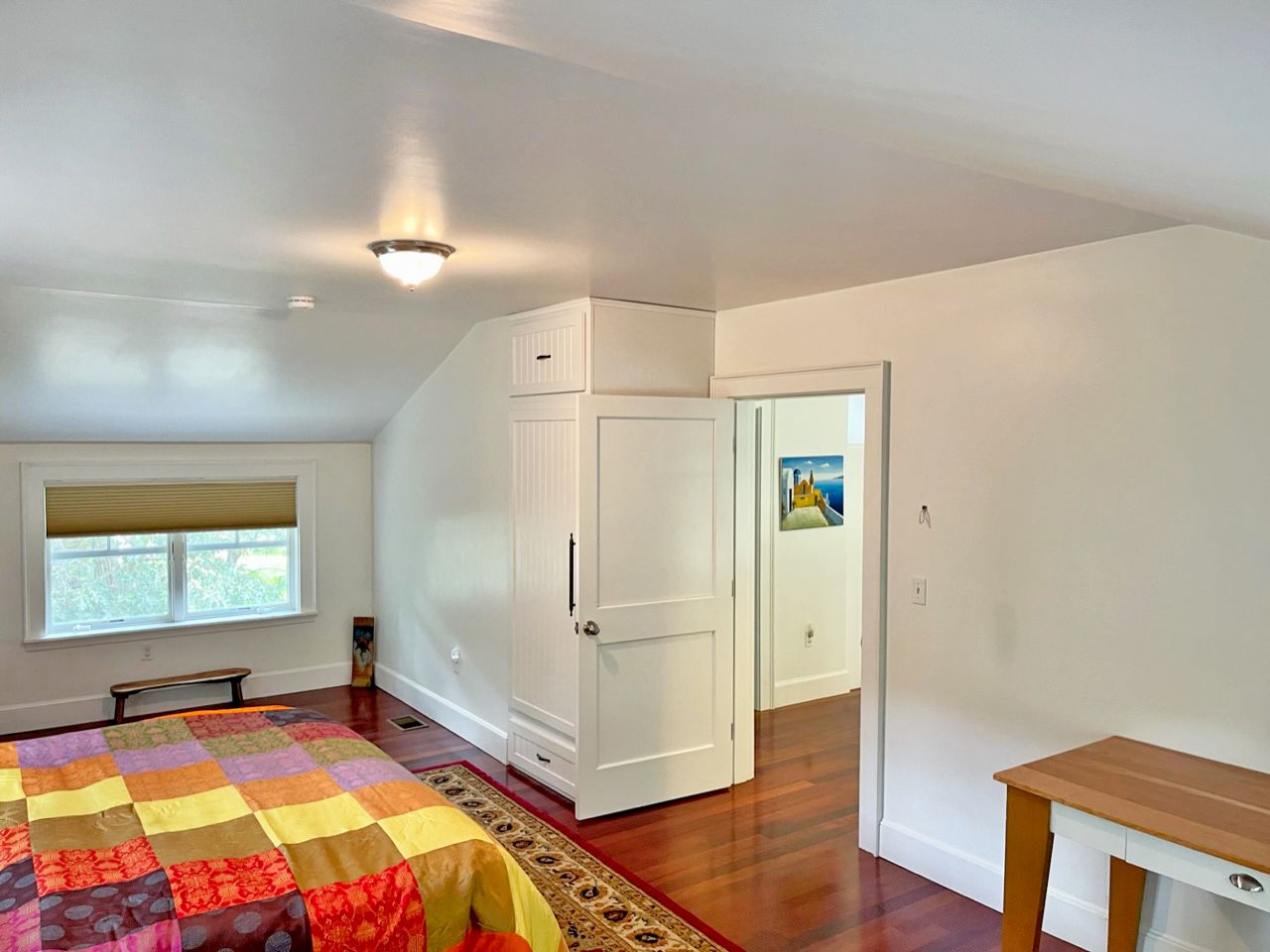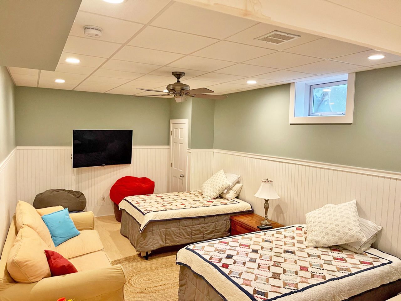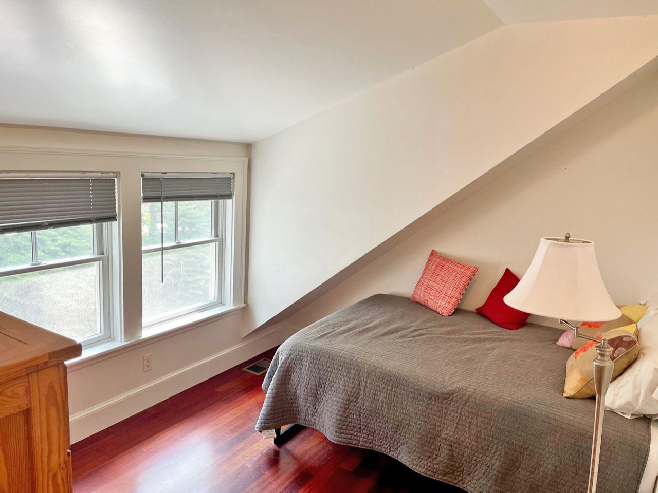 Beautiful three bedroom cottage on a quiet side street in East Chop. Located about one mile to Circuit Ave. is this updated four bedroom home with air conditioning. The home is 3/4 of a mile to Jetty Beach on East Chop. Upon entering you are welcomed into a bright living room and open kitchen with bar seating. There is one king bedroom on the first floor and bath and two additional bedrooms that share a bath on the second floor. The fourth bedroom is in the lower level and has two full size beds. Upstairs there is TV area. This home is great for a small family or group. Outside there is a large dining table and comfortable seating area.