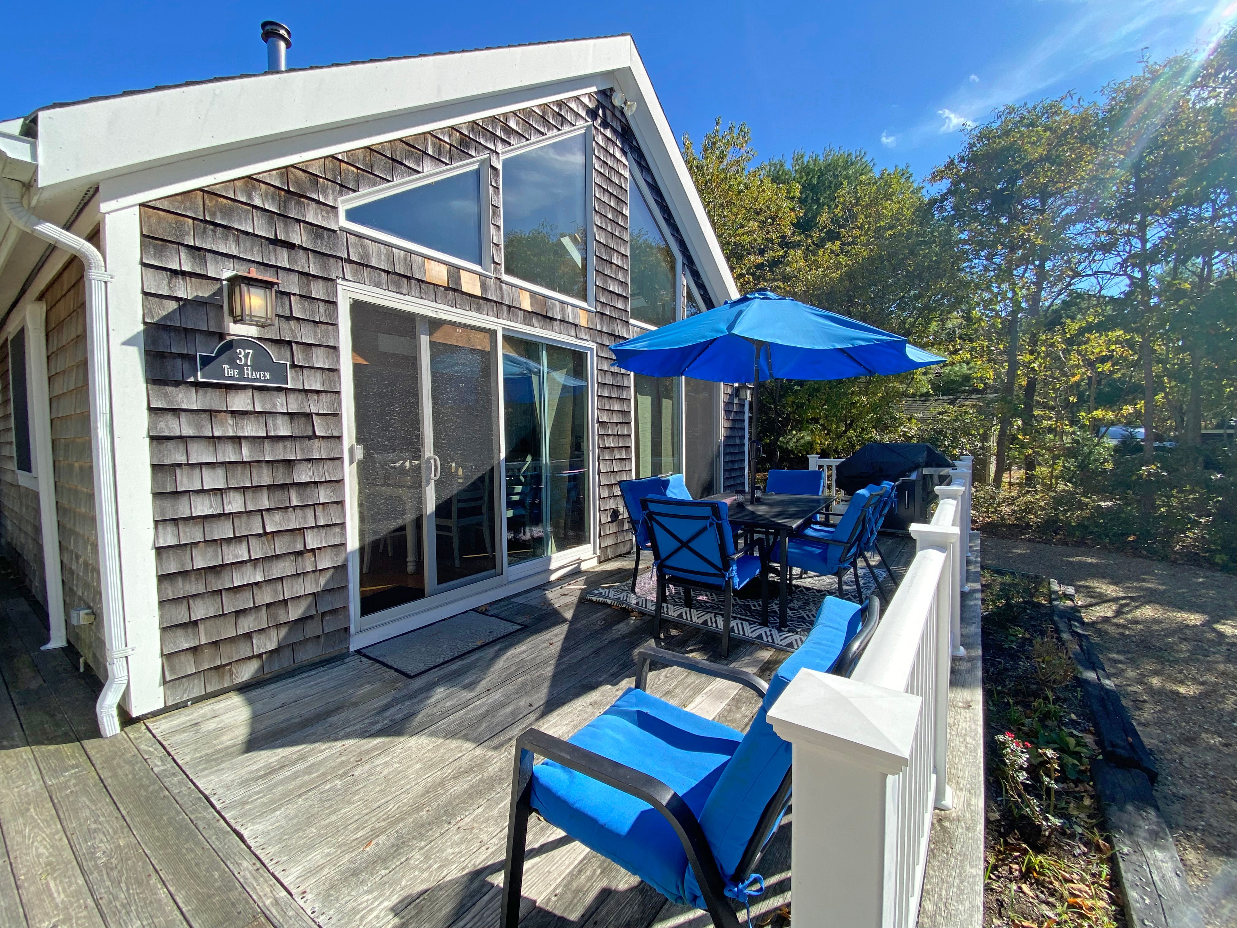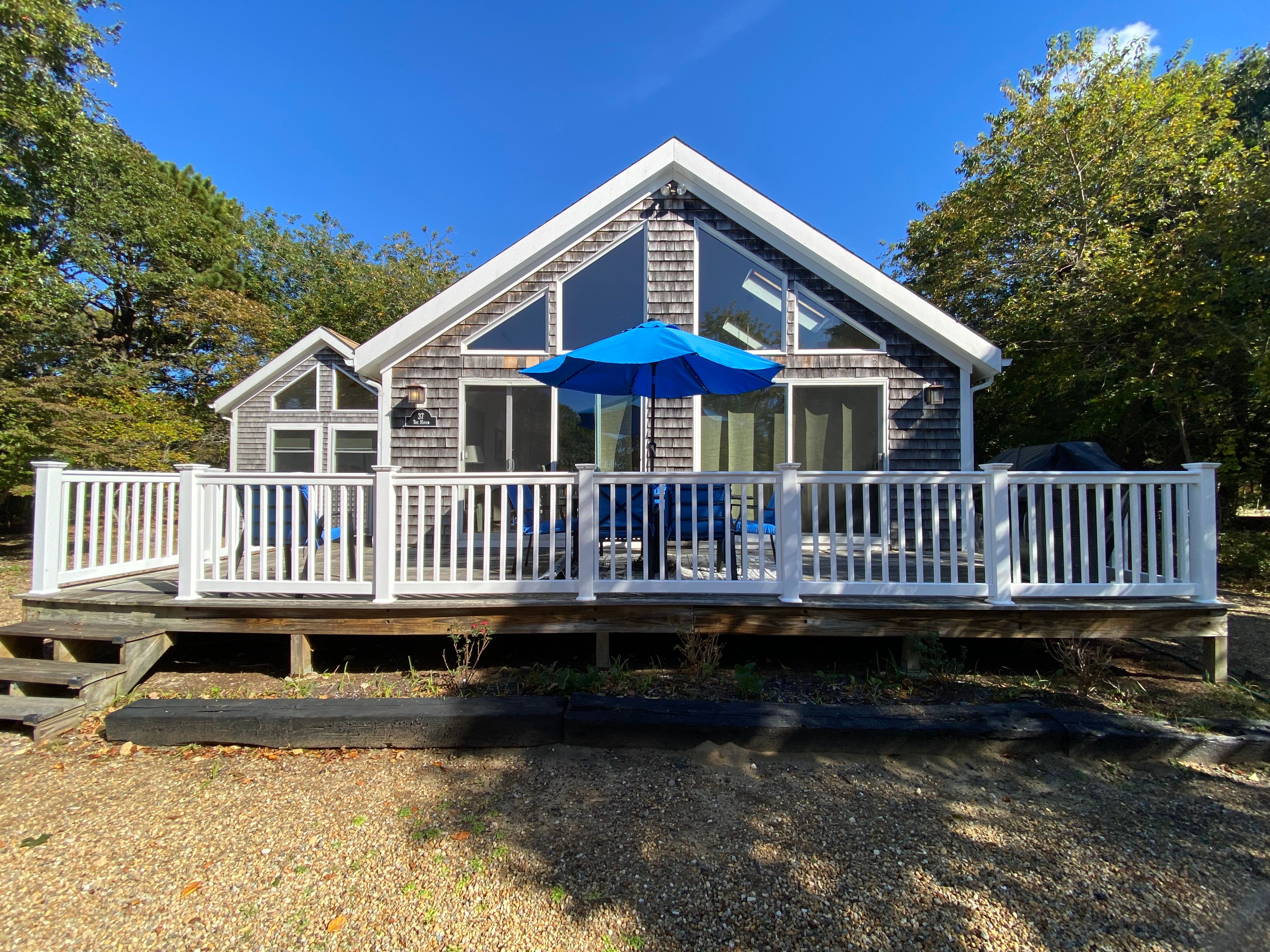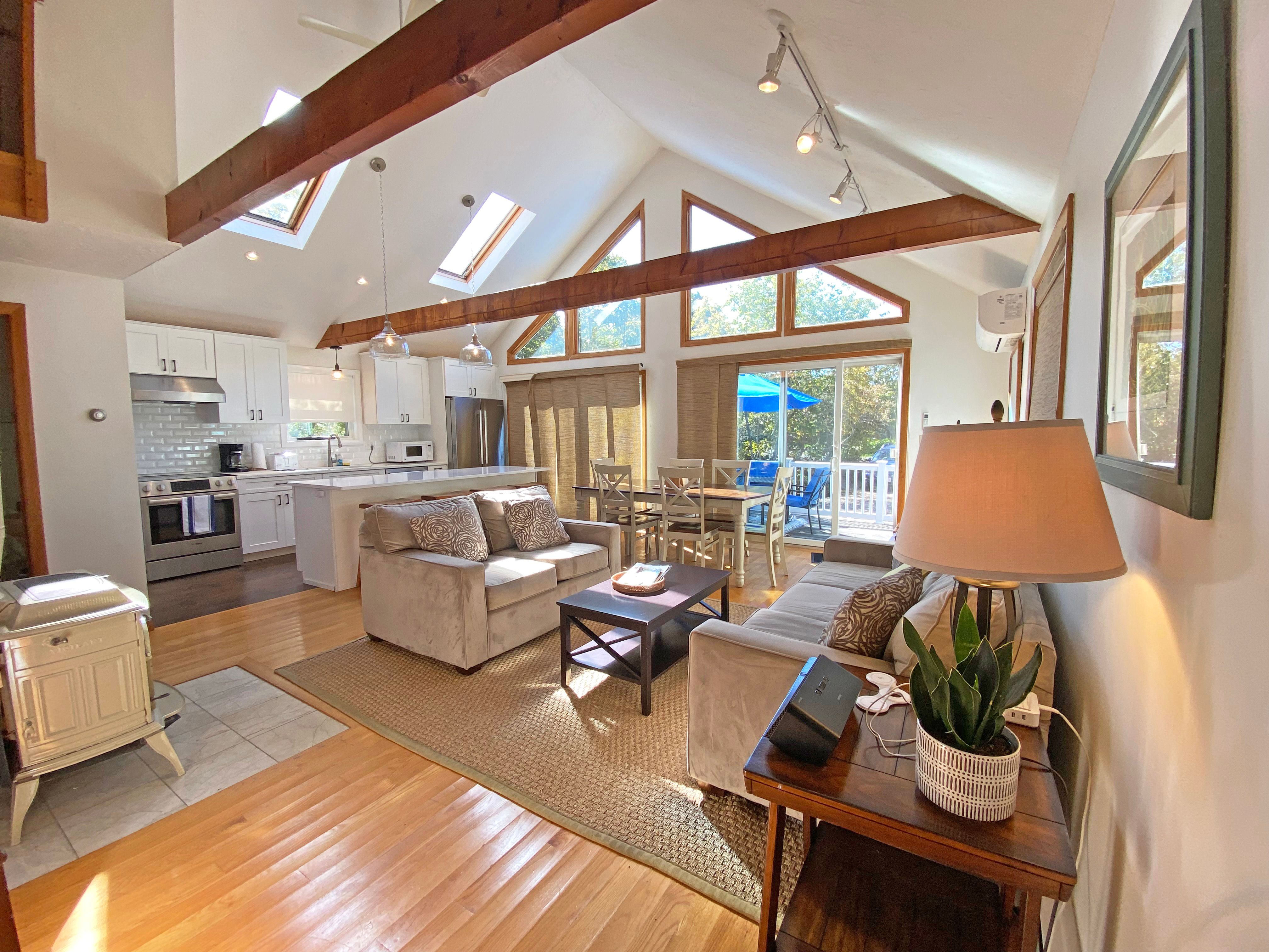 Contemporary four bedroom Katama home in the Edgartown Estates neighborhood. Located 2 miles to South Beach and 1 mile +/- to downtown Edgartown. Newly renovated kitchen.
