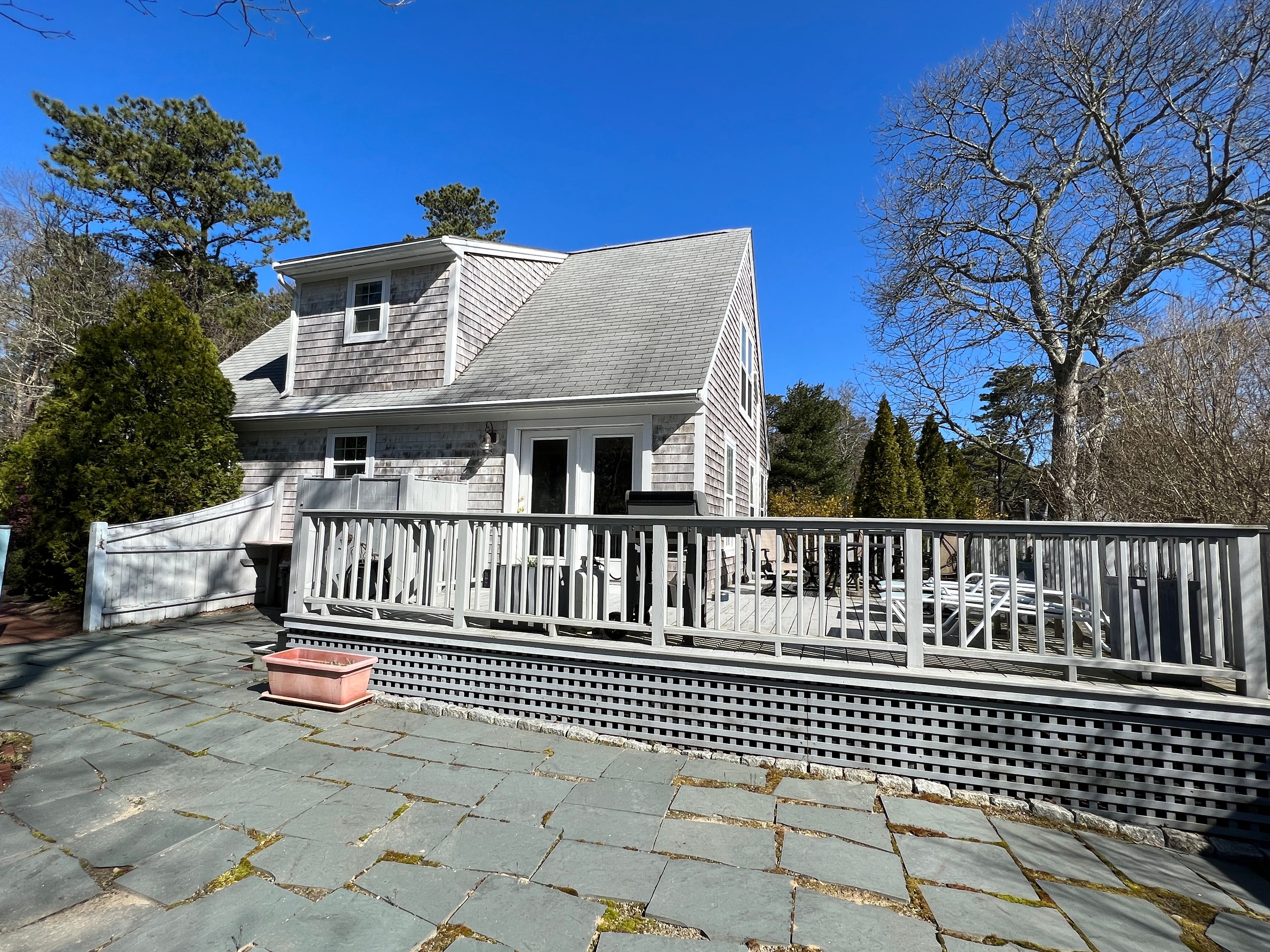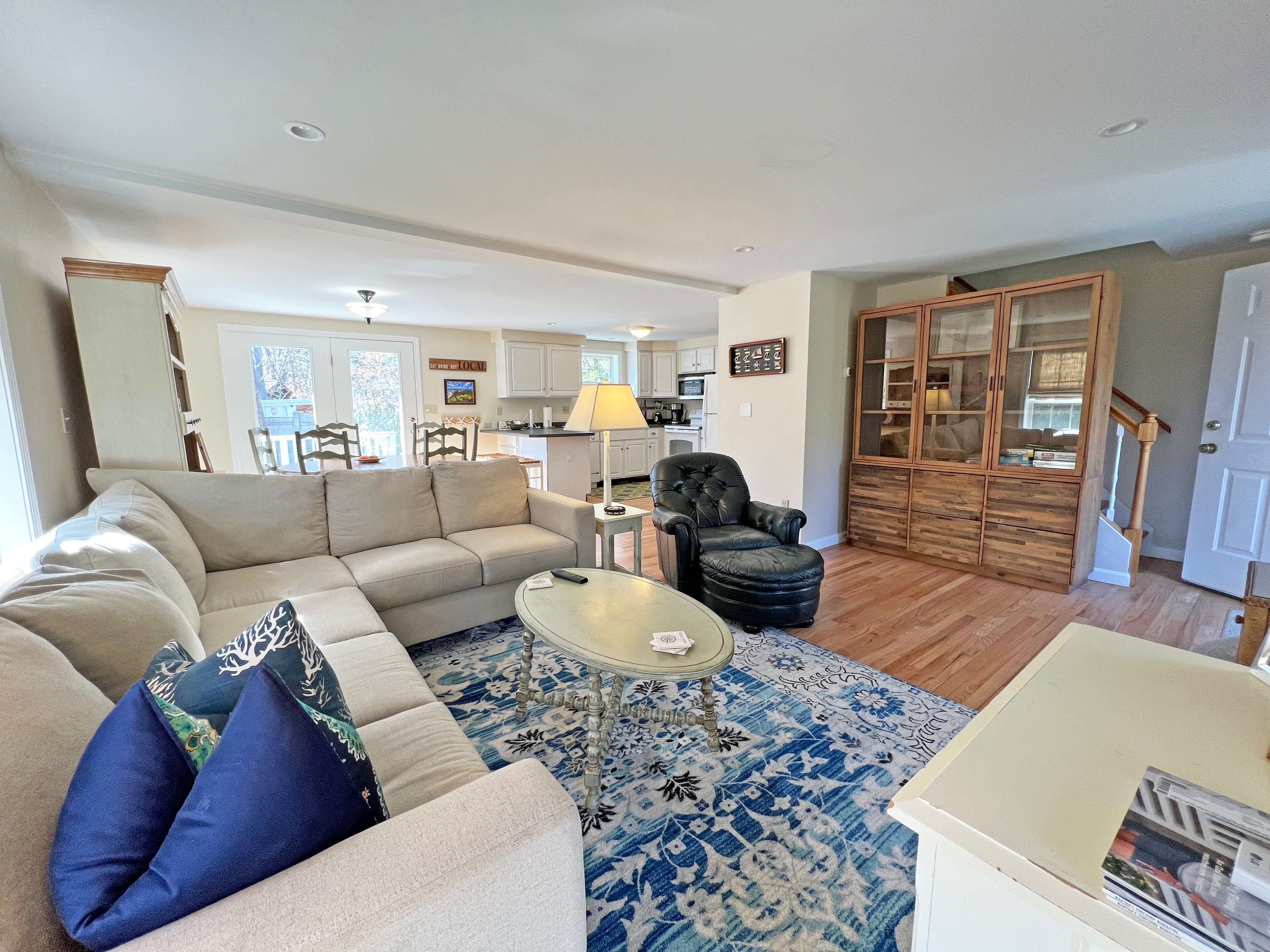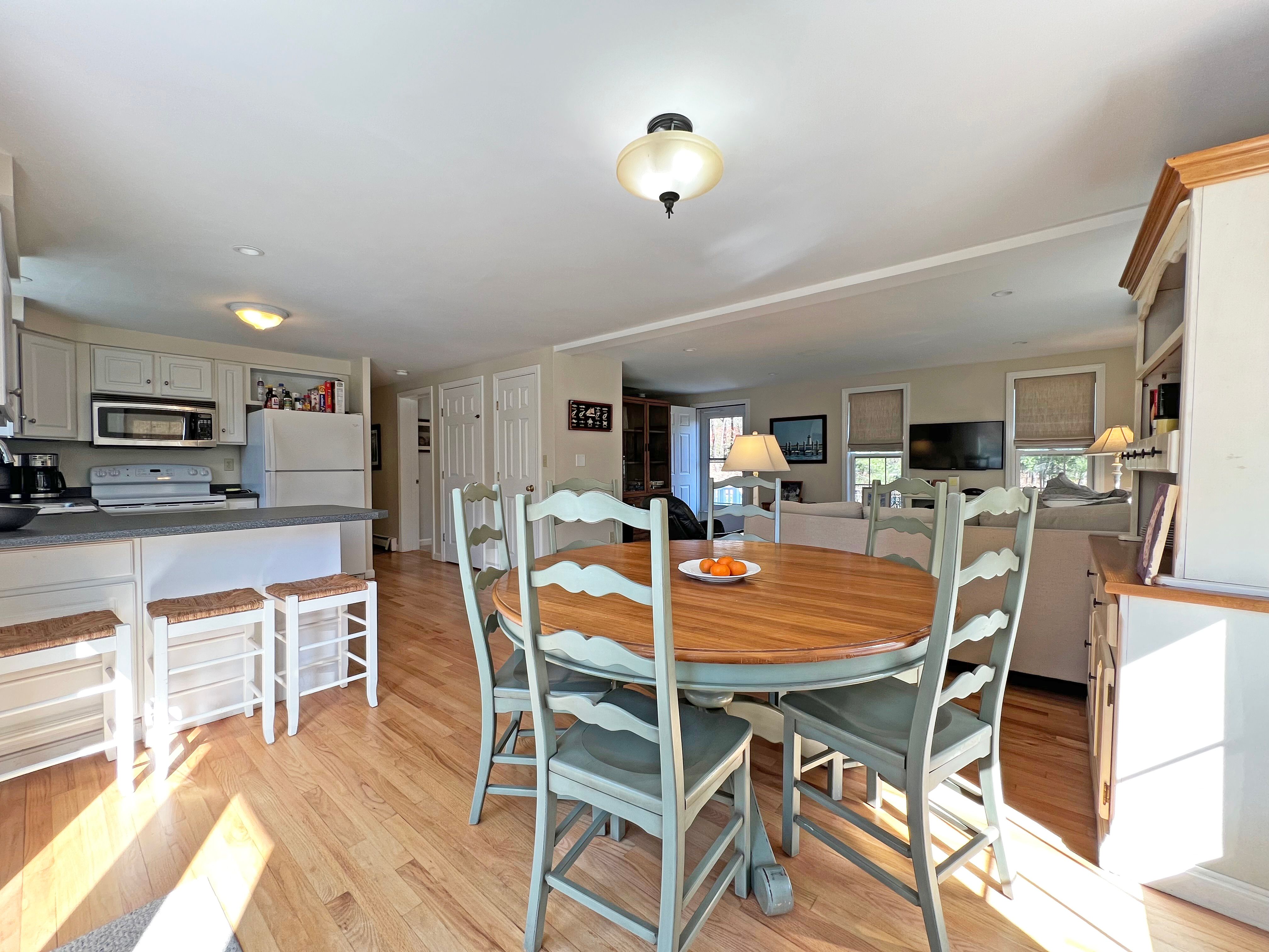 Walk into this open concept kitchen, dining and living room. There is a nice deck and patio off the dining area and a screened porch at the other end of the home. There is a bedroom and full bath on the main level. There are two large bedrooms that share a full bathroom on the second floor. The house is close to town and also has easy access to both Oak Bluffs and Edgartown.