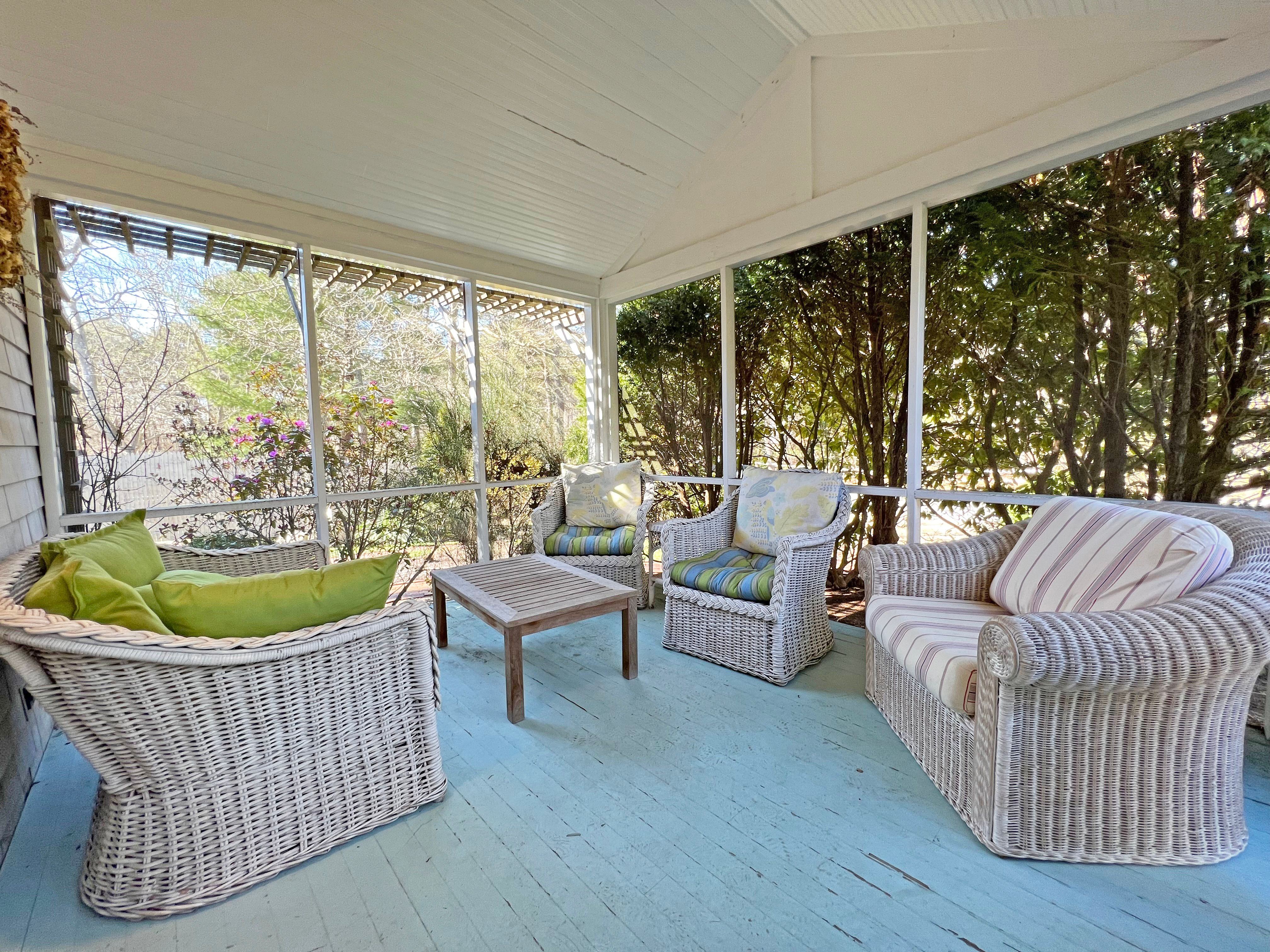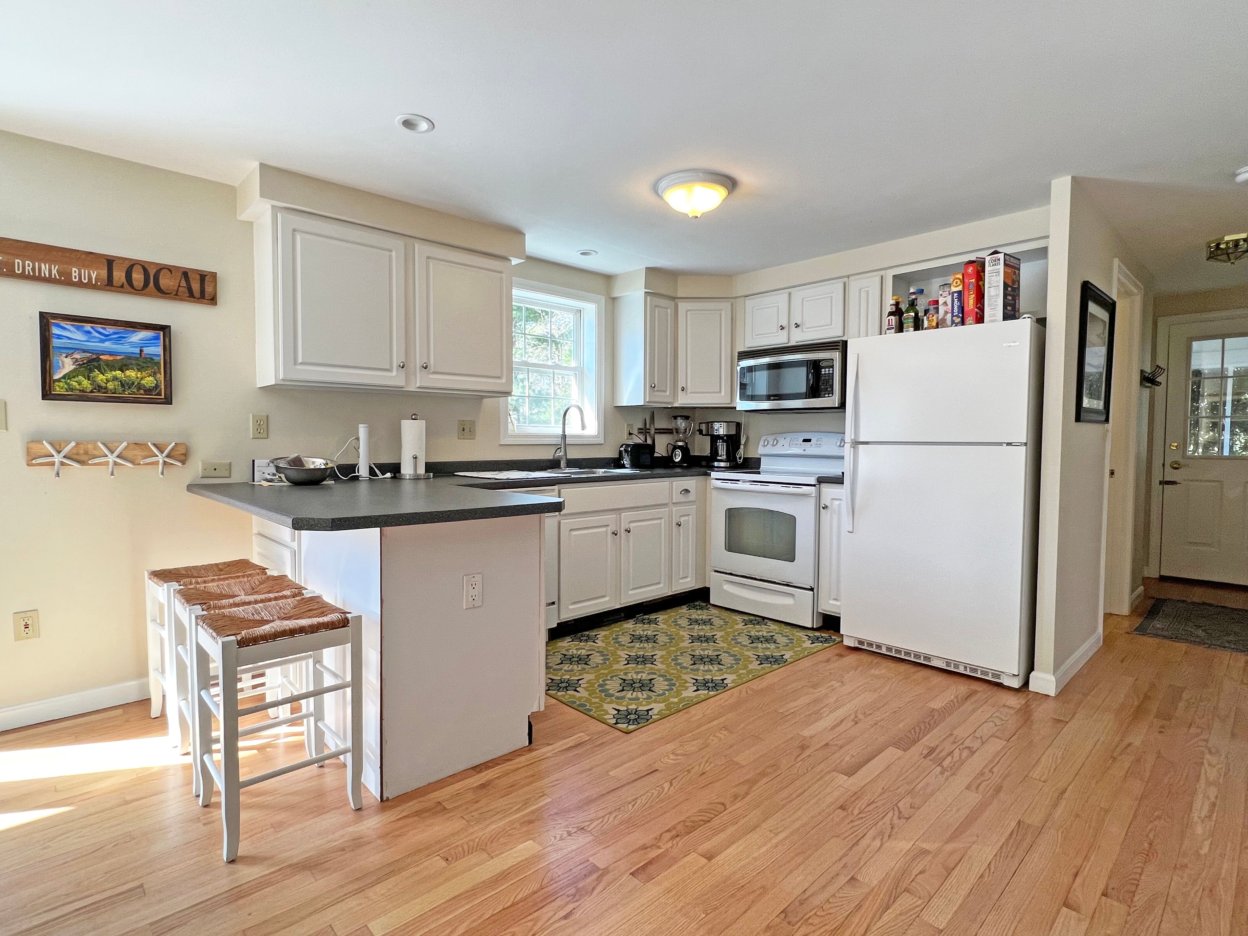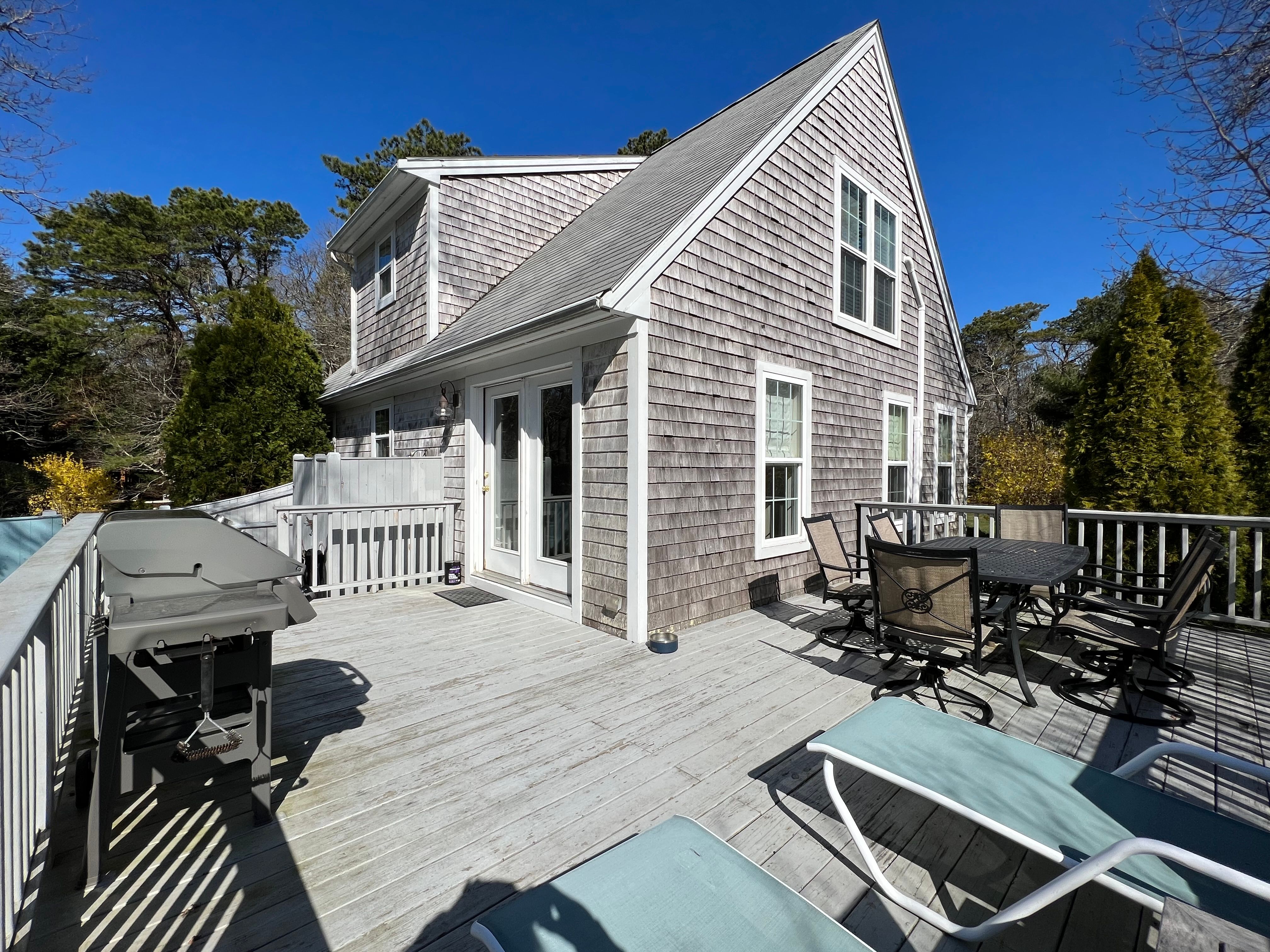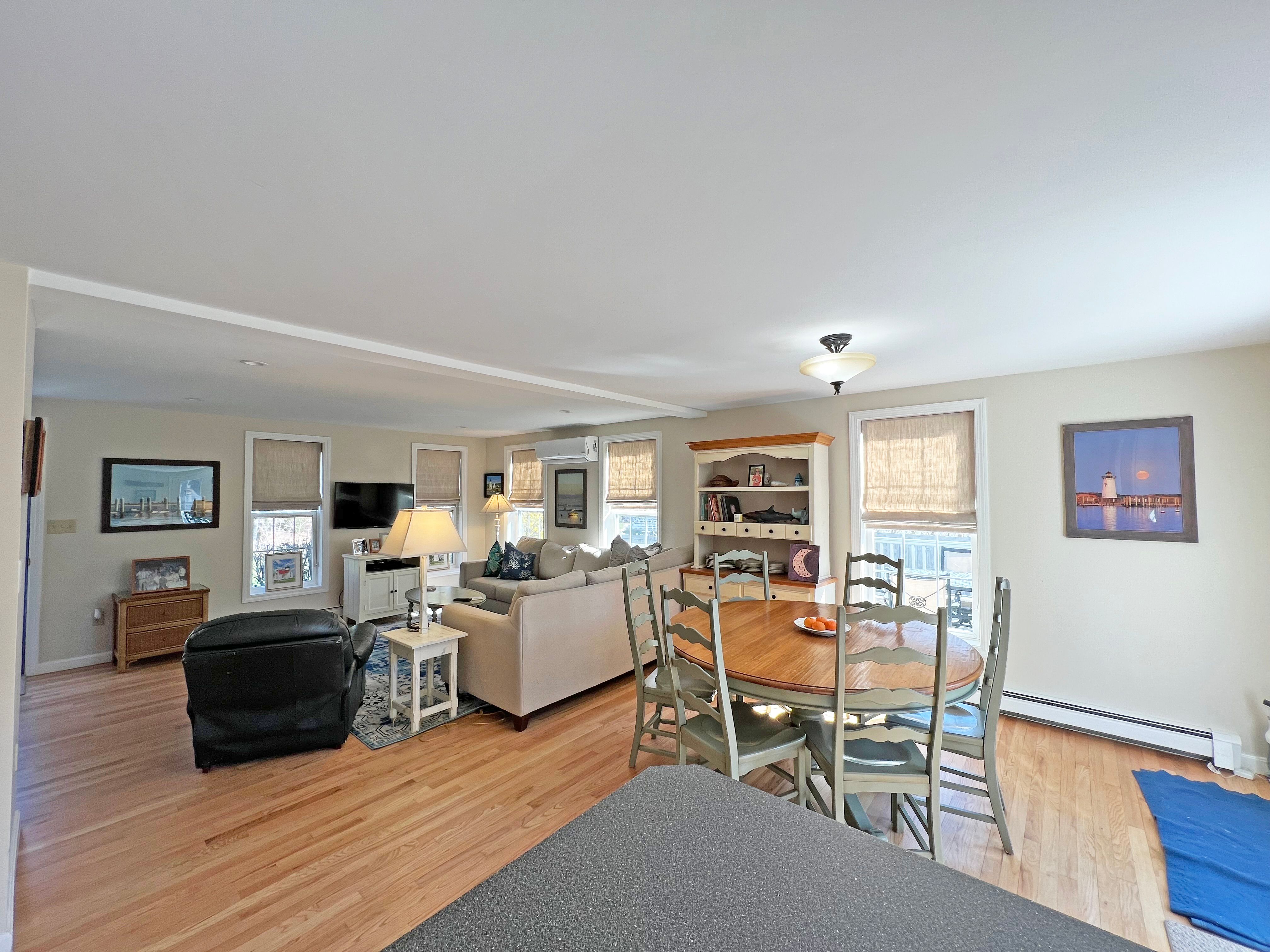 Walk into this open concept kitchen, dining and living room. There is a nice deck and patio off the dining area and a screened porch at the other end of the home. There is a bedroom and full bath on the main level. There are two large bedrooms that share a full bathroom on the second floor. The house is close to town and also has easy access to both Oak Bluffs and Edgartown.