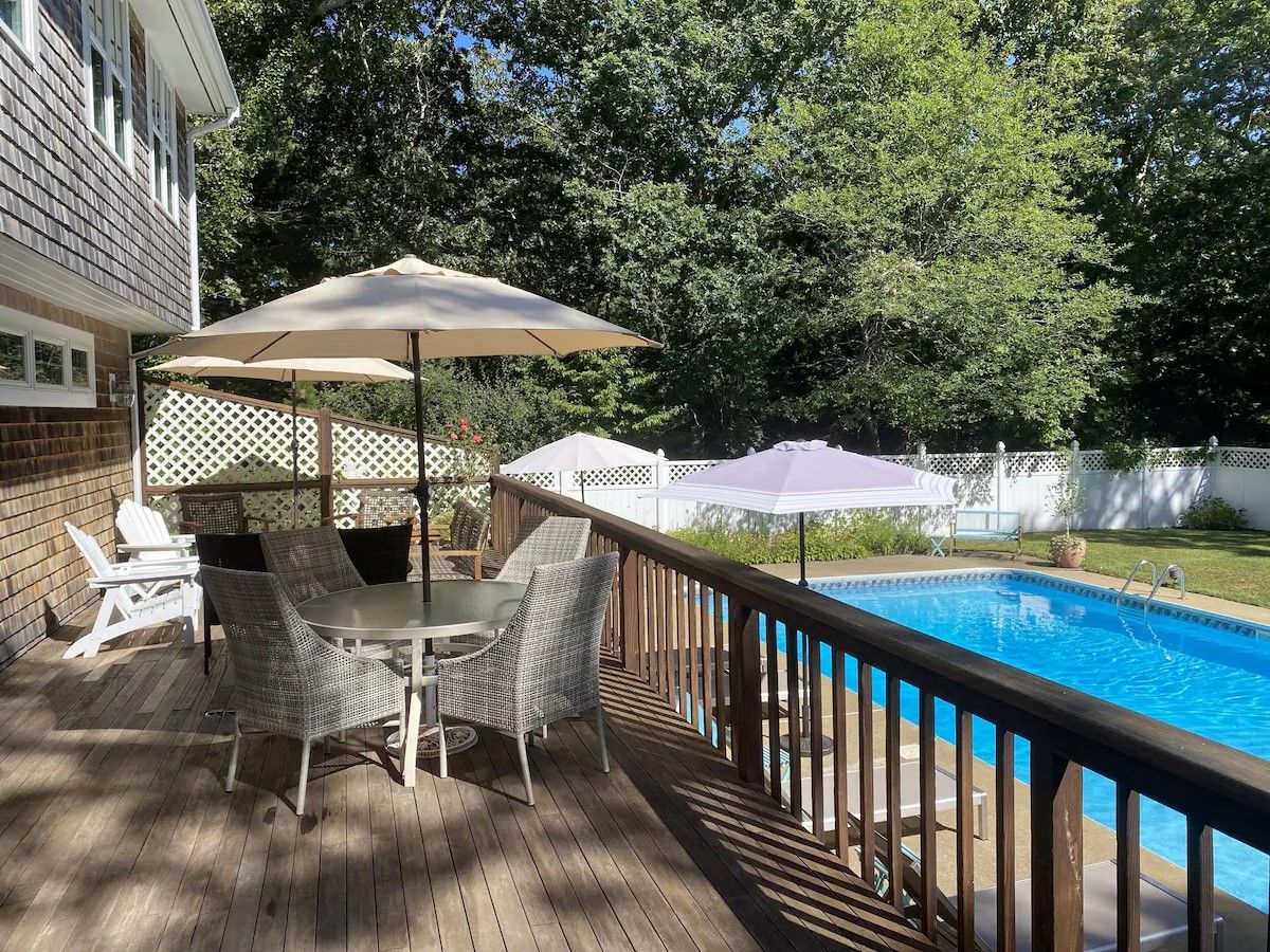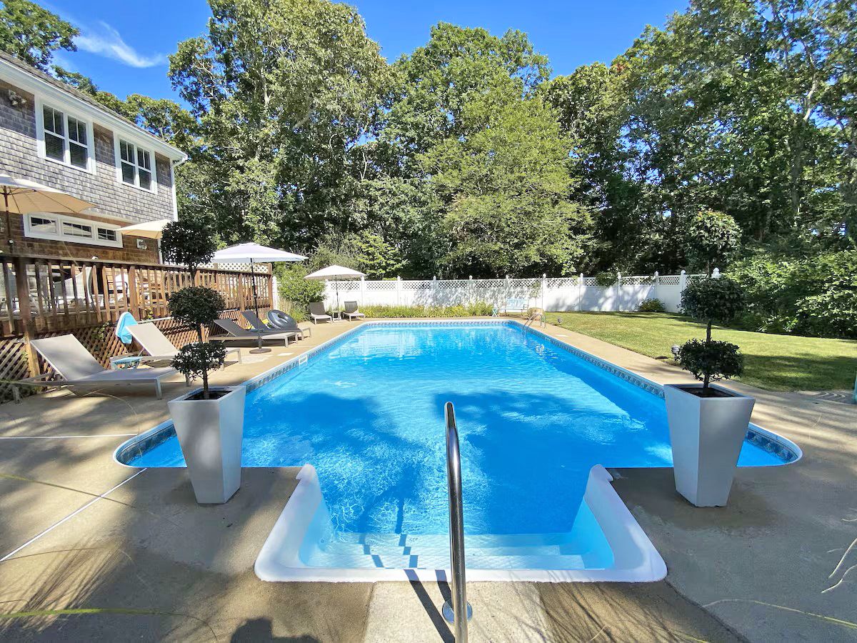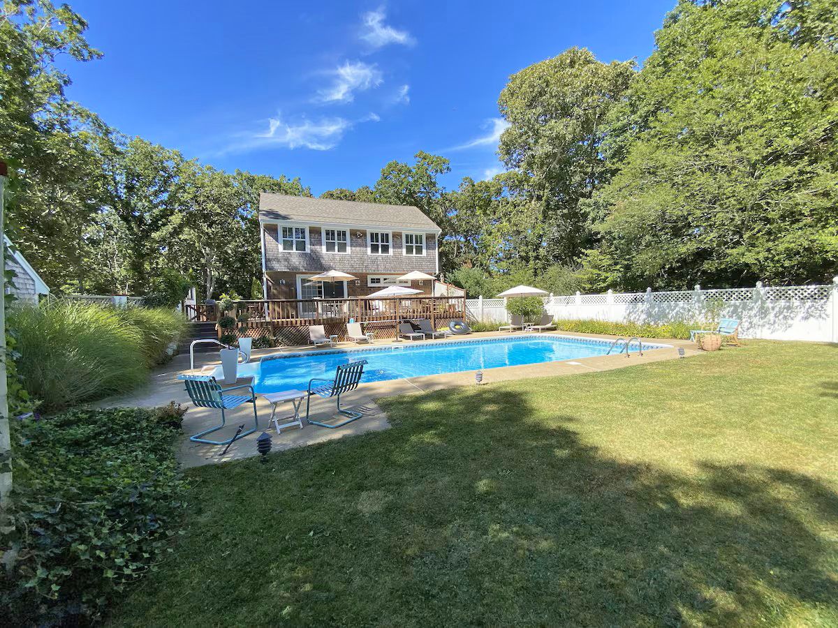 Located on the outskirts of downtown Edgartown is this well maintained four-bedroom Cape. The home is situated on a large lot with in-ground pool. 40' x 20' in-ground pool can now be enjoyed heated for an additional fee, extending your poolside fun well into the evening hours.