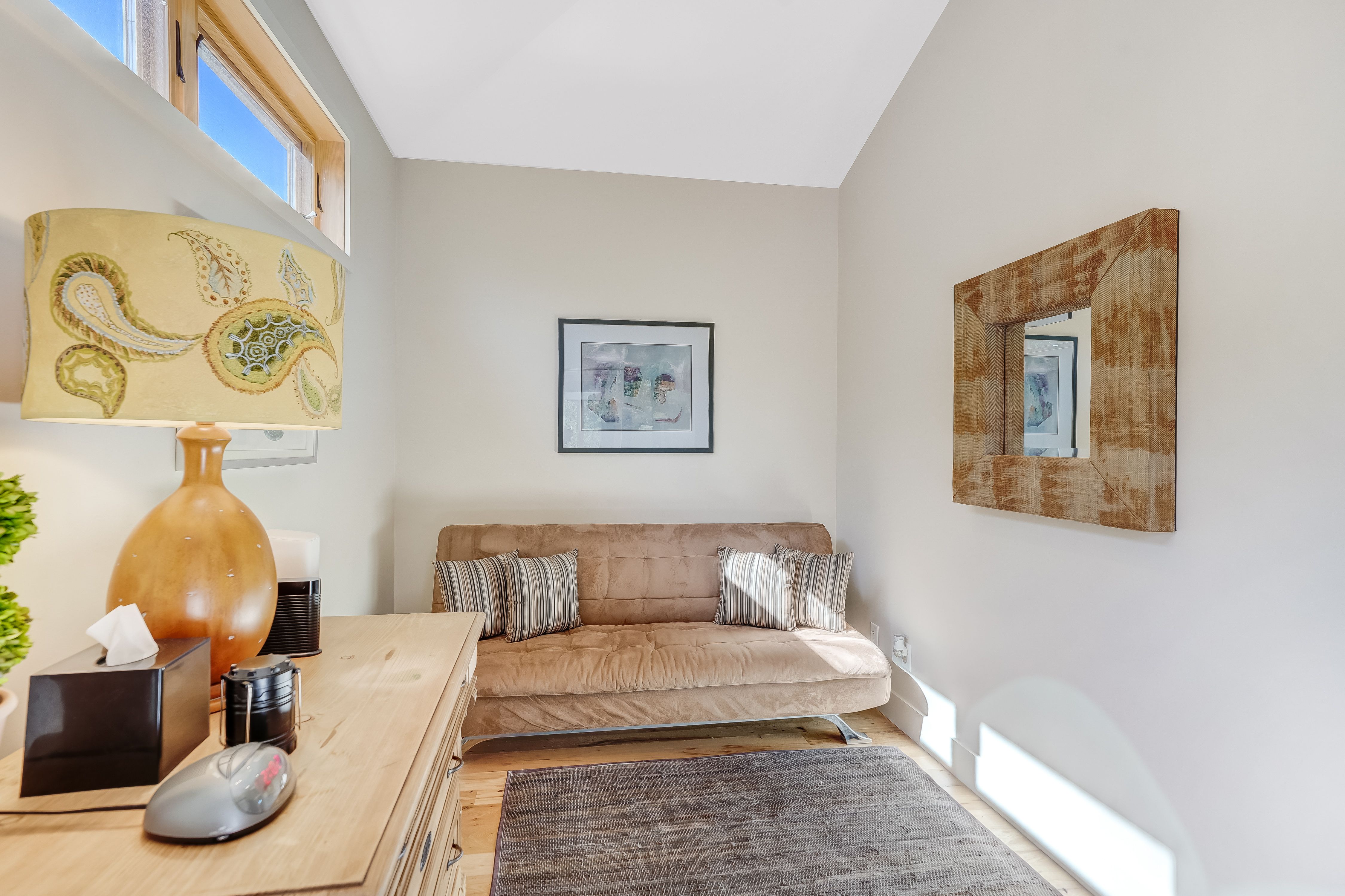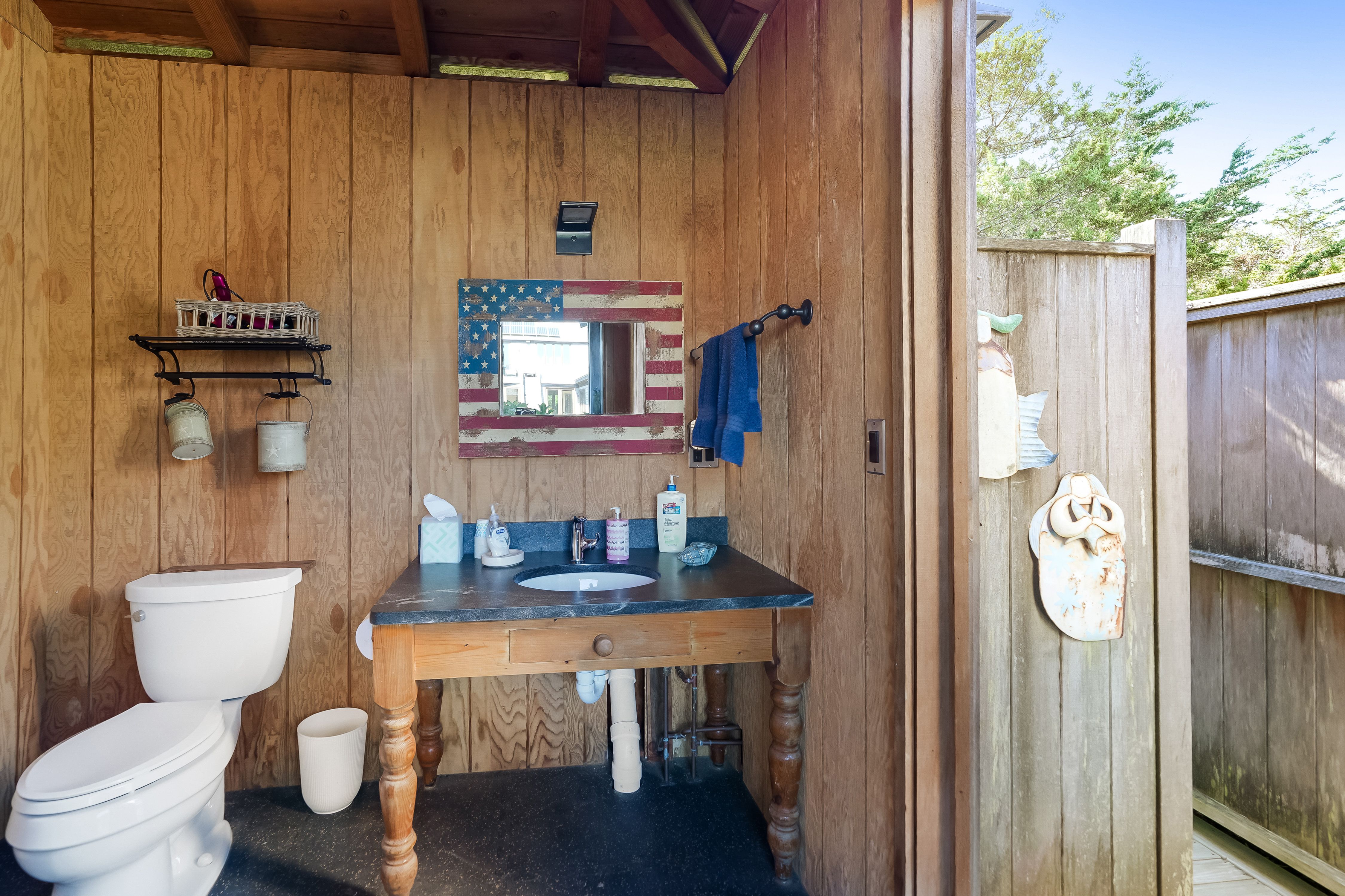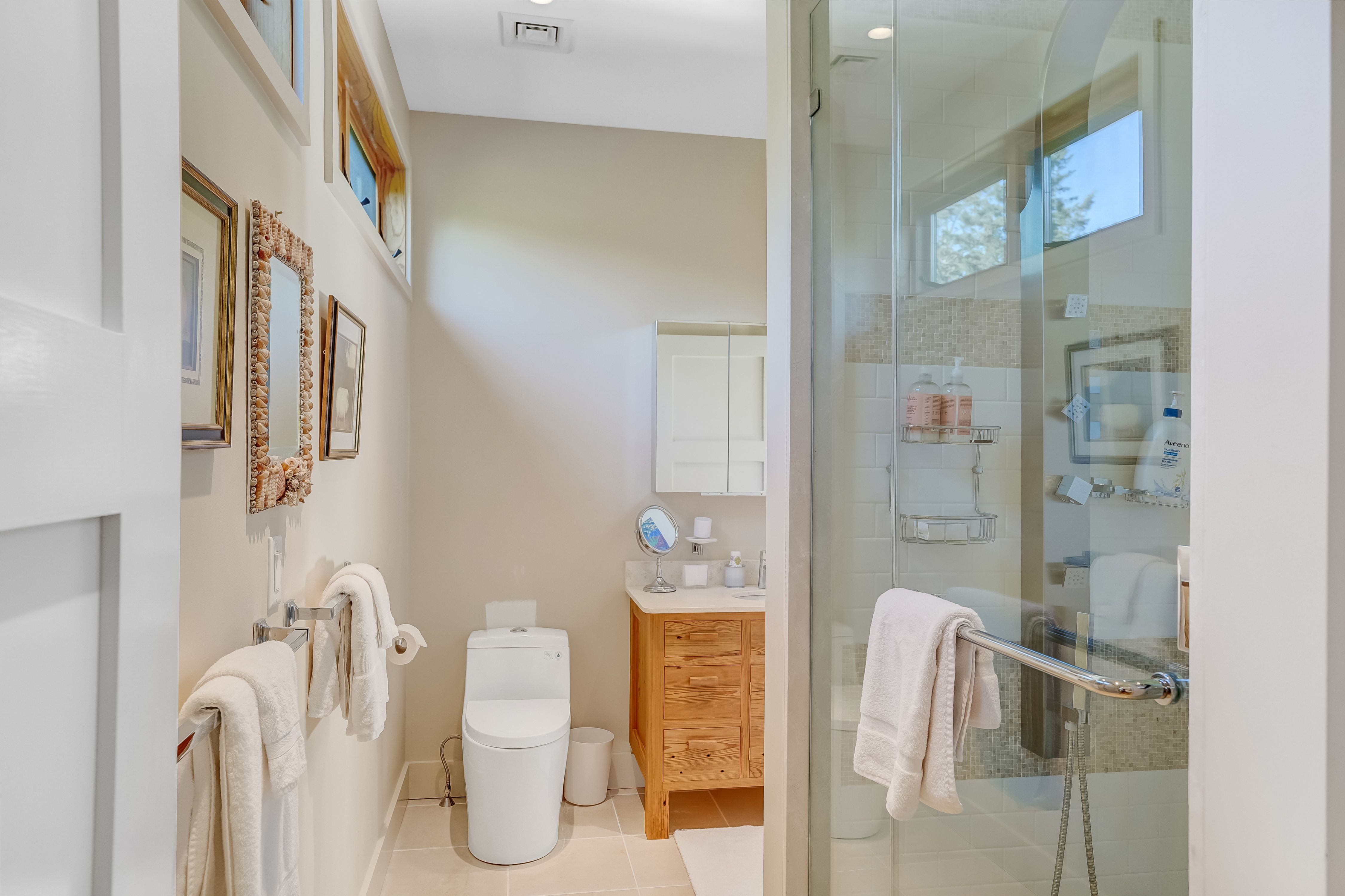 The Guest House: Sophisticated design, the Guest House offers an open living and kitchen area, a primary suite with king bed, two baths, laundry, and a private deck with grill—perfect for additional guests or extended stays.