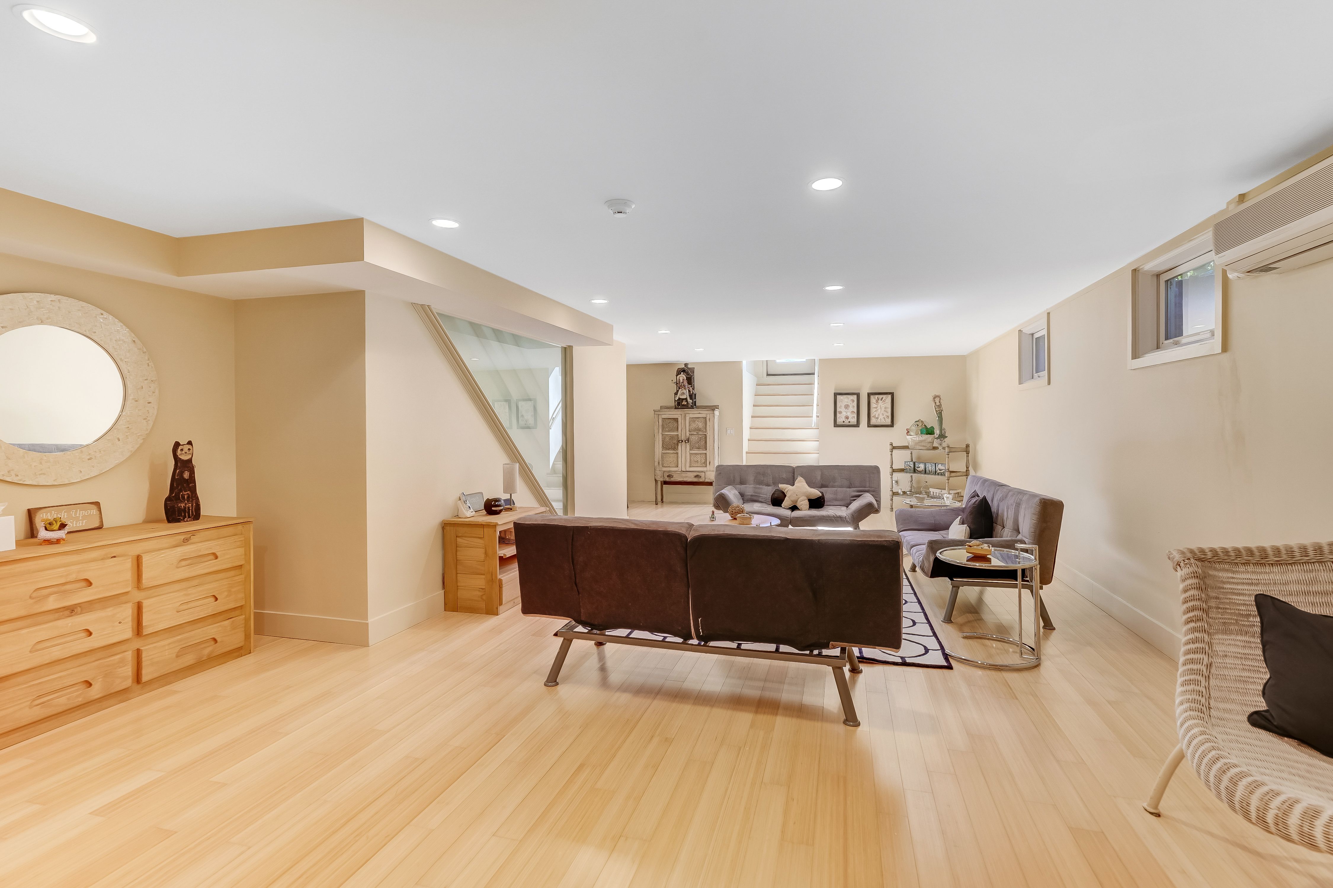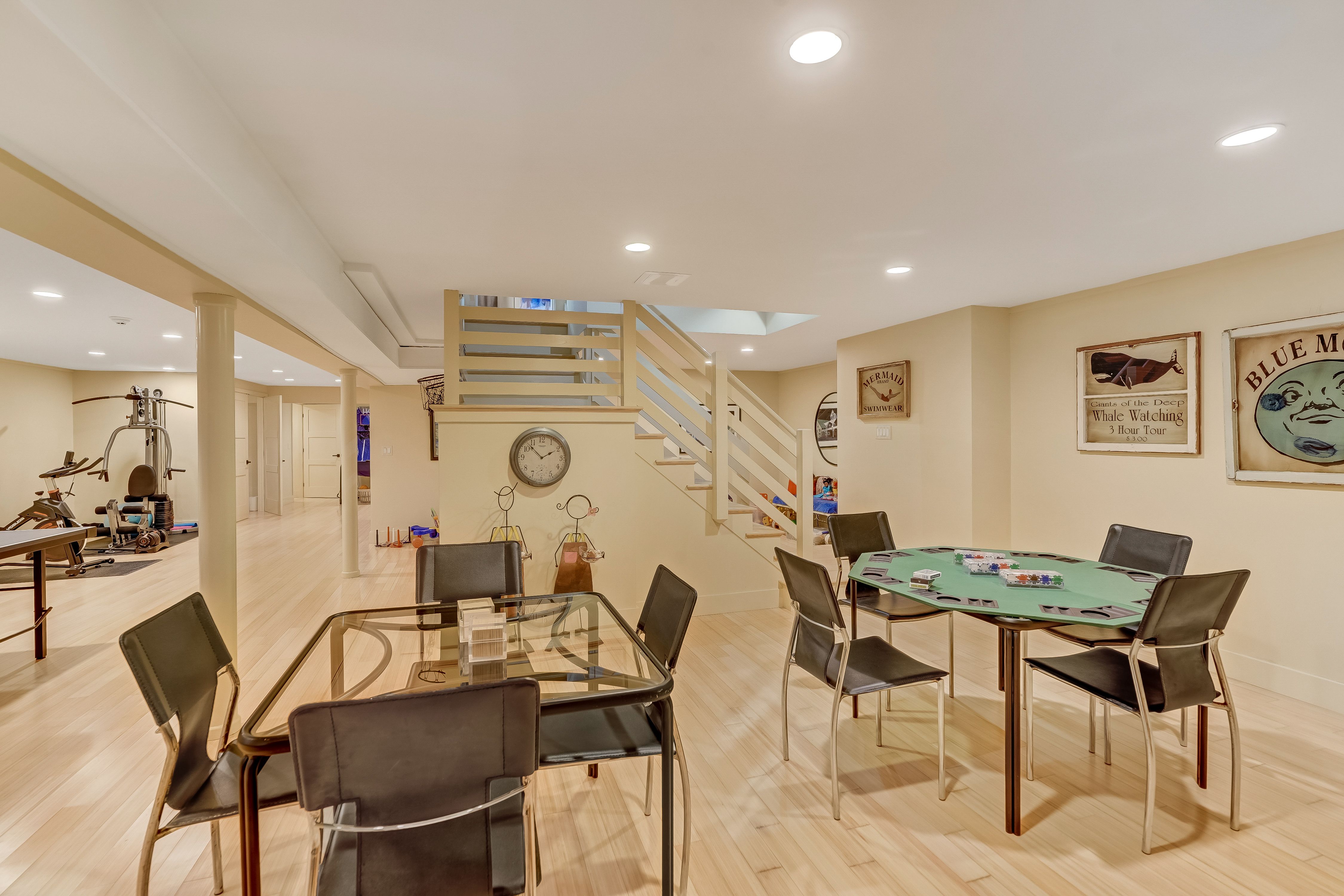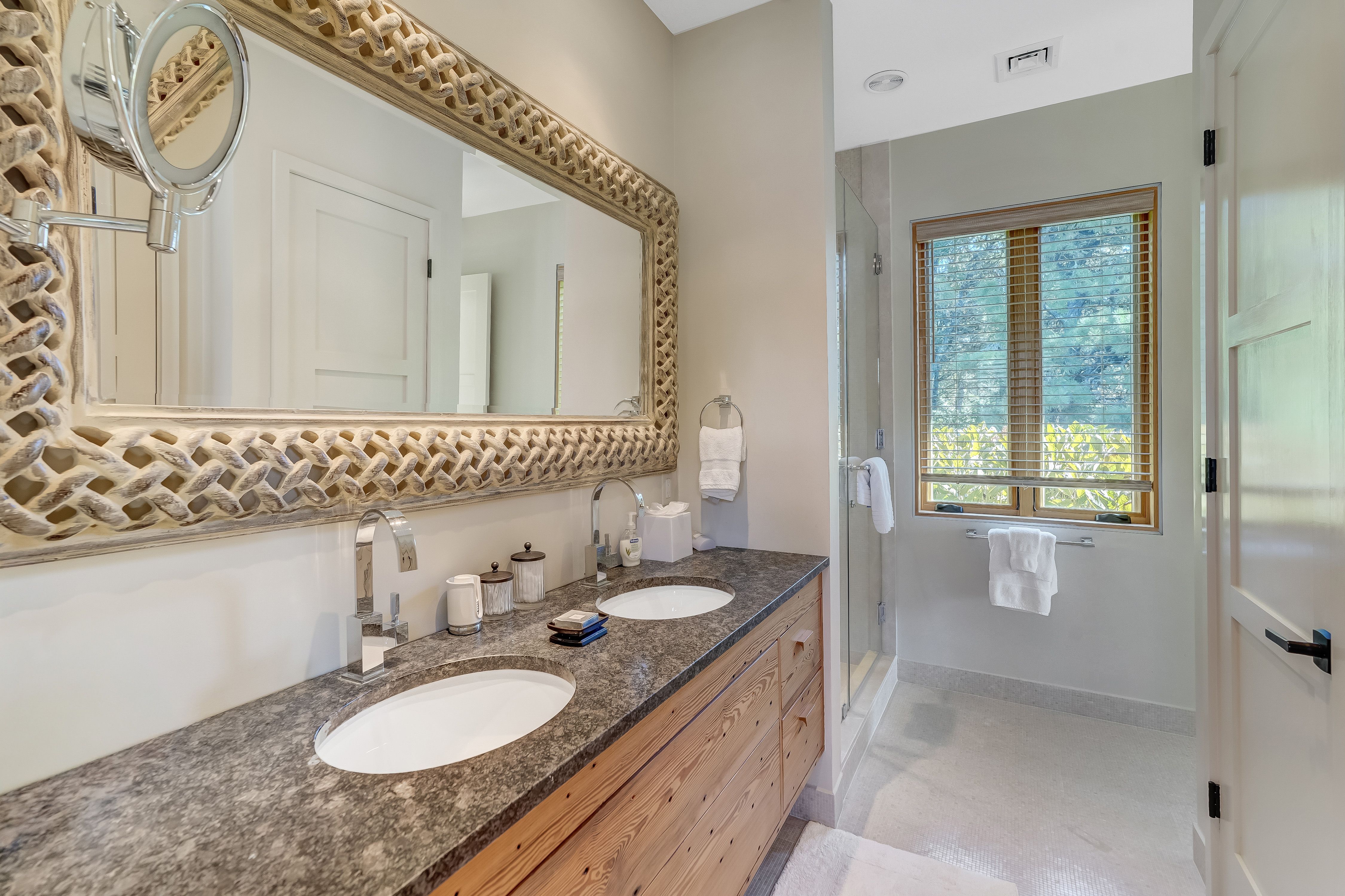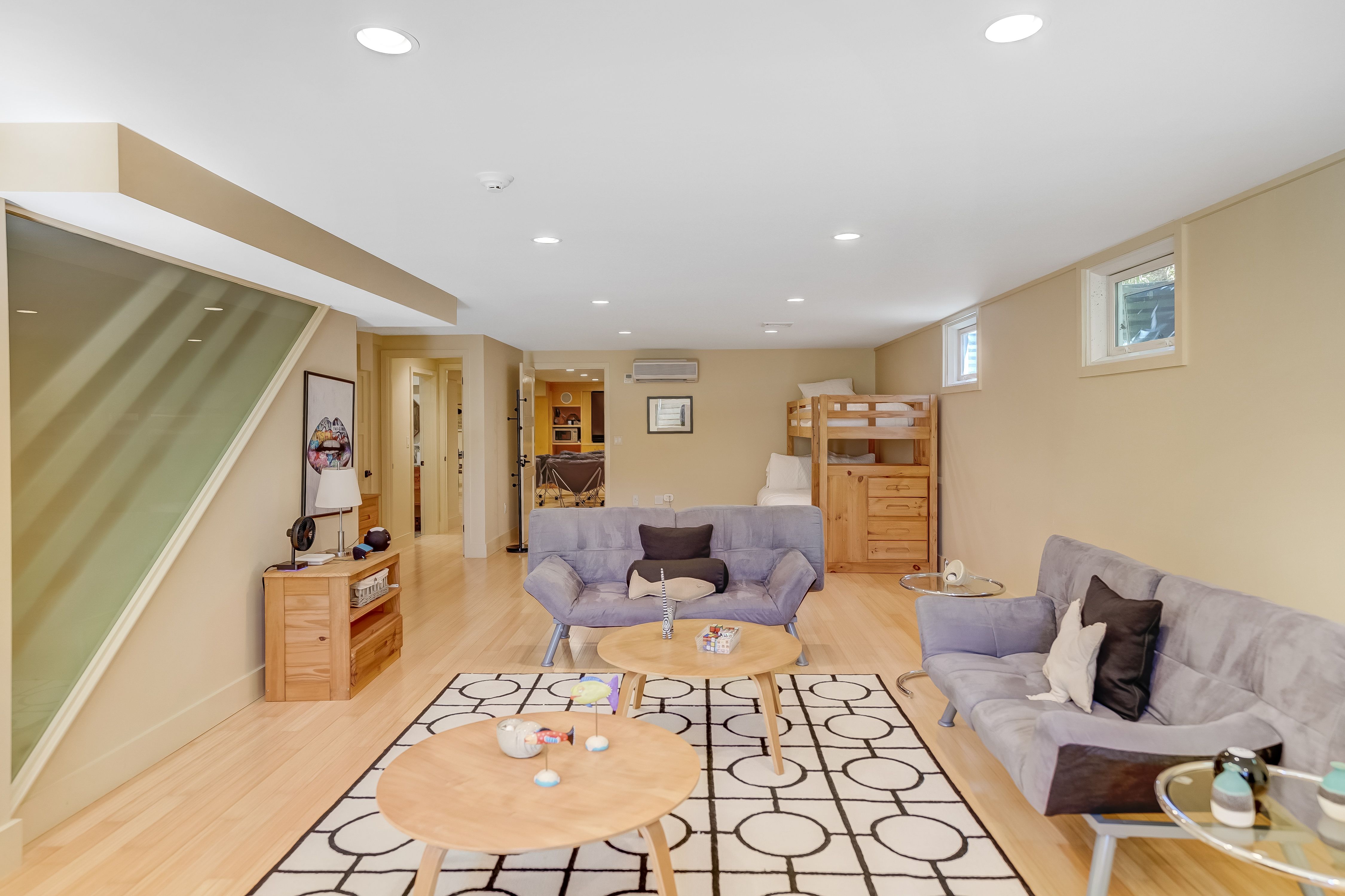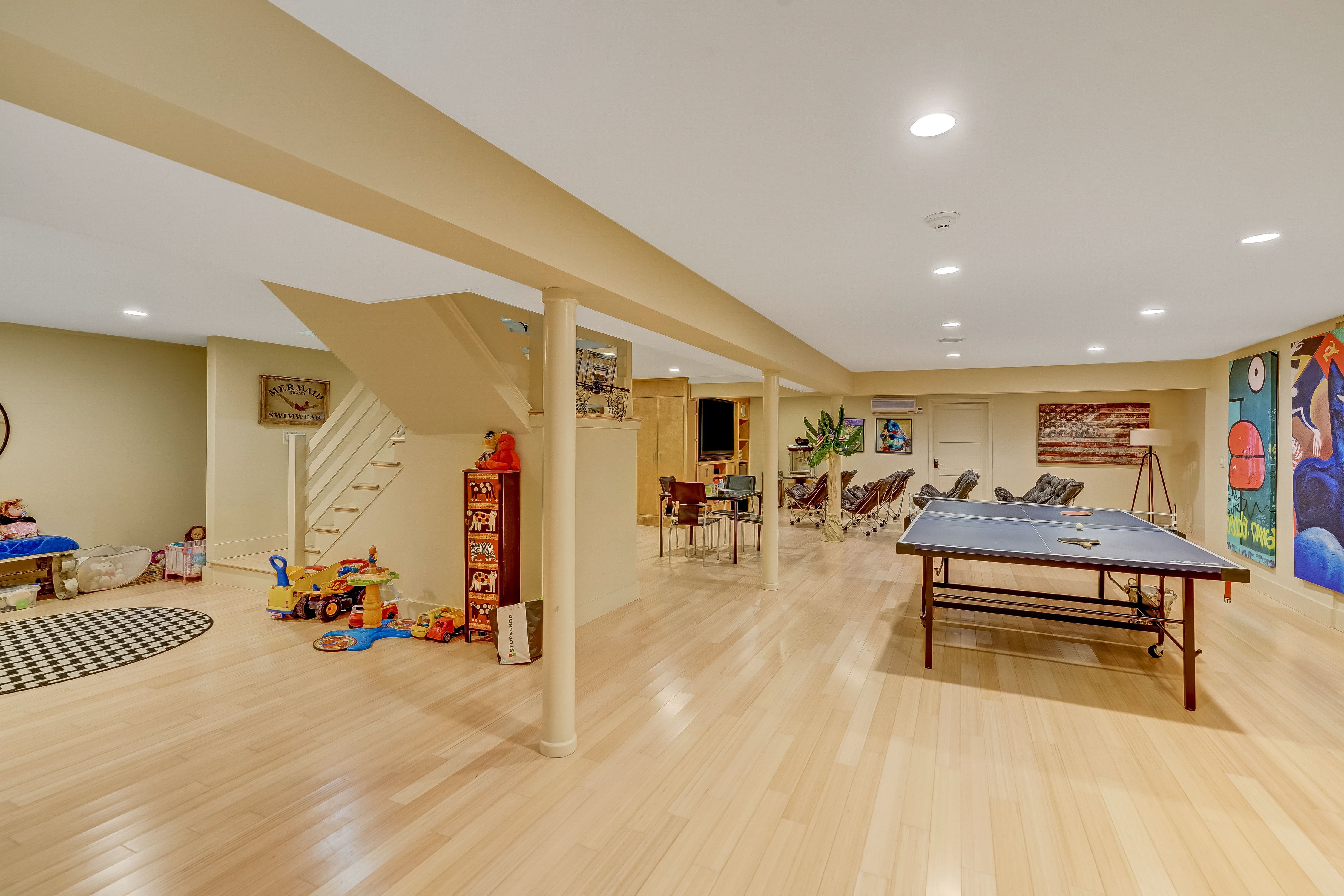 Lower-level feature two more suites provide ideal accommodations for children or guests, complete with bunk beds, private baths, and access to a game and media room with ping pong, exercise space, and a cozy play zone.