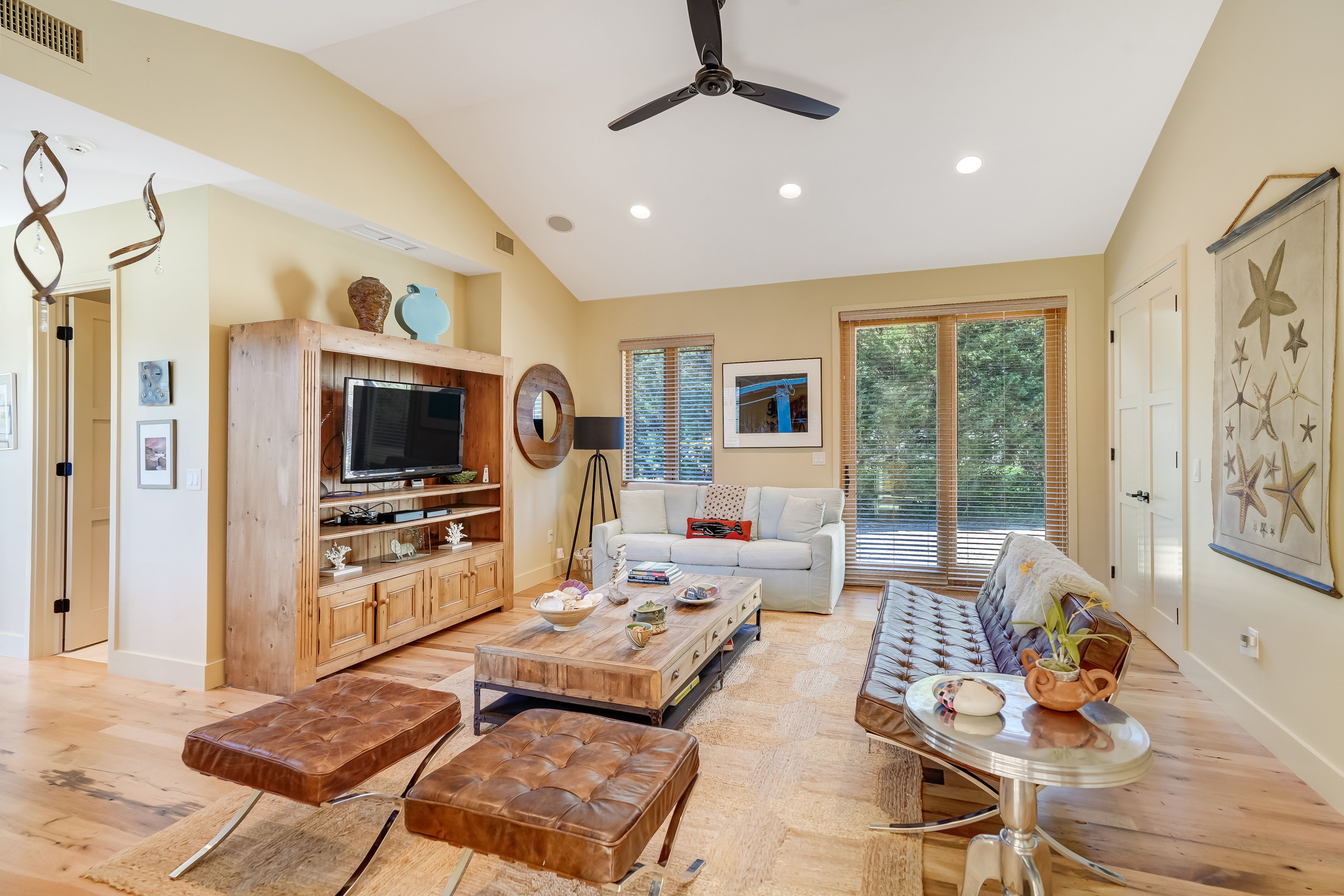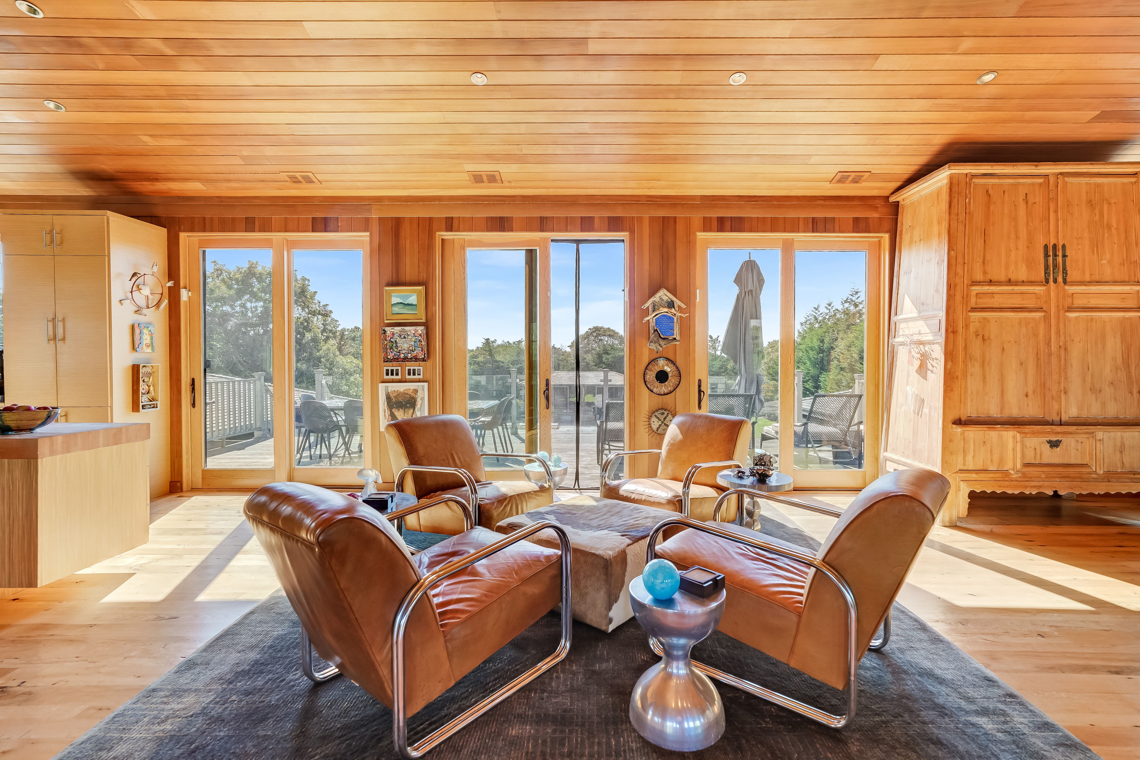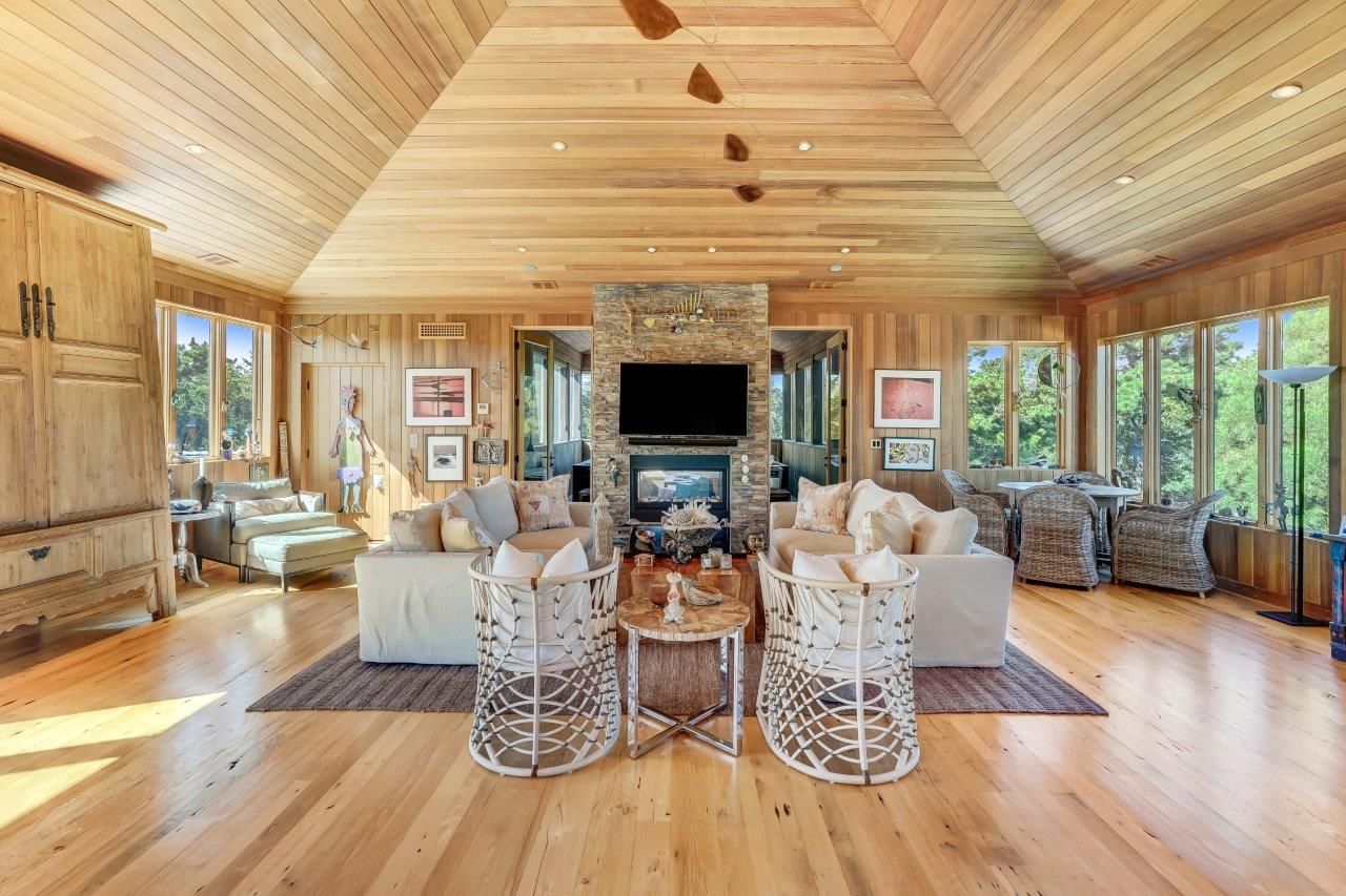The Main House: Flooded with natural light, the upper-level Great Room spans the full length of the home with vaulted ceilings, walls of glass, and seamless access to the pool-facing deck. Multiple living and dining areas surround a cozy fireplace and media space, while the chef’s kitchen—featuring top-tier appliances. A screened porch with a propane fireplace and a separate grilling deck invite make this home a wonderful place to entertain. An elevator connects the main floor and upper level.