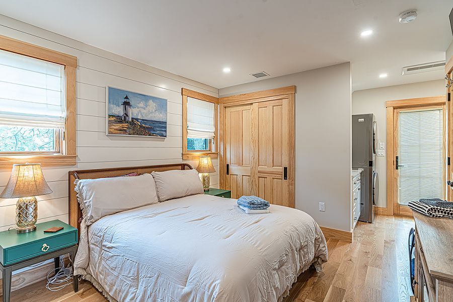 The guest house provides a private bedroom and full bathroom, creating a serene retreat for guests.