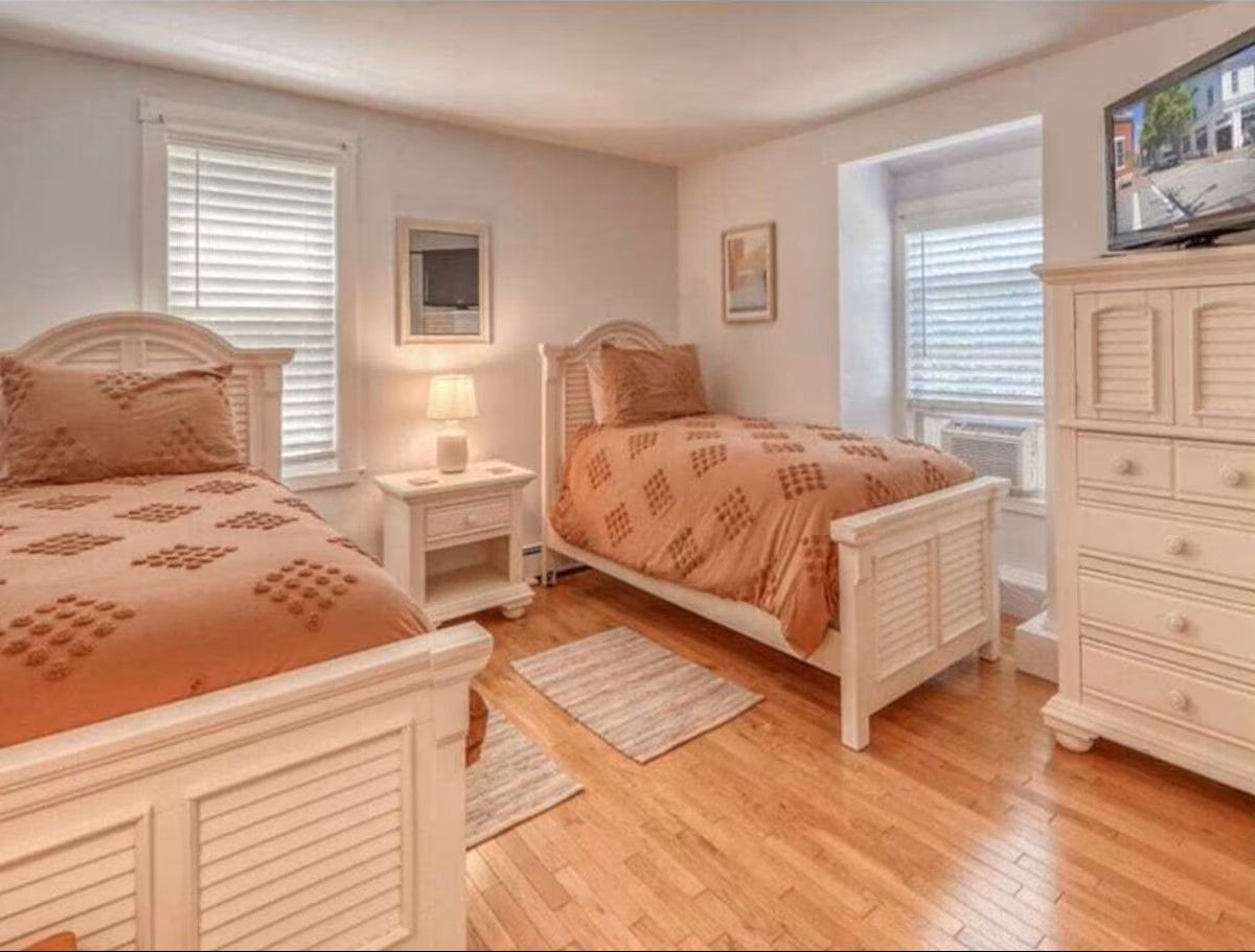 The second level also includes 2 queen rooms and a double twin room. All rooms share a full hall bathroom.